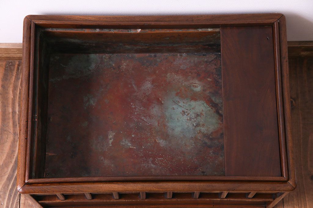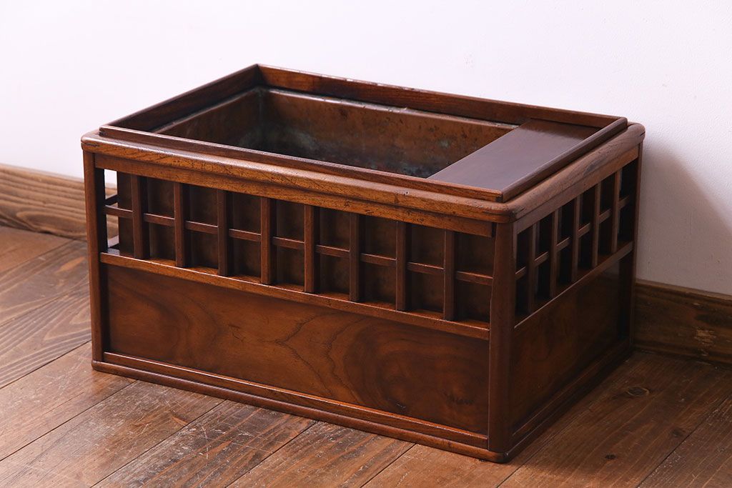 アンティーク雑貨 古民具 昭和期 味わいがあって上品な格子角火鉢(長火鉢)