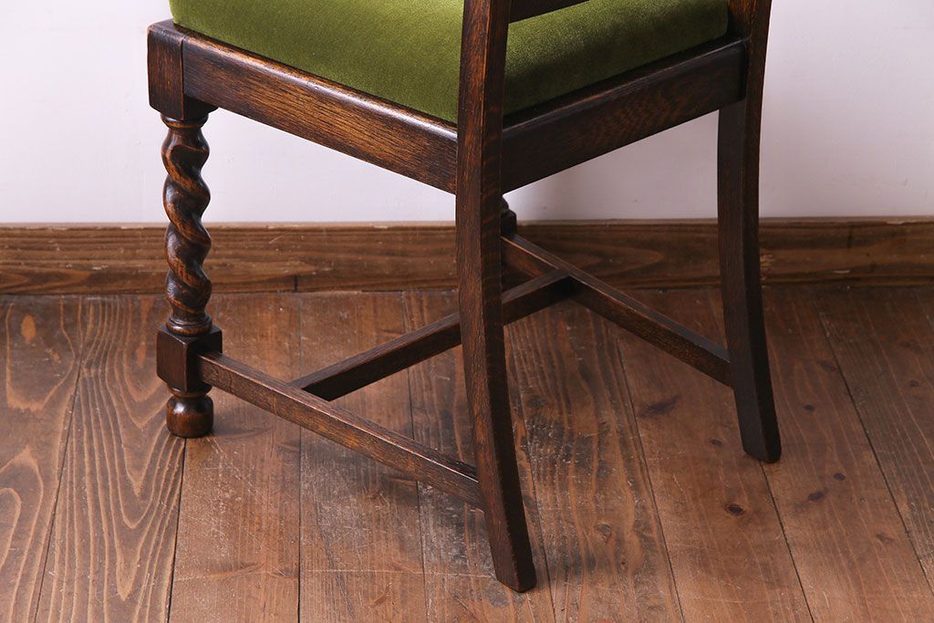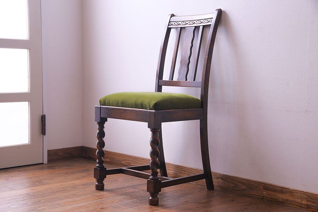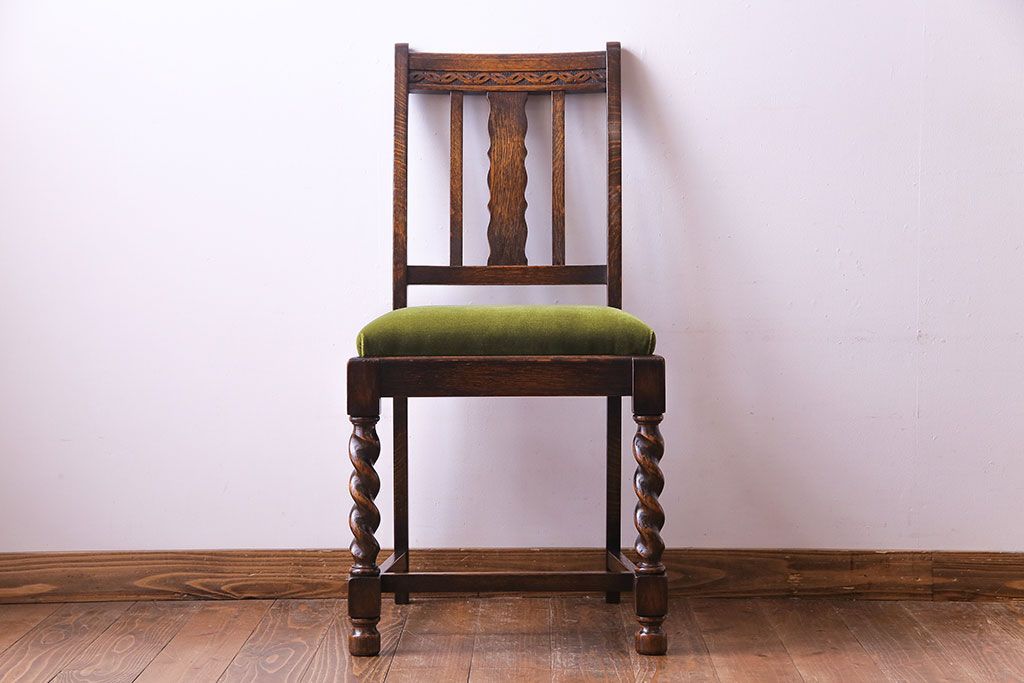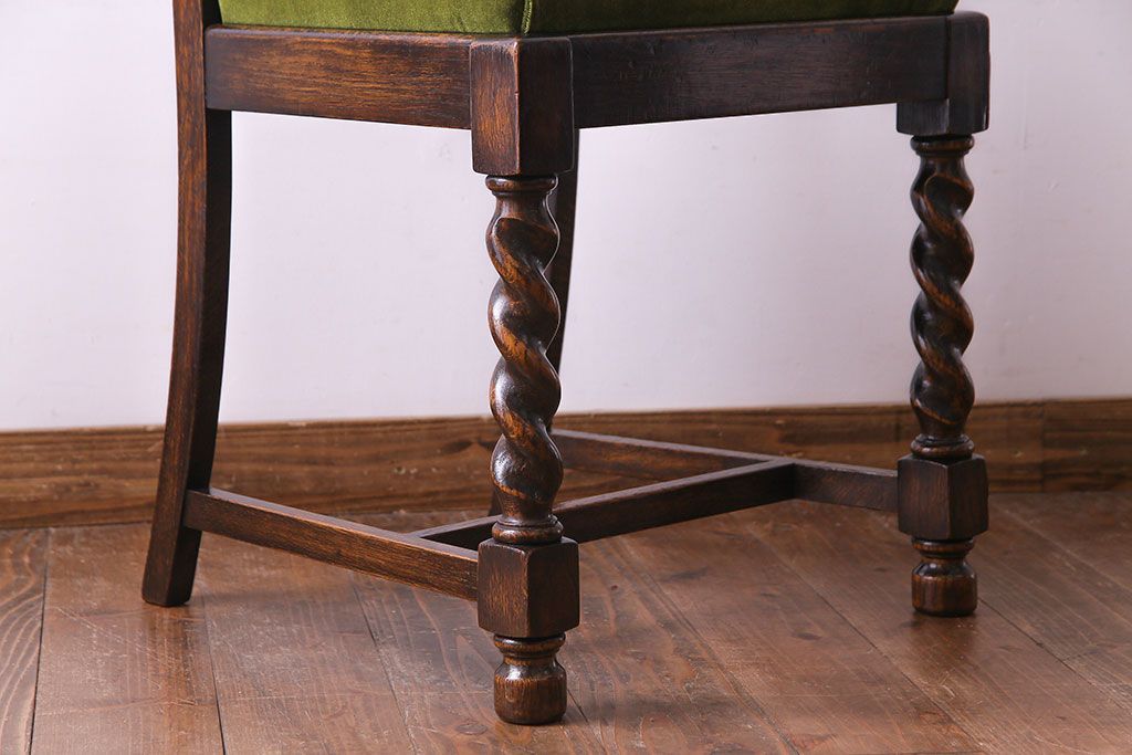 ラフジュ工房> 椅子・ベンチ> ダイニングチェア > アンティーク家具 イギリスアンティーク オーク材 シックなツイストレッグチェア(ダイニングチェア、イス)(1)(R-030315)