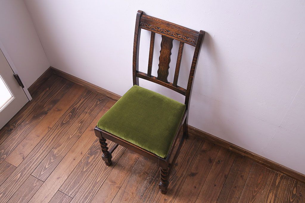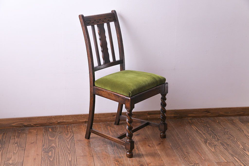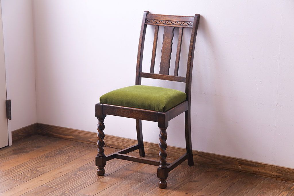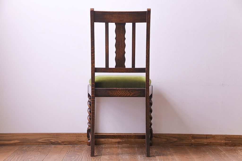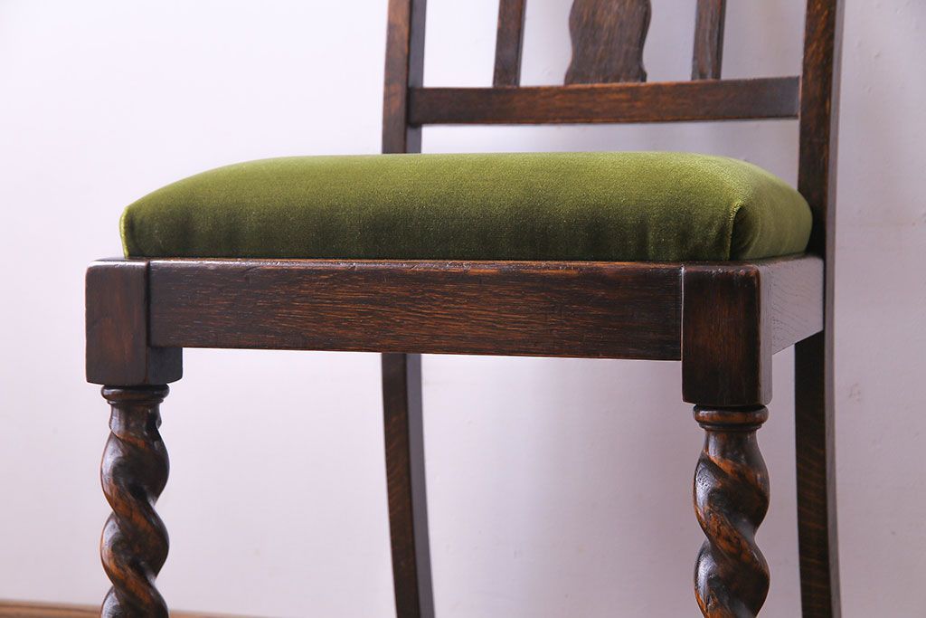 ラフジュ工房> 椅子・ベンチ> ダイニングチェア > アンティーク家具 イギリスアンティーク オーク材 シックなツイストレッグチェア(ダイニングチェア、イス)(1)(R-030315)