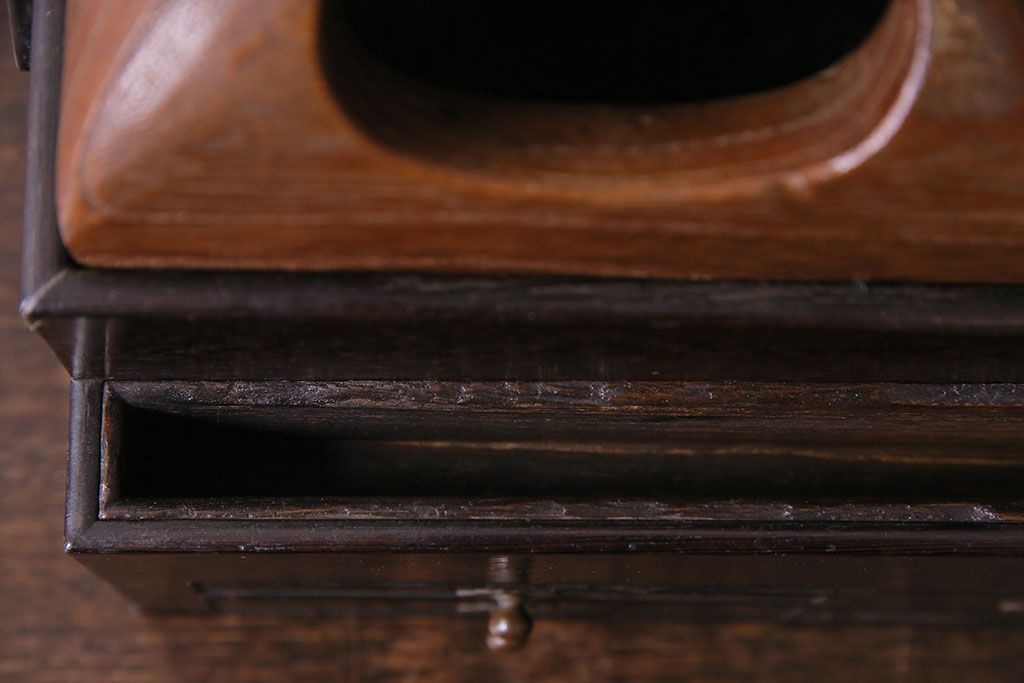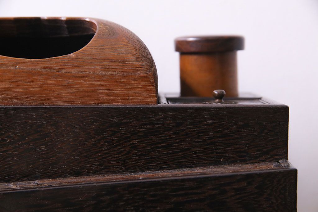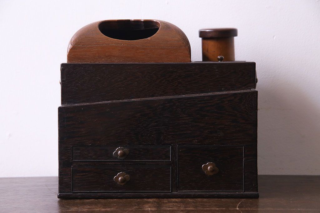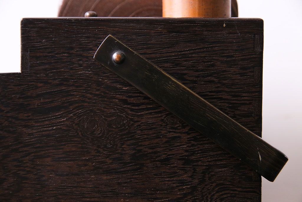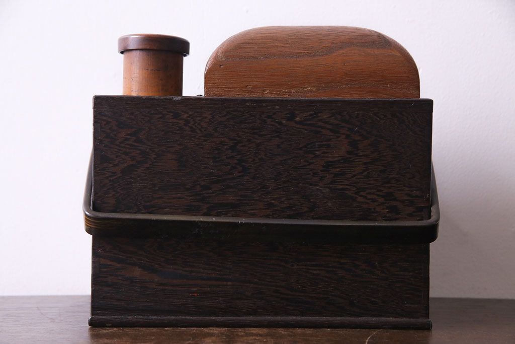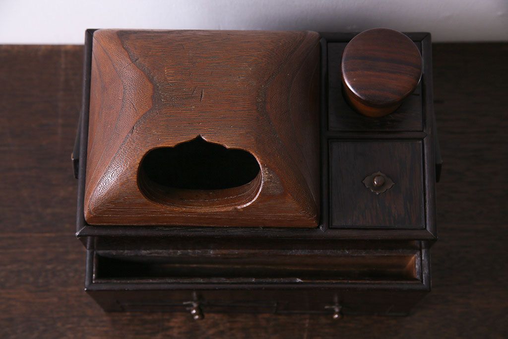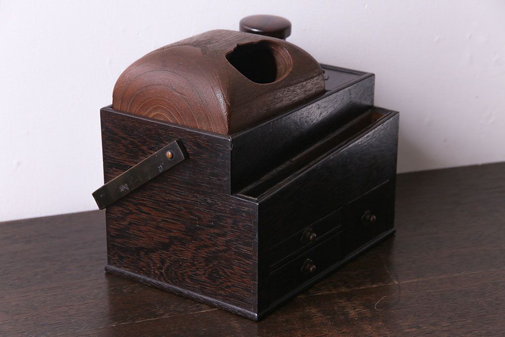 ラフジュ工房> チェスト・引き出し > アンティーク雑貨 和製アンティーク 明治期 引き出し付き 鉄刀木製提手付煙草盆(莨盆)(R-030303)