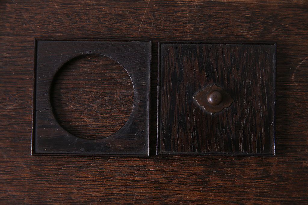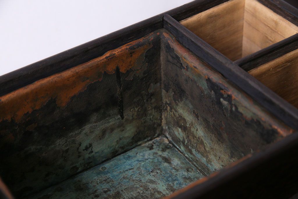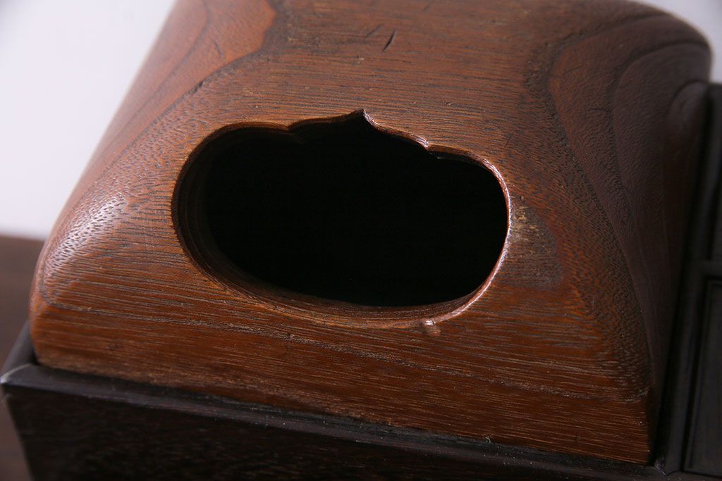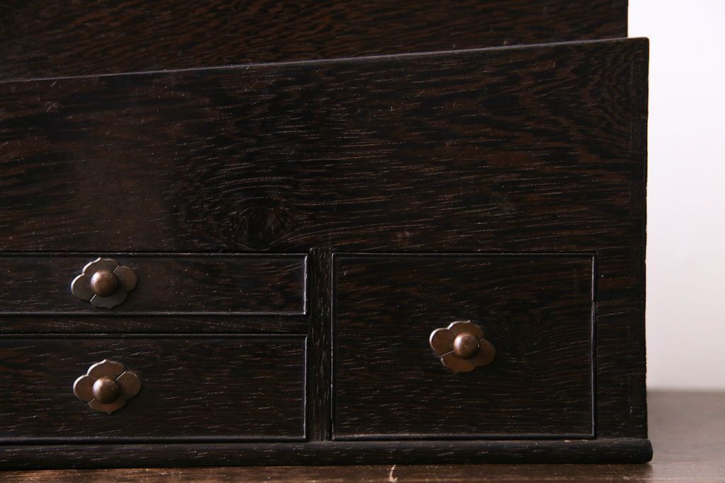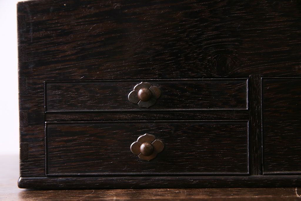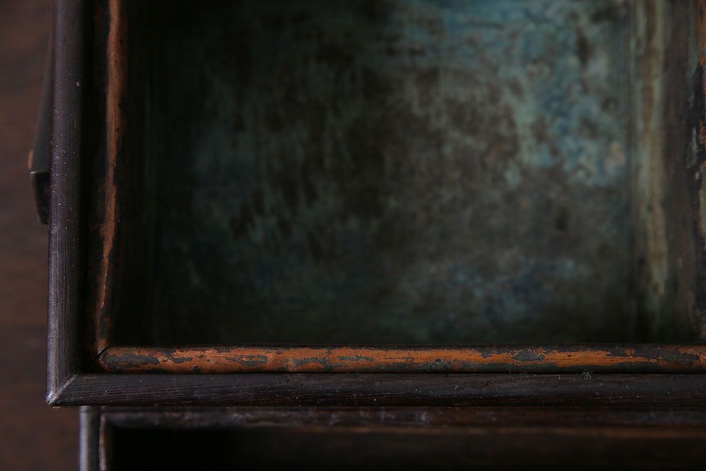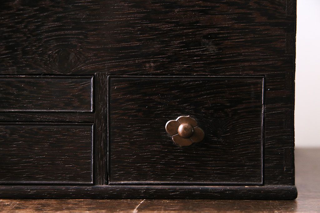 ラフジュ工房> チェスト・引き出し > アンティーク雑貨 和製アンティーク 明治期 引き出し付き 鉄刀木製提手付煙草盆(莨盆)(R-030303)