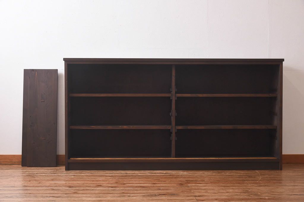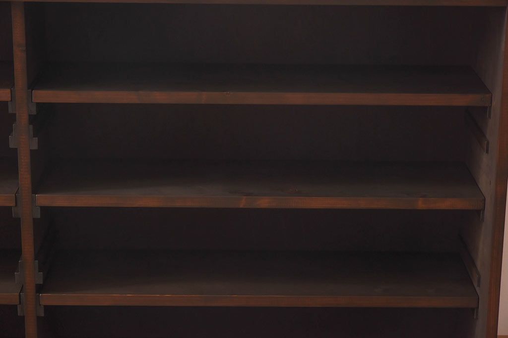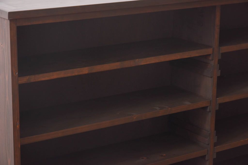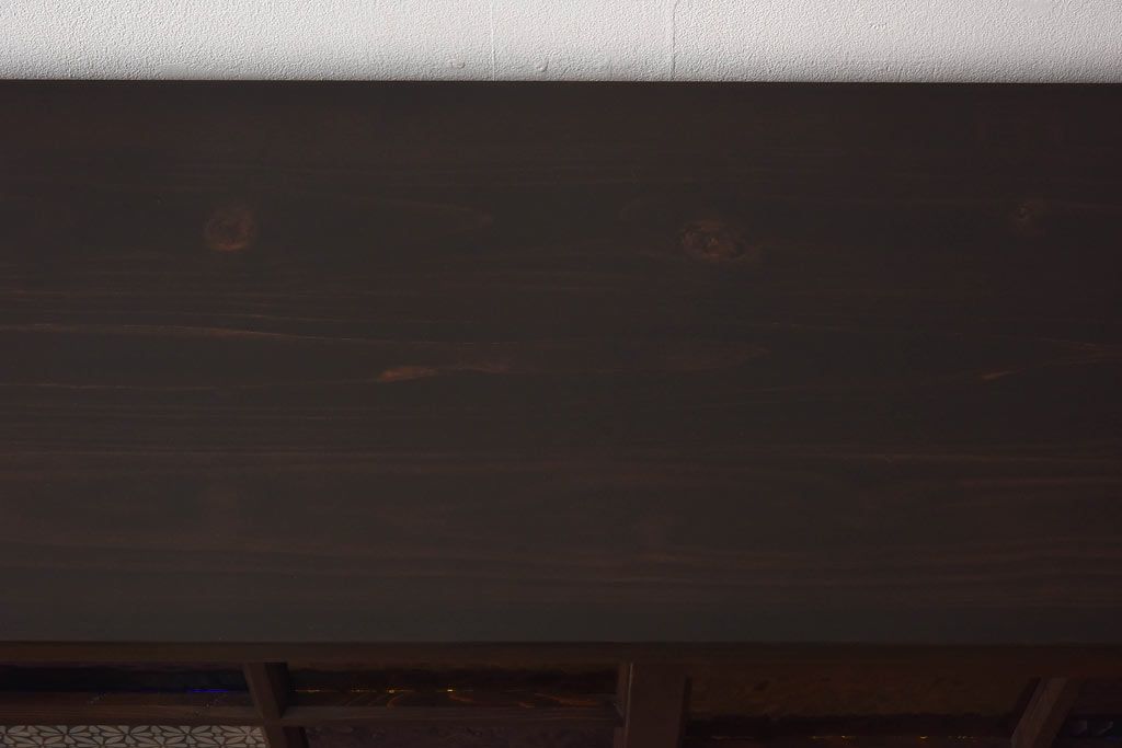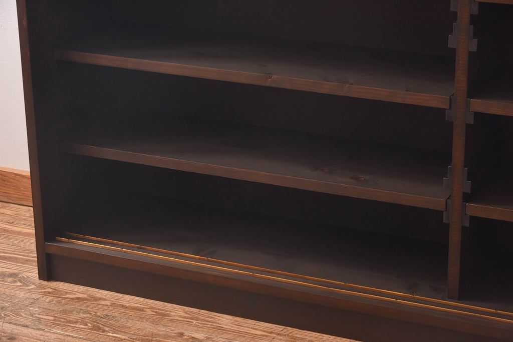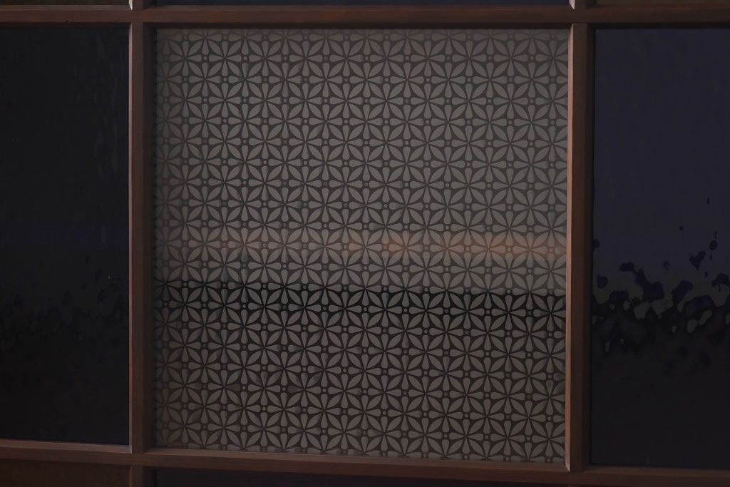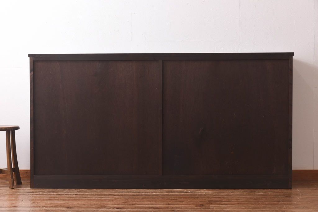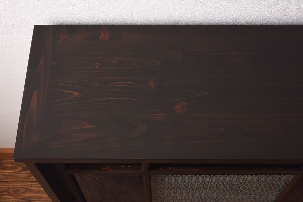 ラフジュ工房オリジナル 色ガラス・花菱模様のガラス入り 大正ロマンな大型戸棚(食器棚、収納棚、サイドボード、店舗什器)
