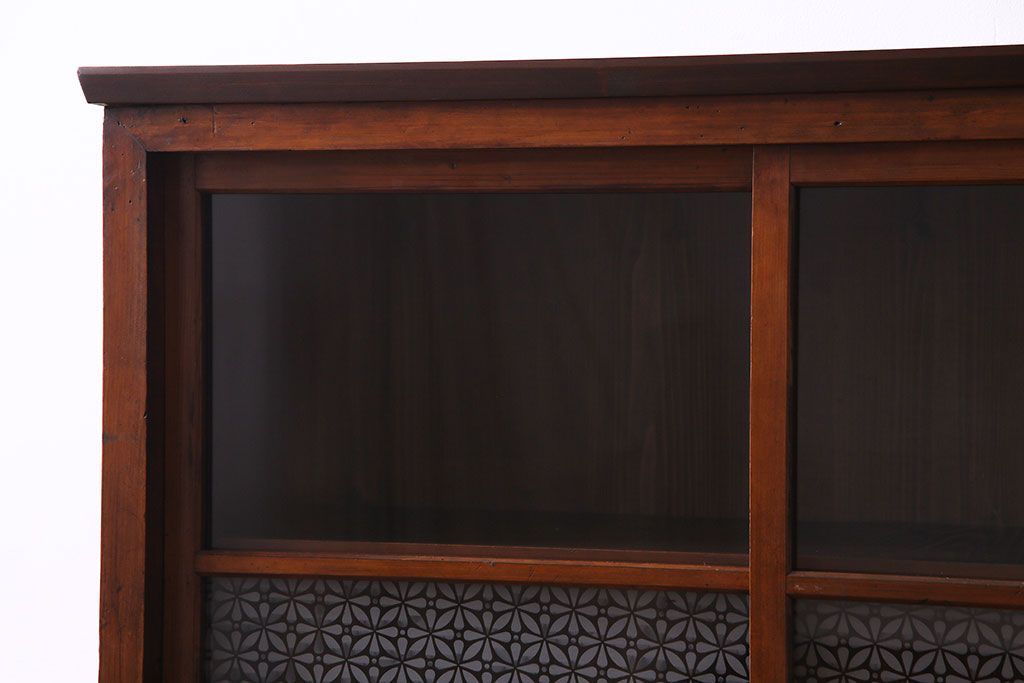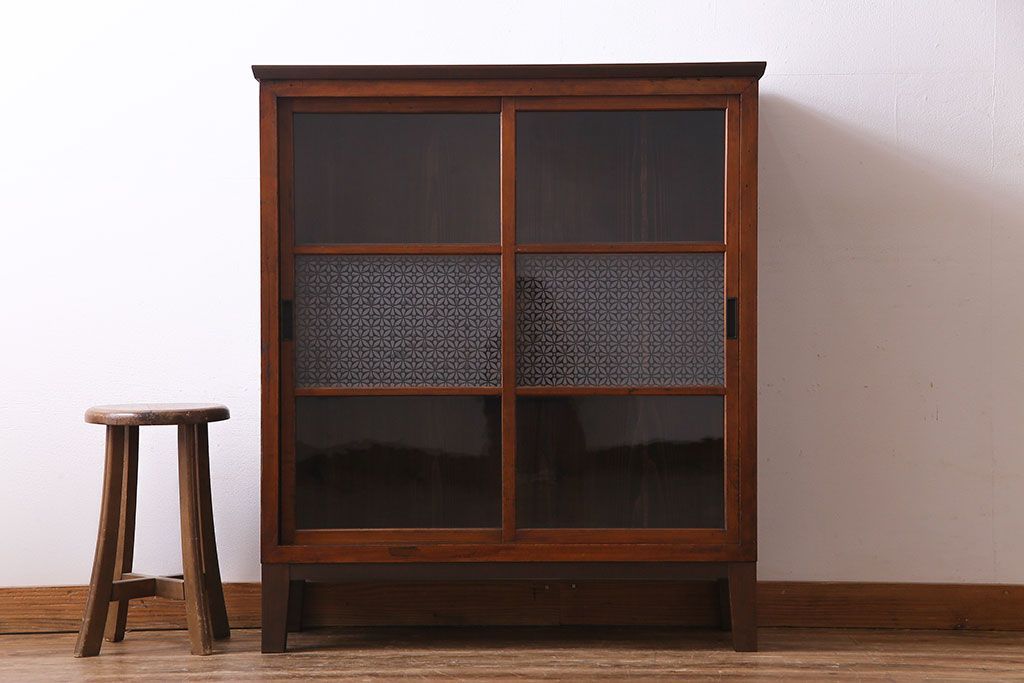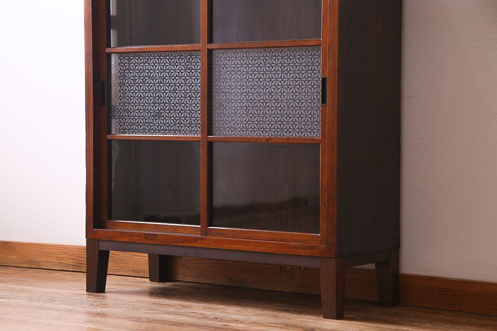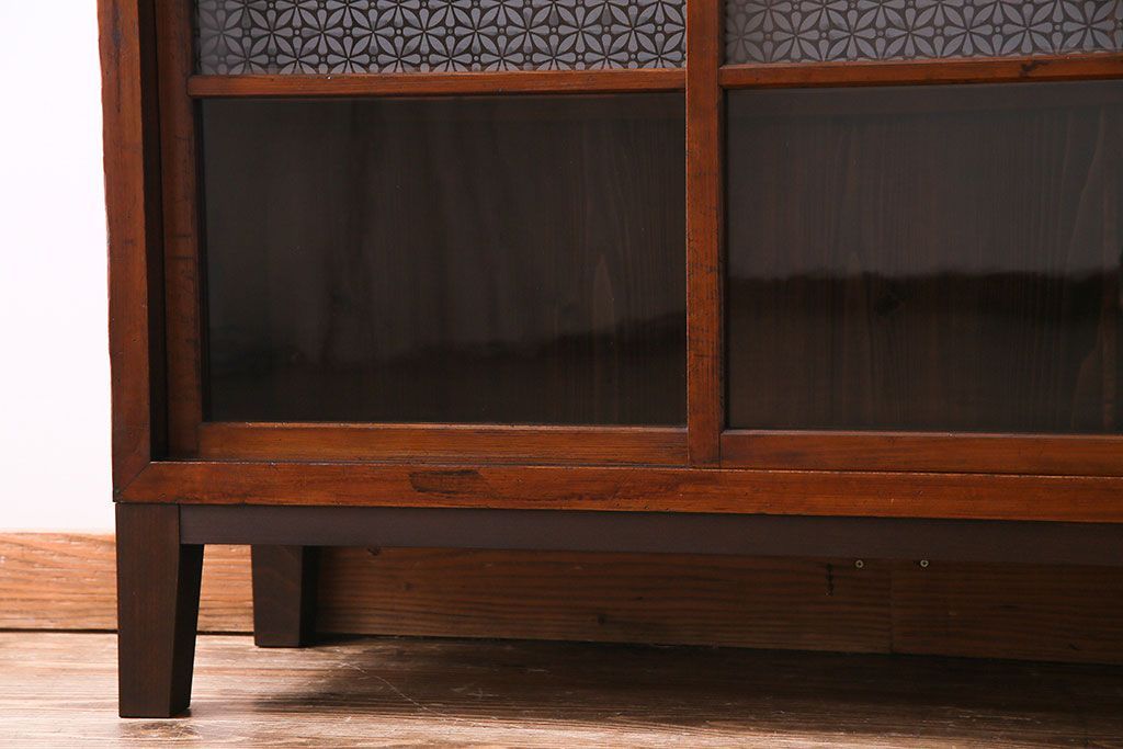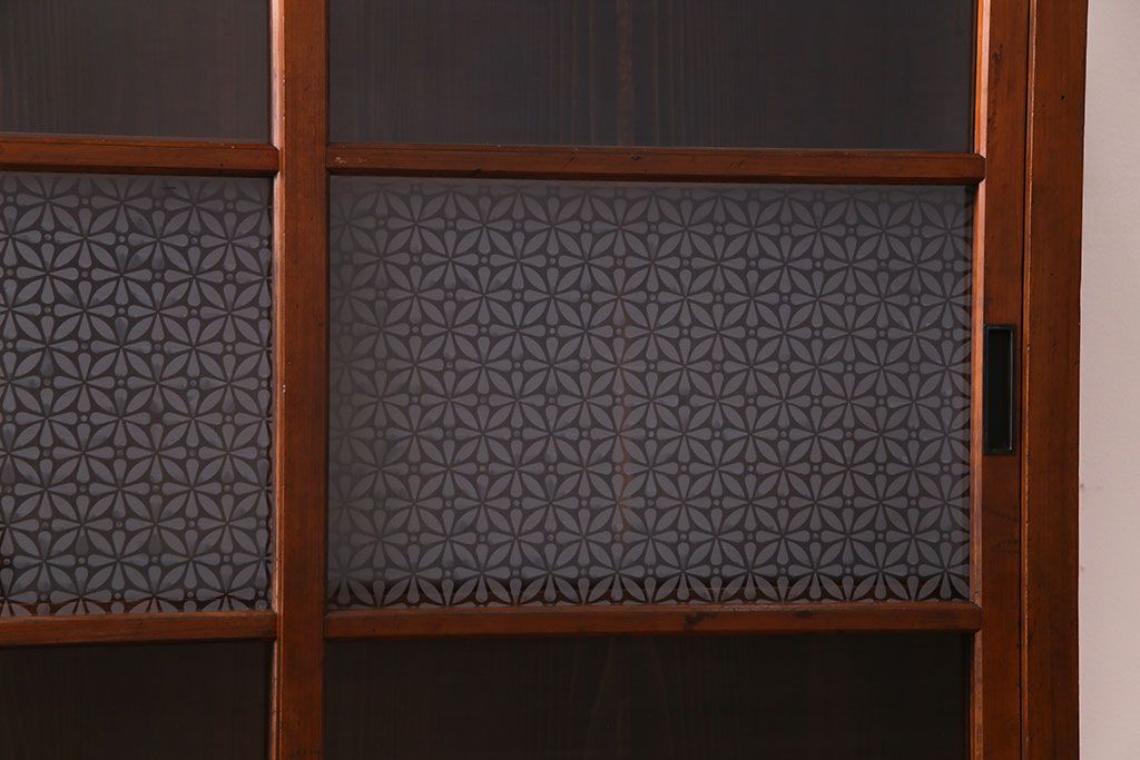 アンティーク家具 大正ロマン リメイク 花菱模様ガラスがアクセントのキャビネット(戸棚、収納棚)(R-030351)