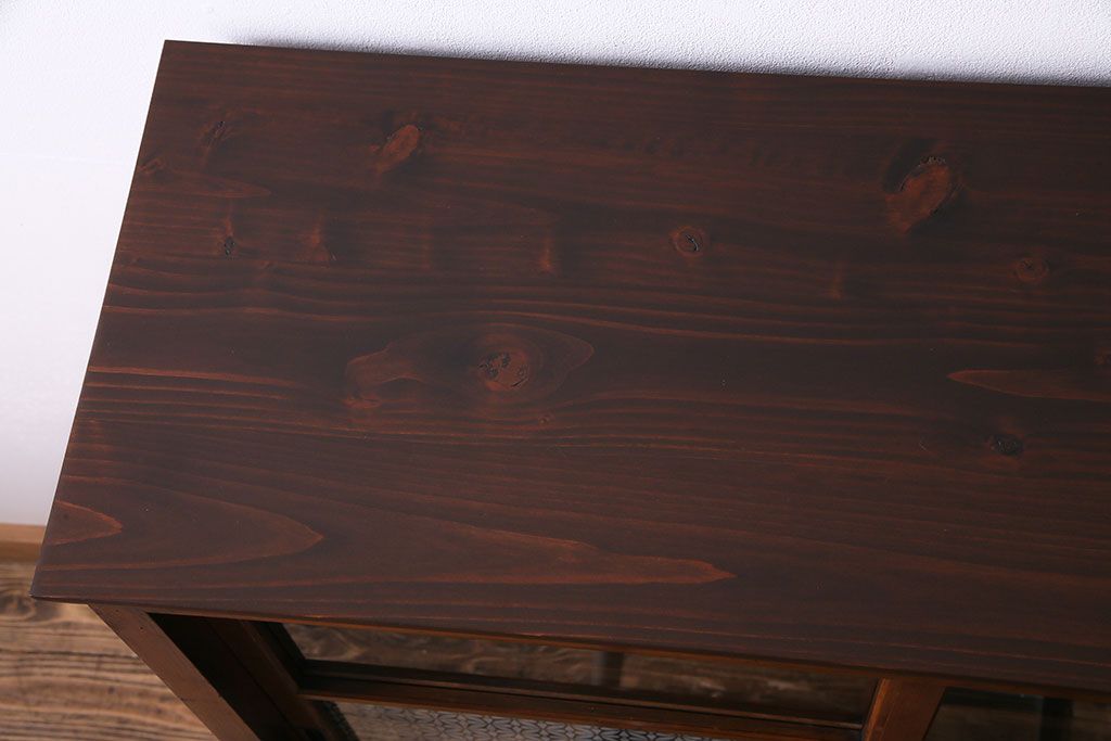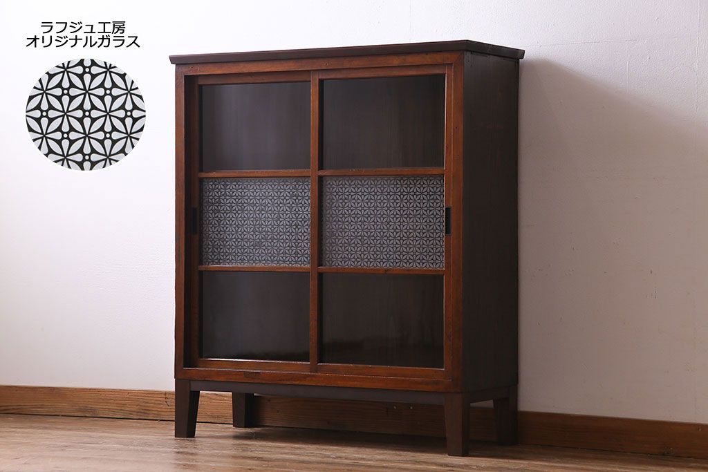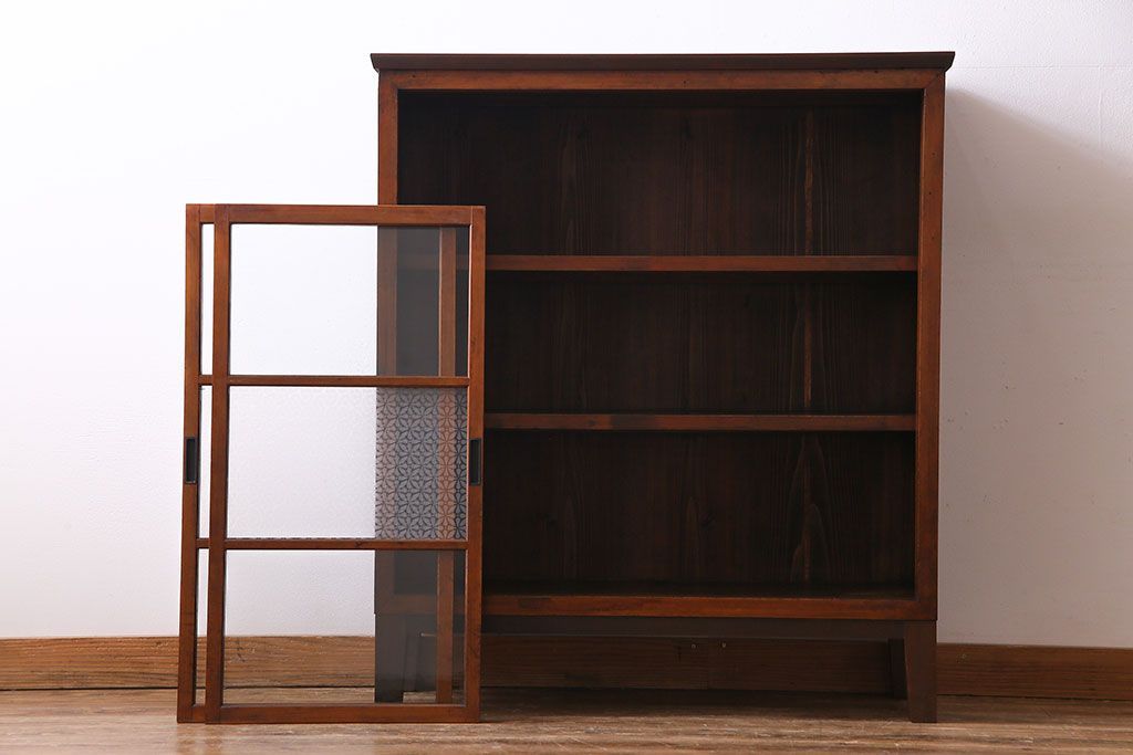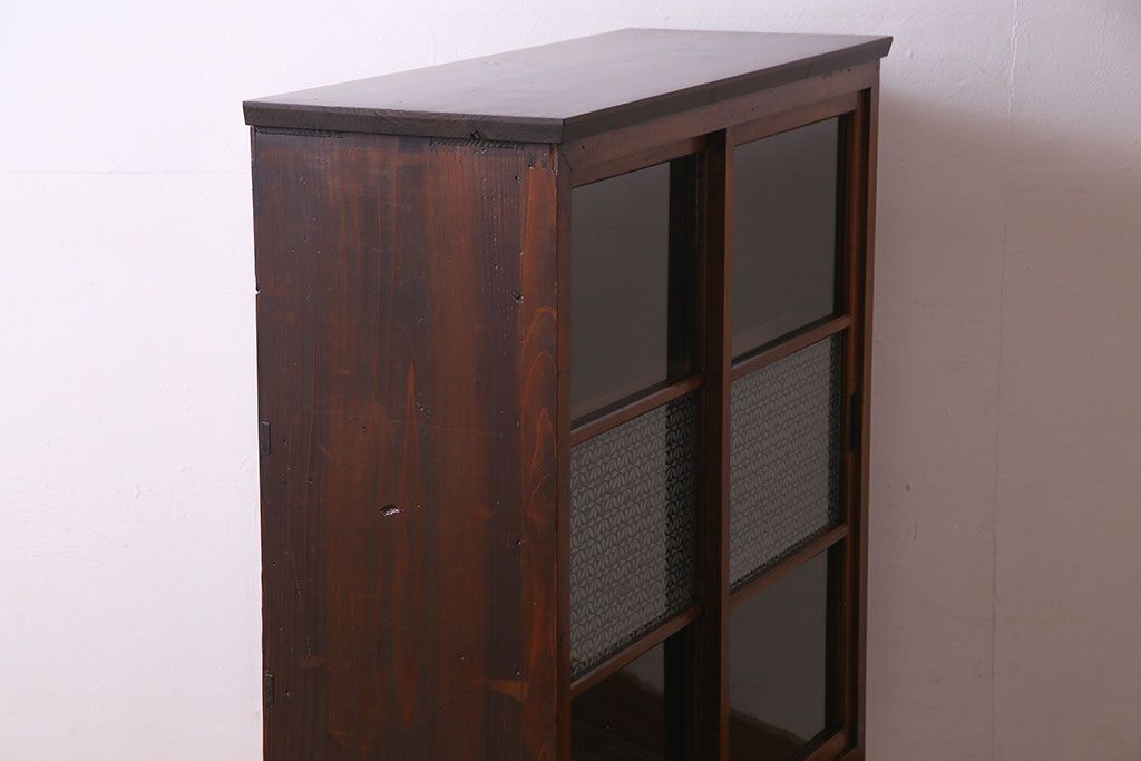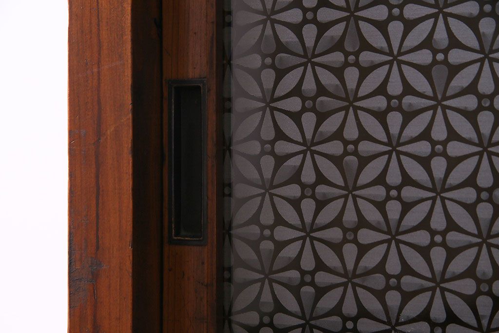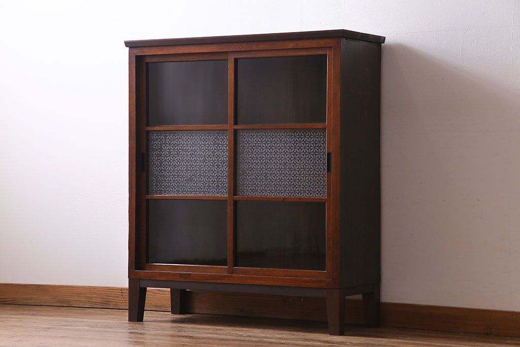 アンティーク家具 大正ロマン リメイク 花菱模様ガラスがアクセントのキャビネット(戸棚、収納棚)(R-030351)