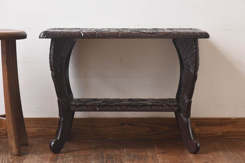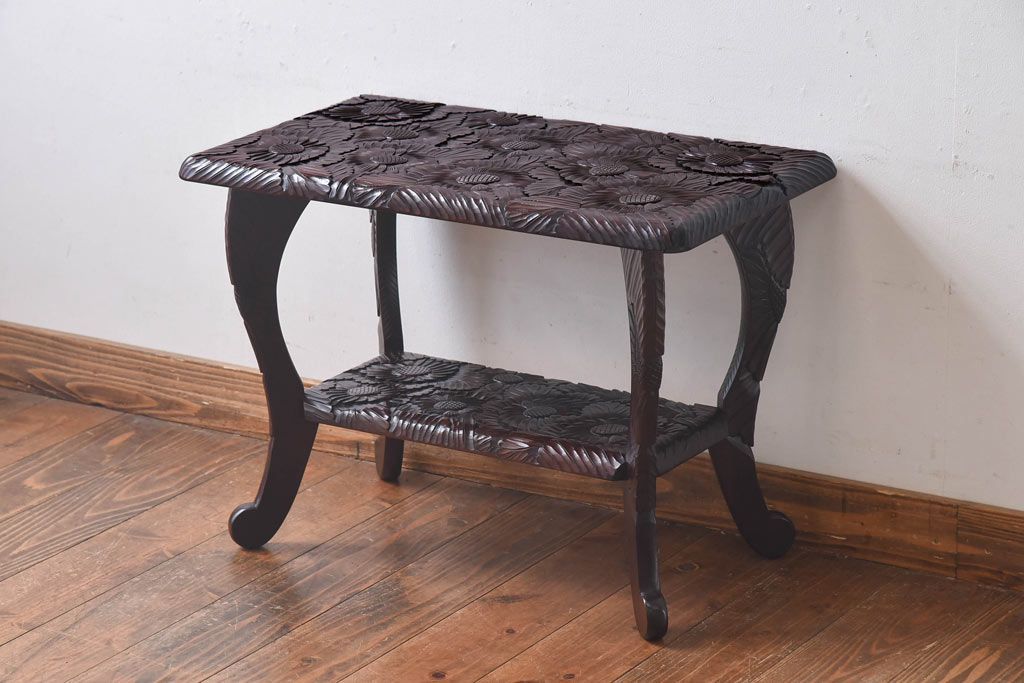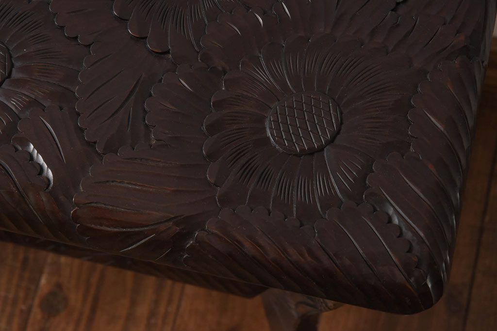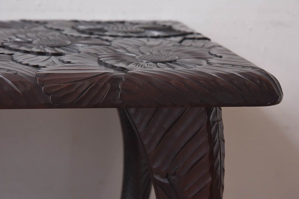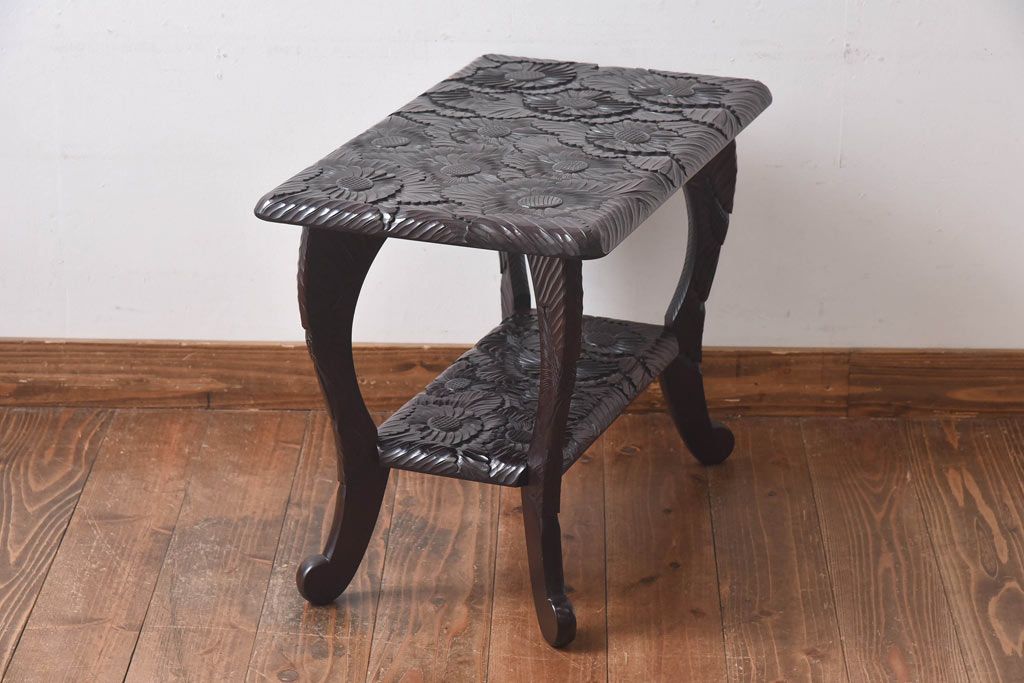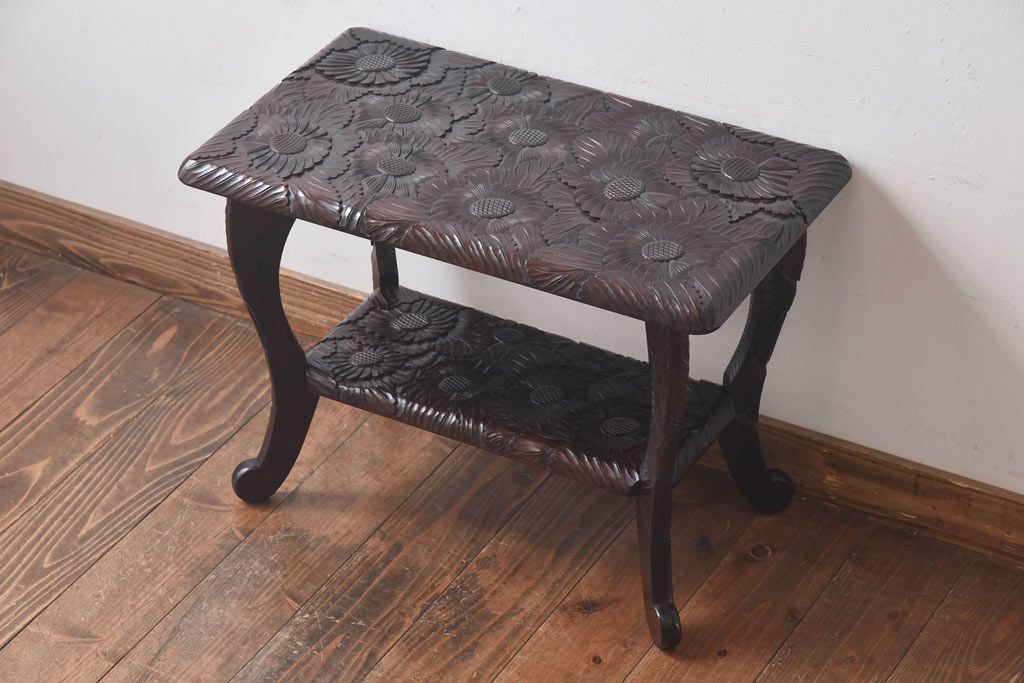 テーブル> サイドテーブル > アンティーク雑貨 中古 伝統工芸 日光彫り おおらかな花の意匠が施されたサイドテーブル(花台、飾り台)(R-030374)