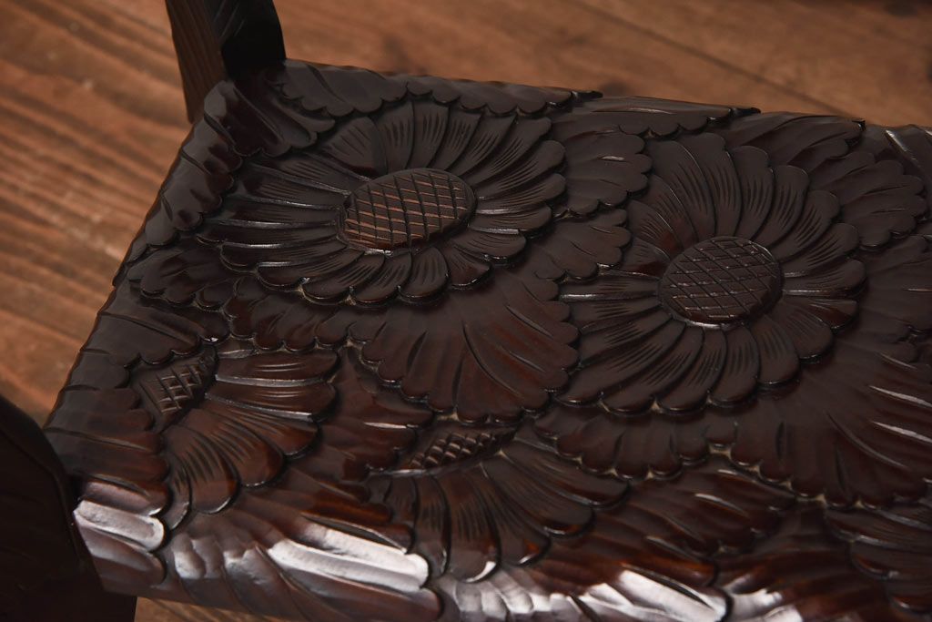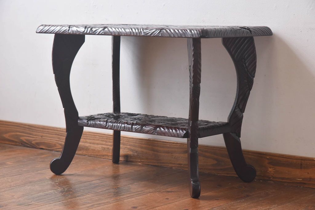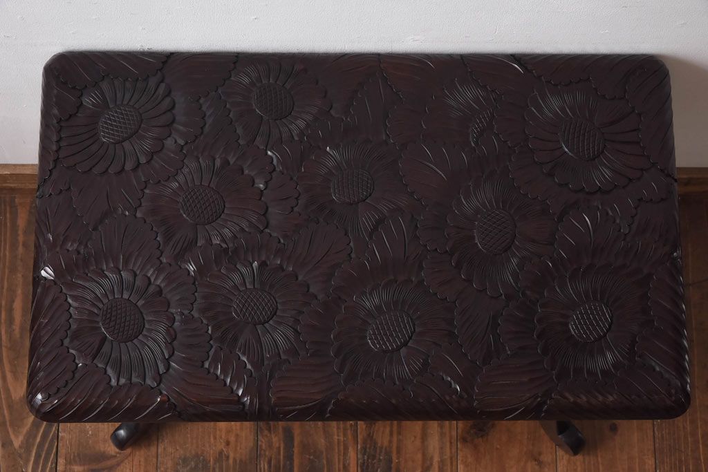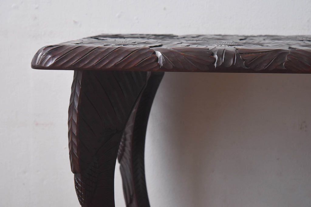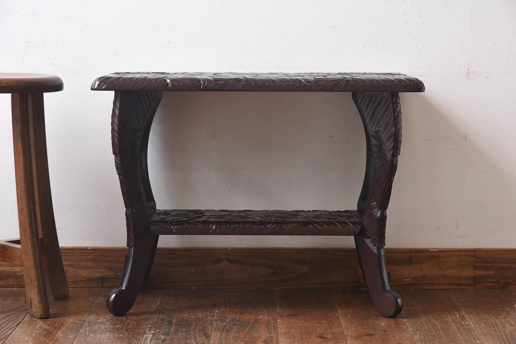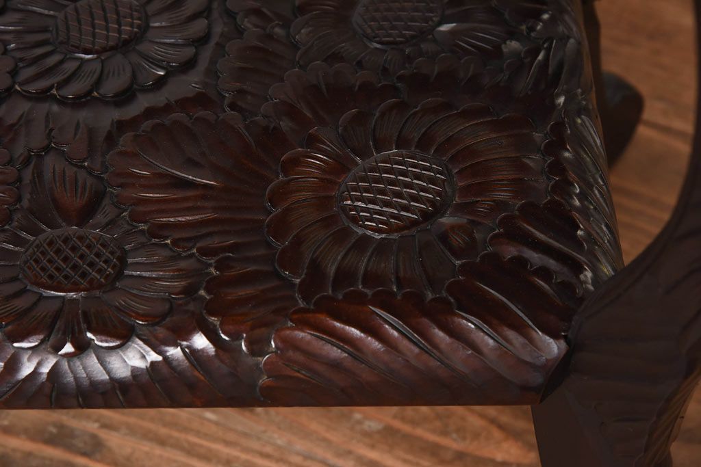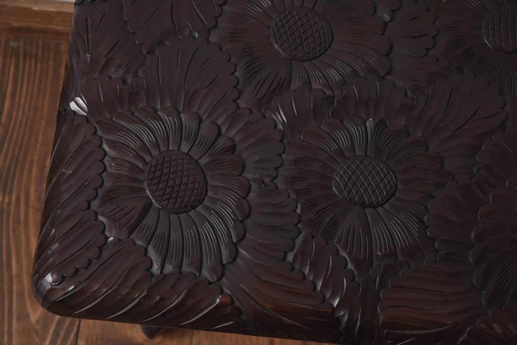 テーブル> サイドテーブル > アンティーク雑貨 中古 伝統工芸 日光彫り おおらかな花の意匠が施されたサイドテーブル(花台、飾り台)(R-030374)