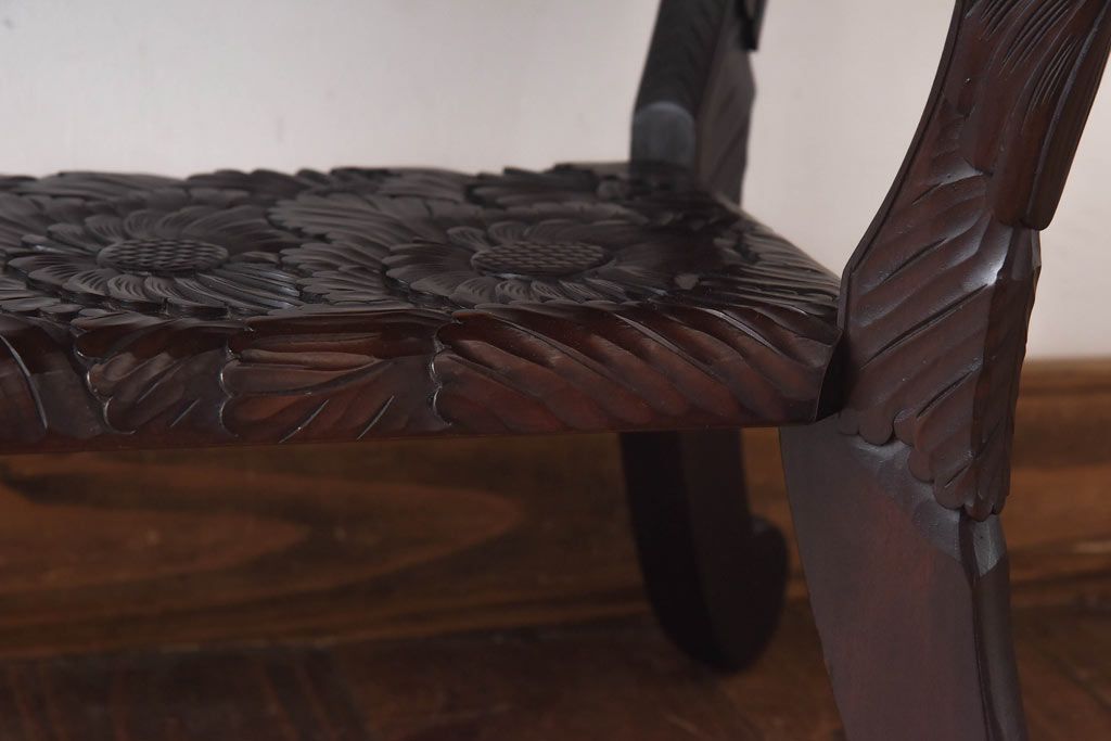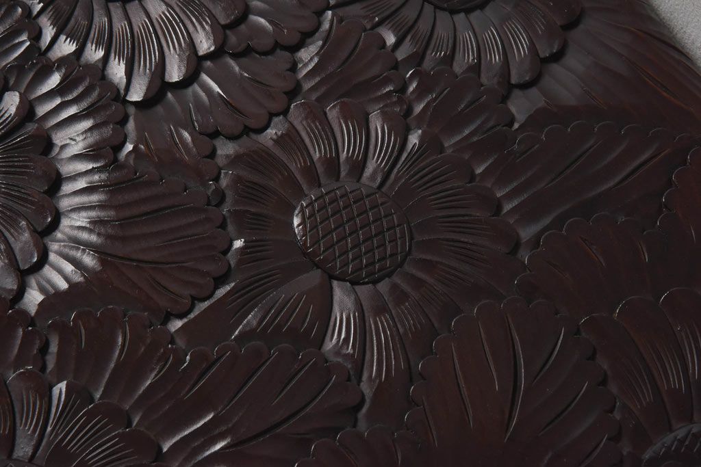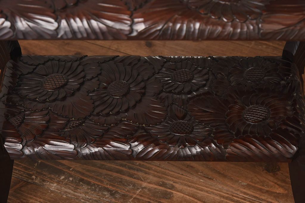 雑貨 > アンティーク雑貨 中古 伝統工芸 日光彫り おおらかな花の意匠が施されたサイドテーブル(花台、飾り台)(R-030374)