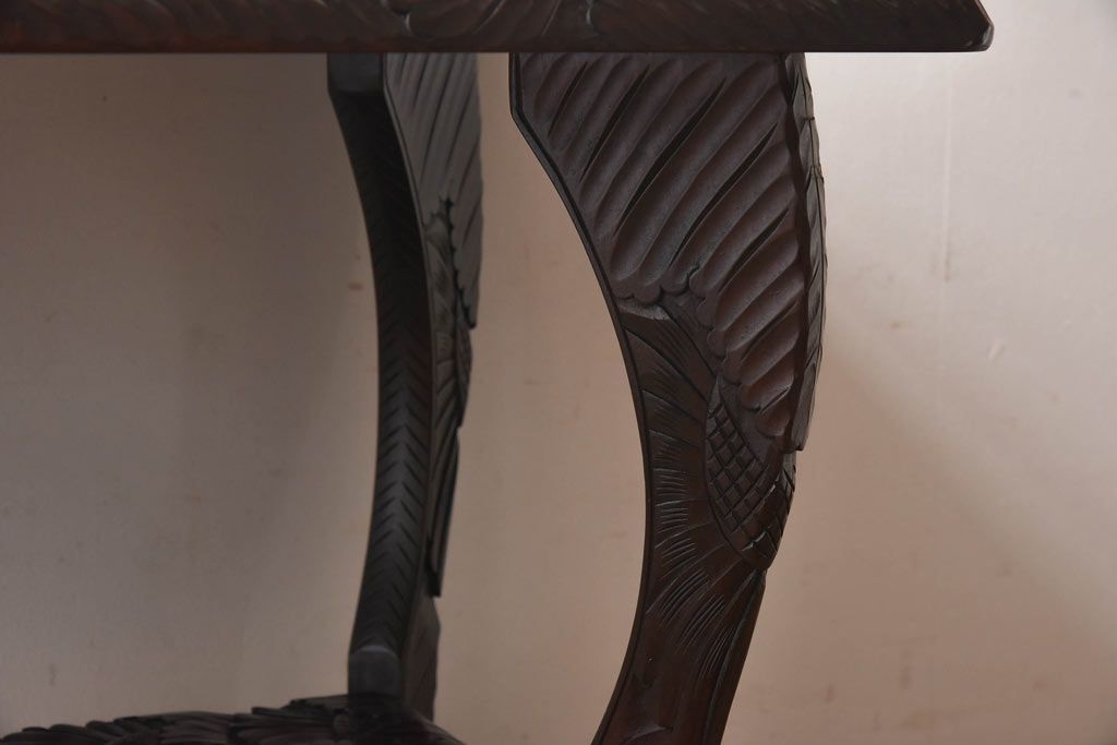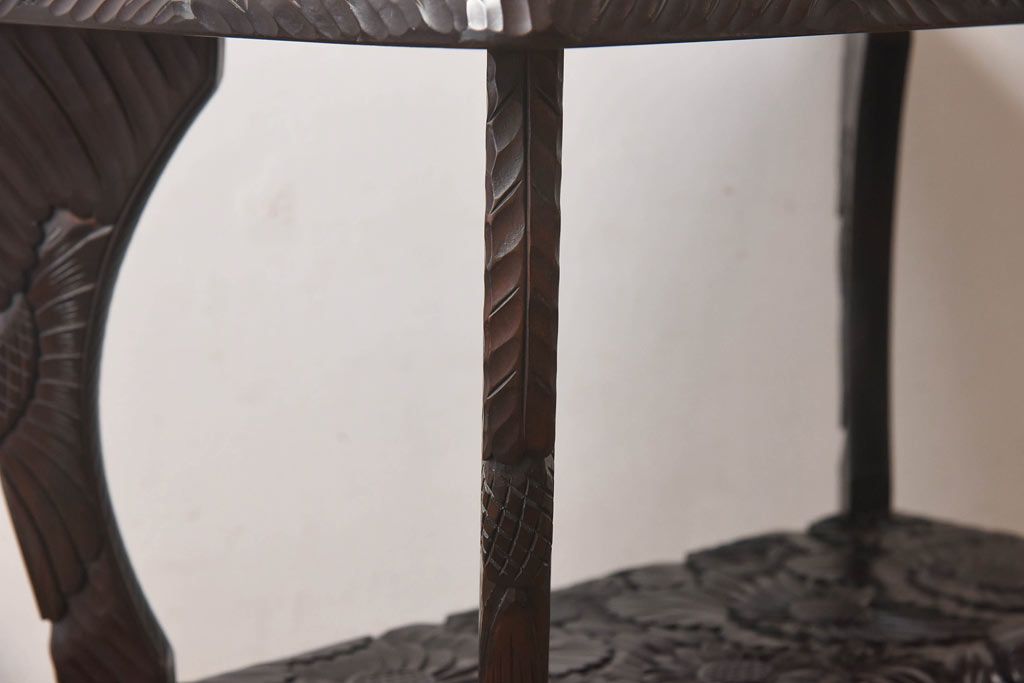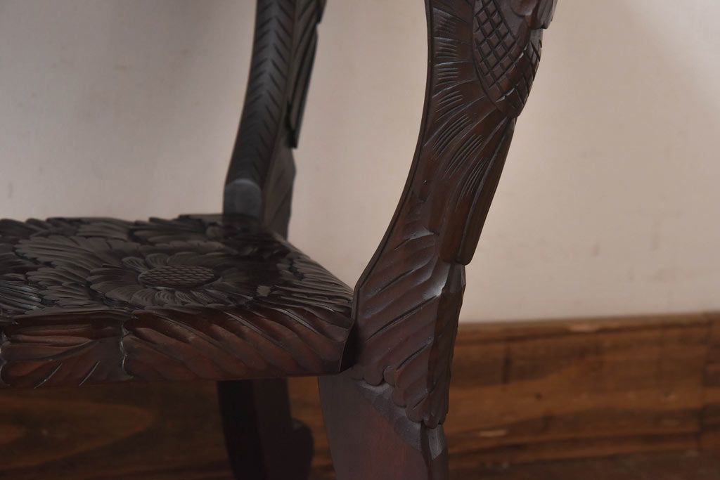 テーブル > アンティーク雑貨 中古 伝統工芸 日光彫り おおらかな花の意匠が施されたサイドテーブル(花台、飾り台)(R-030374)