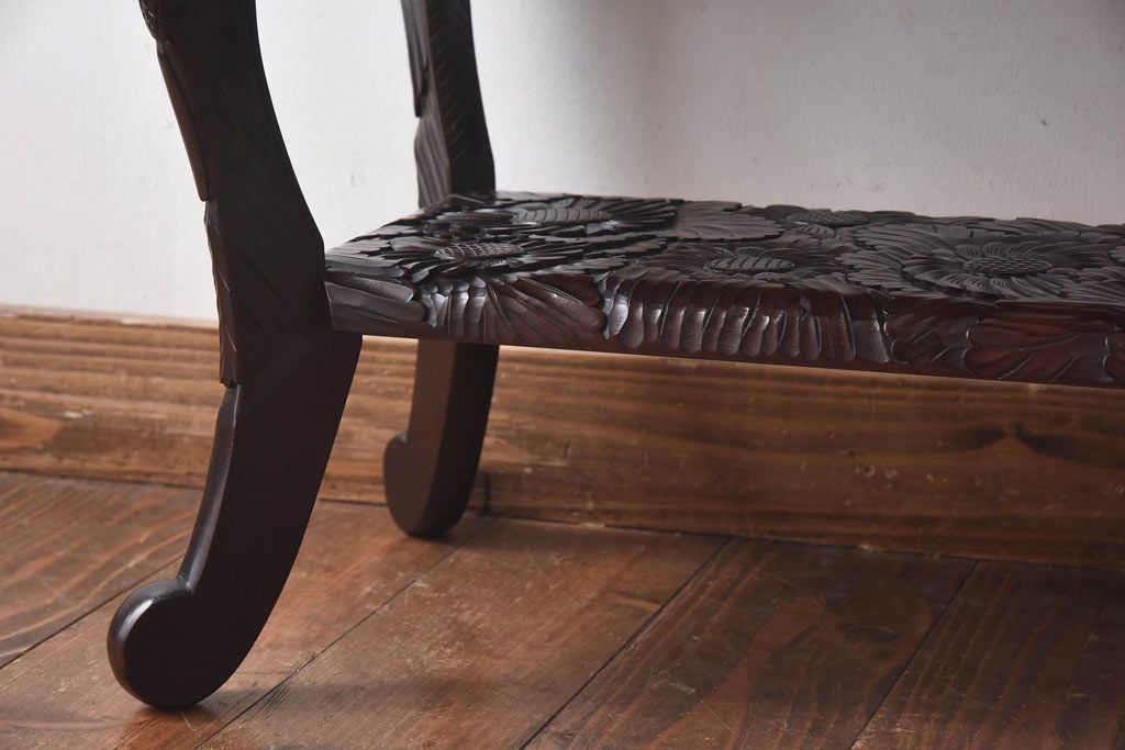 アンティーク雑貨 中古 伝統工芸 日光彫り おおらかな花の意匠が施されたサイドテーブル(花台、飾り台)(R-030374)