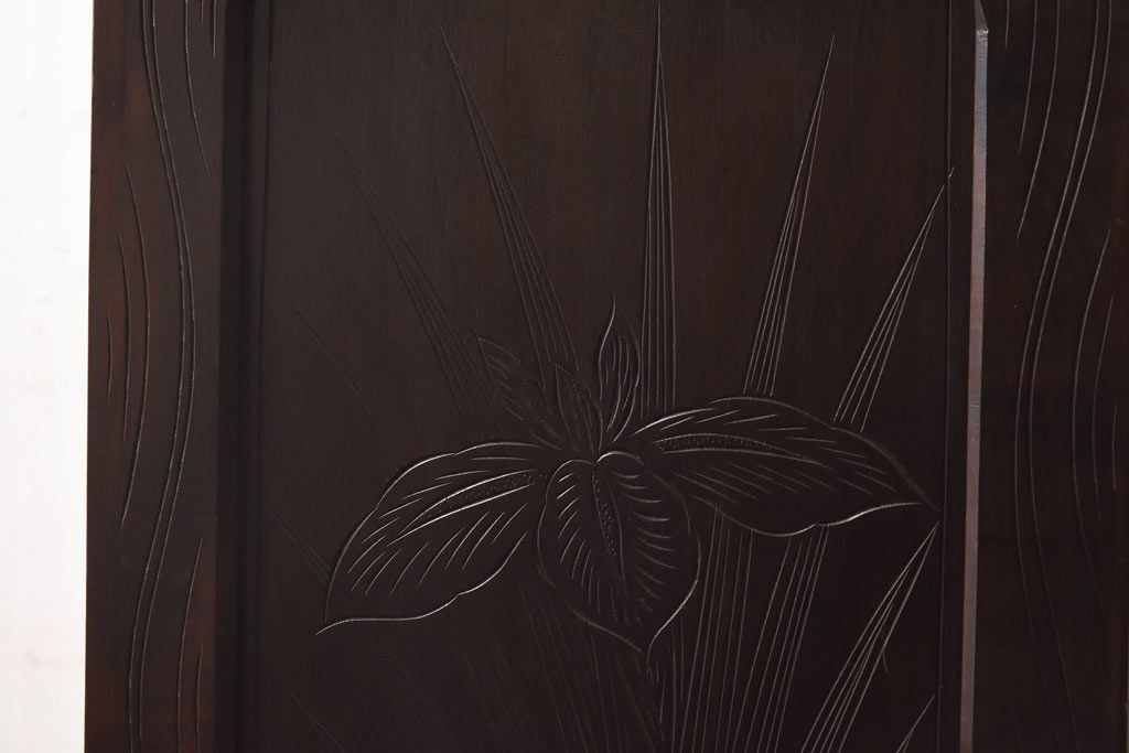チェスト・引き出し > 中古 伝統工芸 軽井沢彫り 職人技が光る菖蒲の彫りが美しいチェスト(小引き出し、整理箪笥)(R-030388)