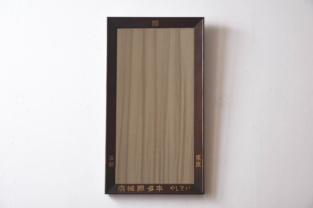 ラフジュ工房> 鏡 > アンティーク雑貨 大正昭和初期 ナラ材 古い字体がレトロな趣きの壁掛け鏡(ミラー)(R-030390)