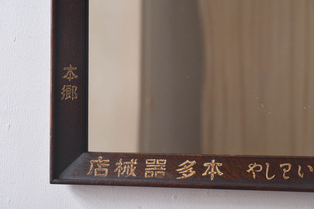 ラフジュ工房> 雑貨 > アンティーク雑貨 大正昭和初期 ナラ材 古い字体がレトロな趣きの壁掛け鏡(ミラー)(R-030390)