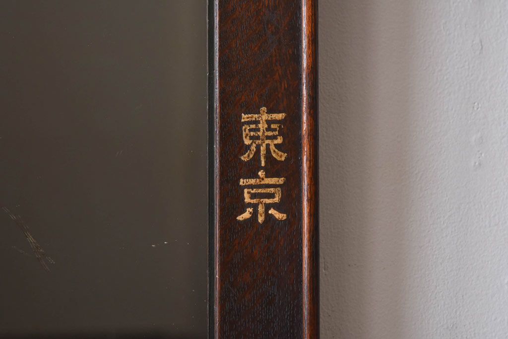 アンティーク雑貨 大正昭和初期 ナラ材 古い字体がレトロな趣きの壁掛け鏡(ミラー)(R-030390)