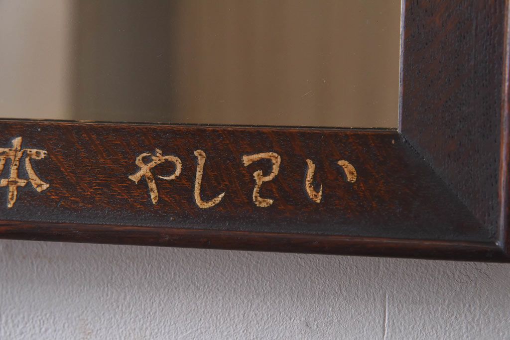 ラフジュ工房> 鏡> 壁掛け鏡 > アンティーク雑貨 大正昭和初期 ナラ材 古い字体がレトロな趣きの壁掛け鏡(ミラー)(R-030390)