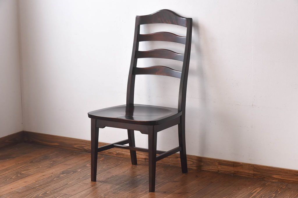 中古 北海道民芸家具 HM645 すっきりとしたデザインのラダーバックチェア(ダイニングチェア、椅子)(2)(R-030367)