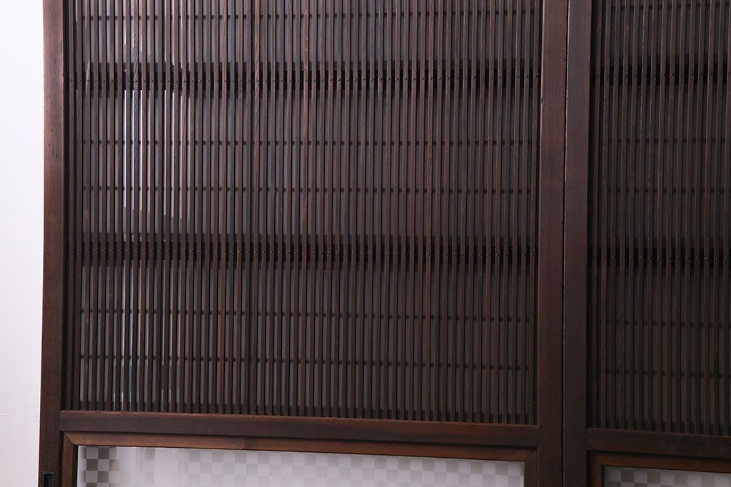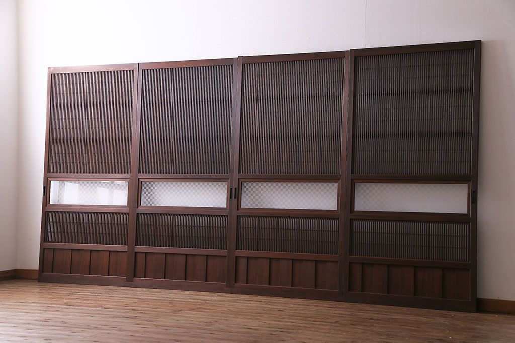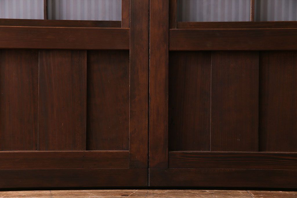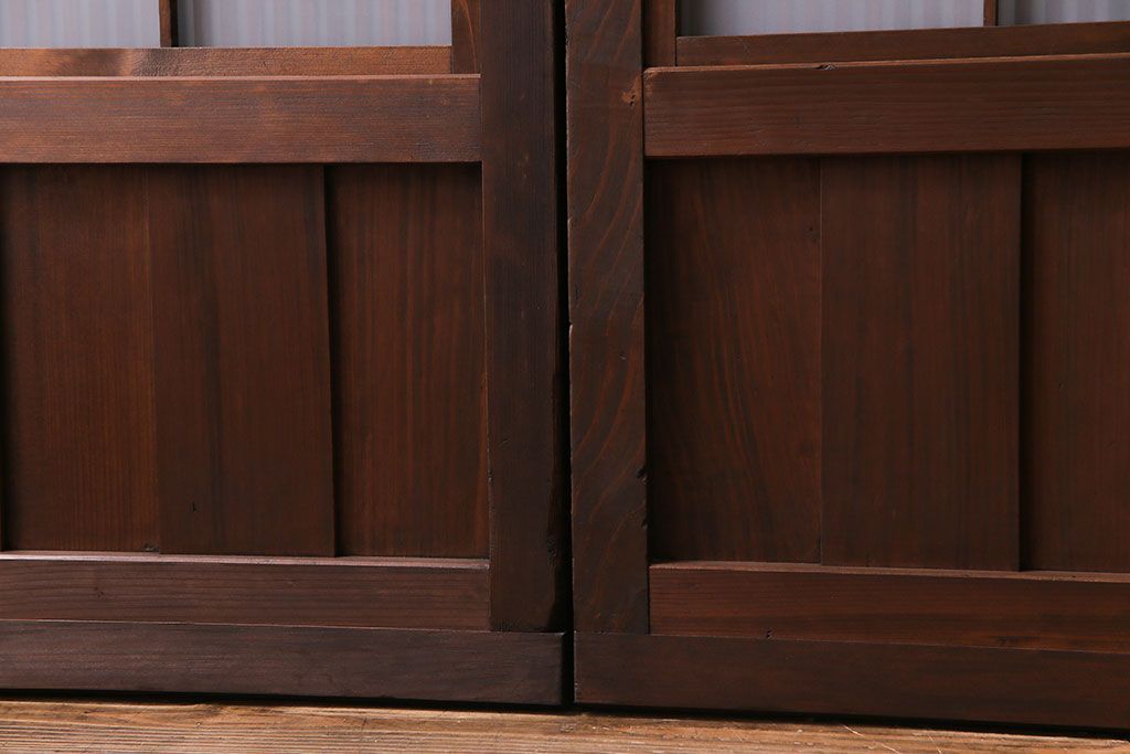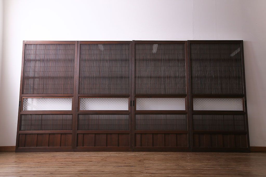 ドア・建具> 格子戸 > 昭和初期 板ガラス裏障子留め オリジナルガラス 市松模様のガラスがモダンな印象のガラス帯戸4枚セット(ガラス戸、引き戸、帯戸)(R-030389)