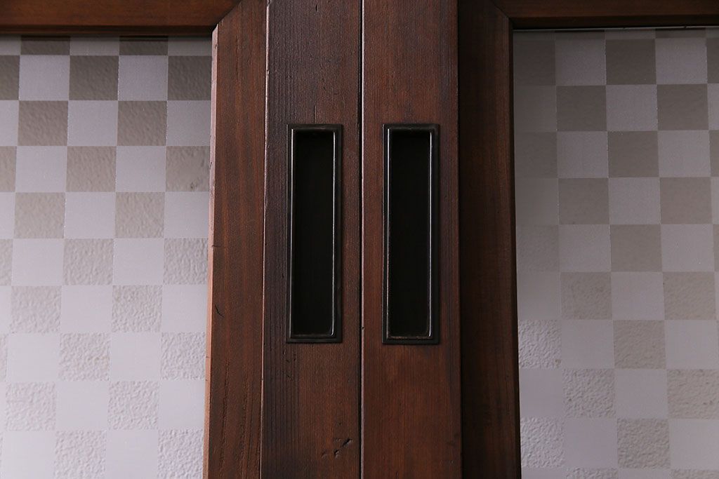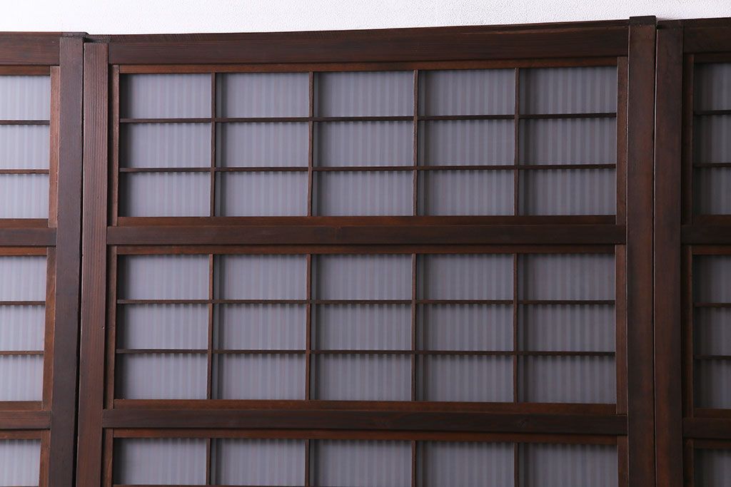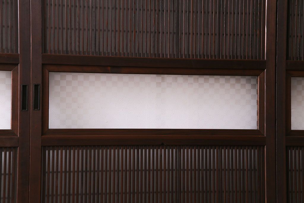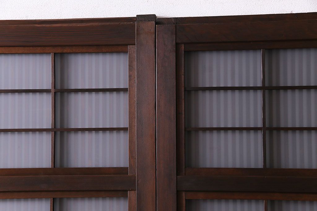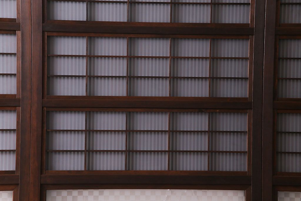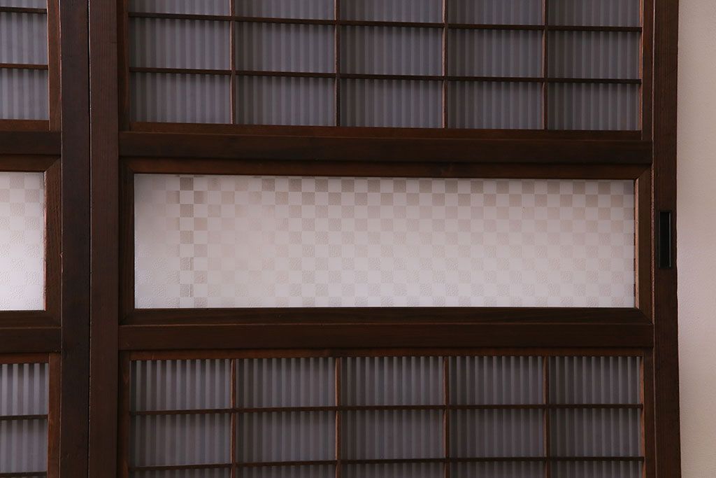 ドア・建具> ガラス戸 > 昭和初期 板ガラス裏障子留め オリジナルガラス 市松模様のガラスがモダンな印象のガラス帯戸4枚セット(ガラス戸、引き戸、帯戸)(R-030389)