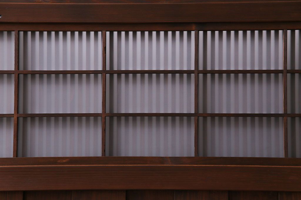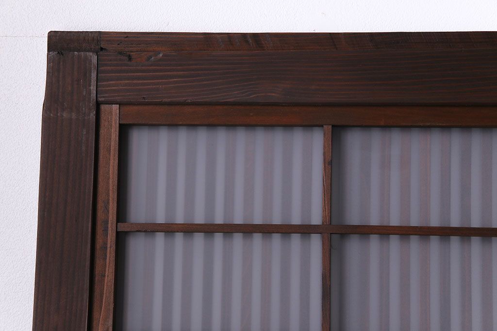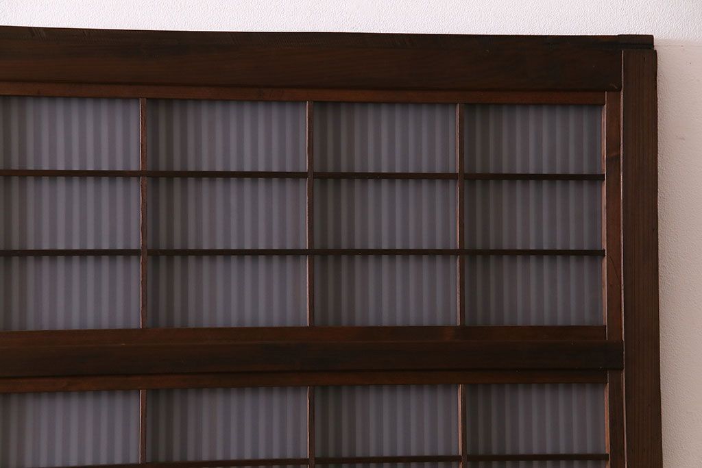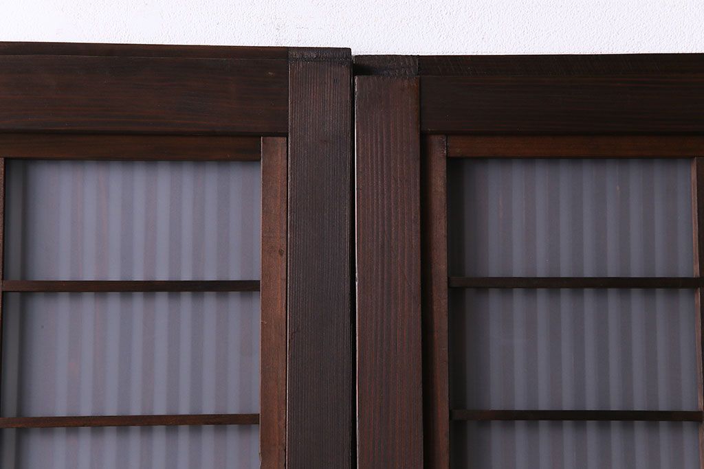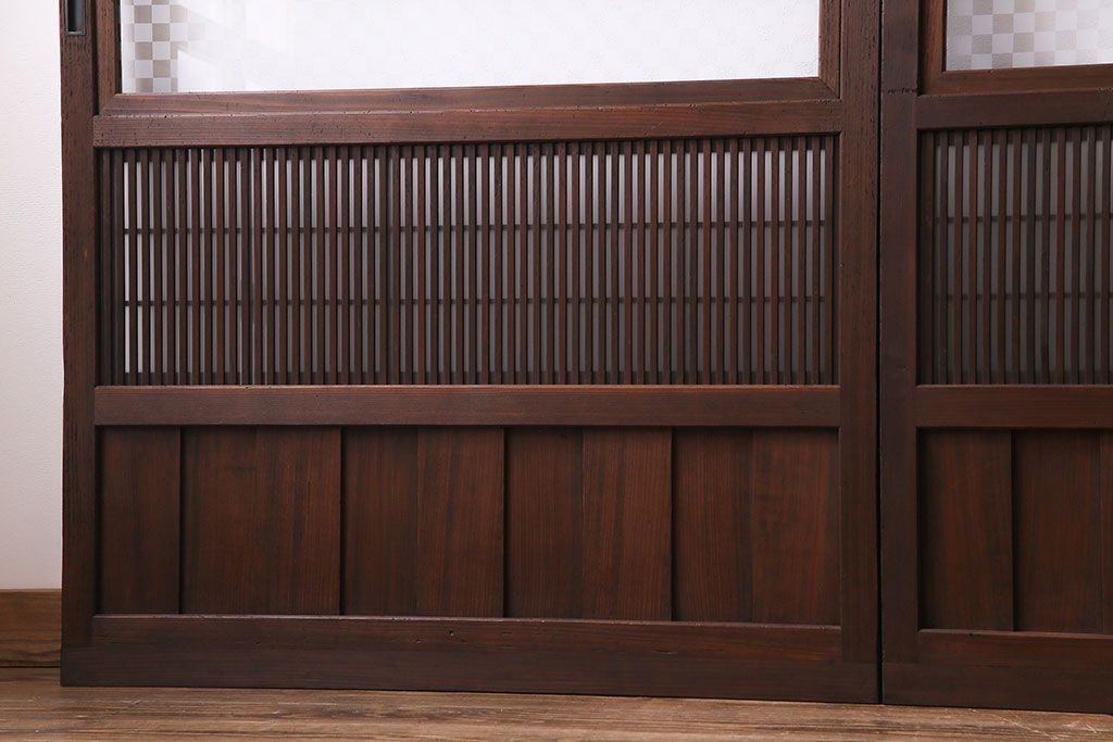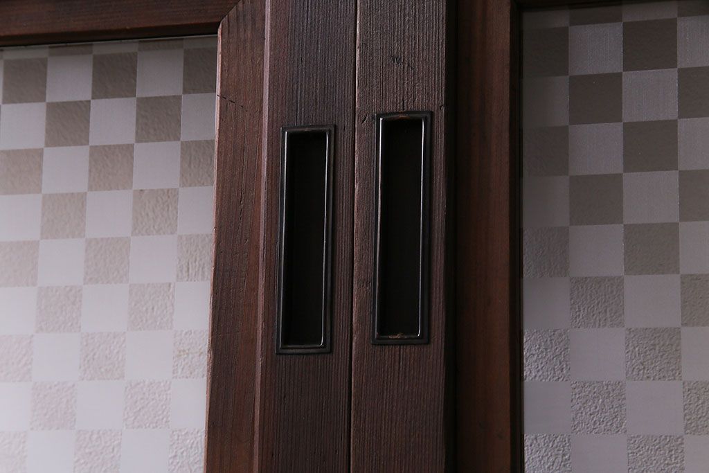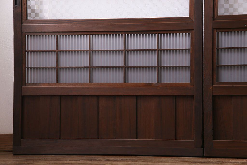 昭和初期 板ガラス裏障子留め オリジナルガラス 市松模様のガラスがモダンな印象のガラス帯戸4枚セット(ガラス戸、引き戸、帯戸)(R-030389)