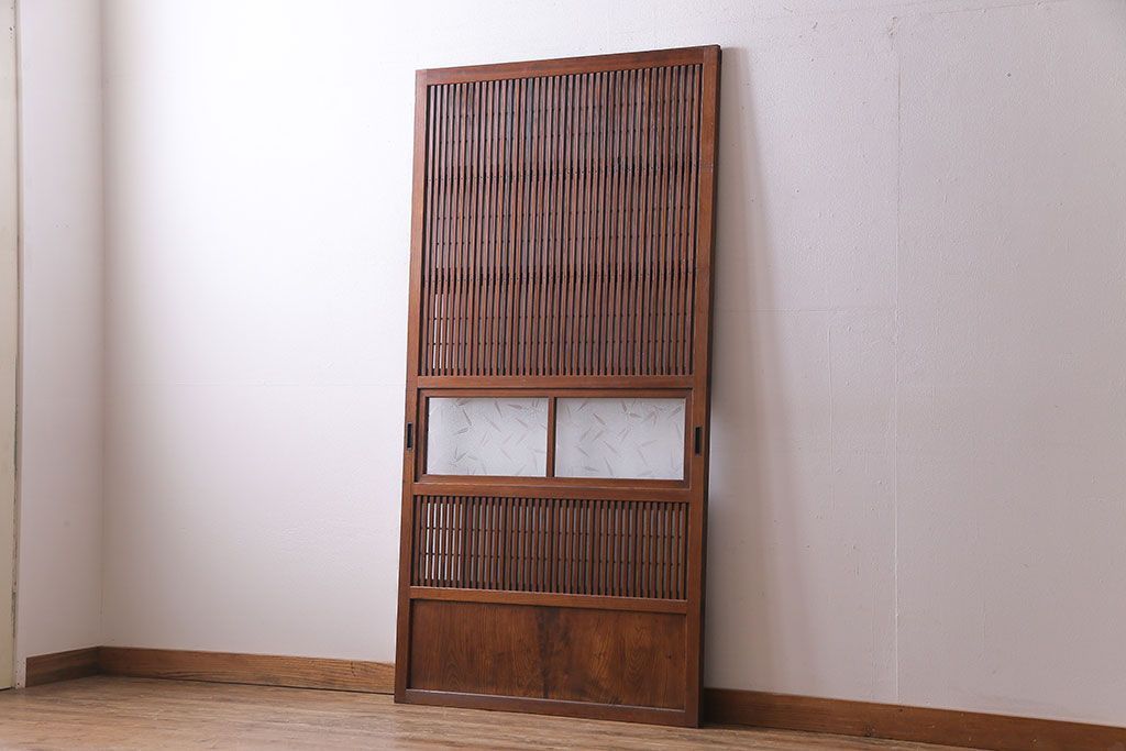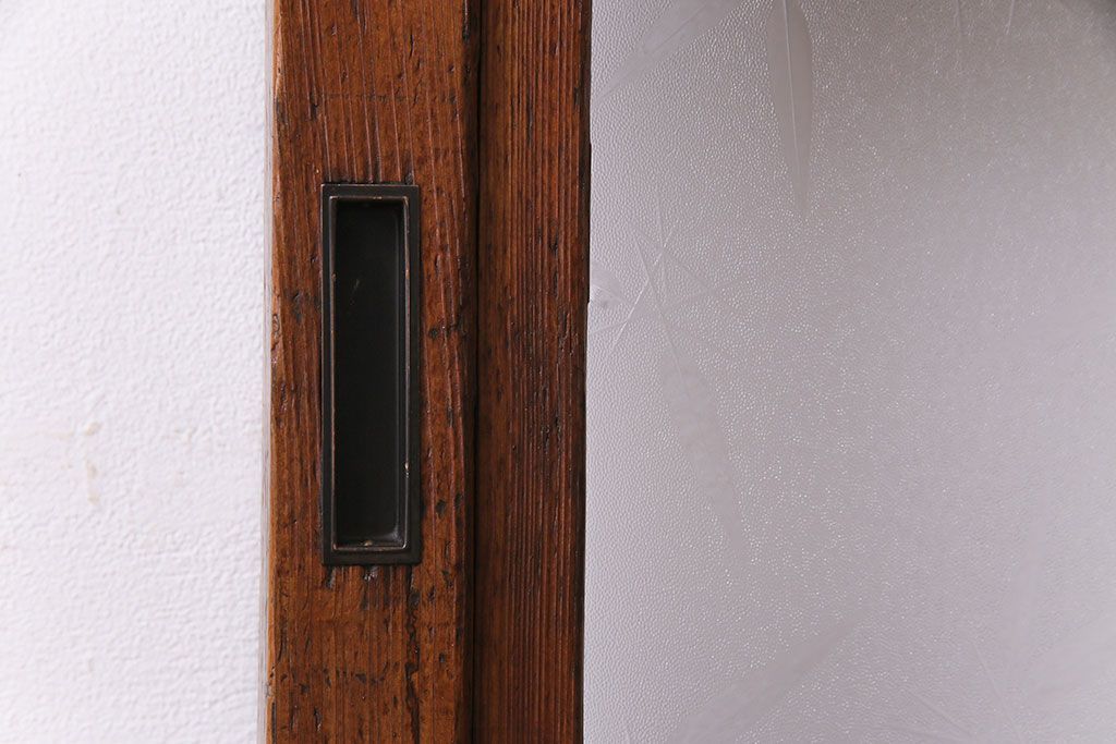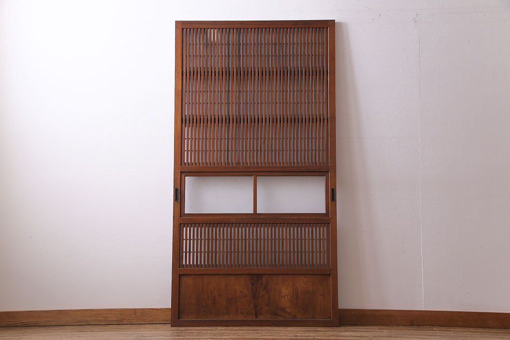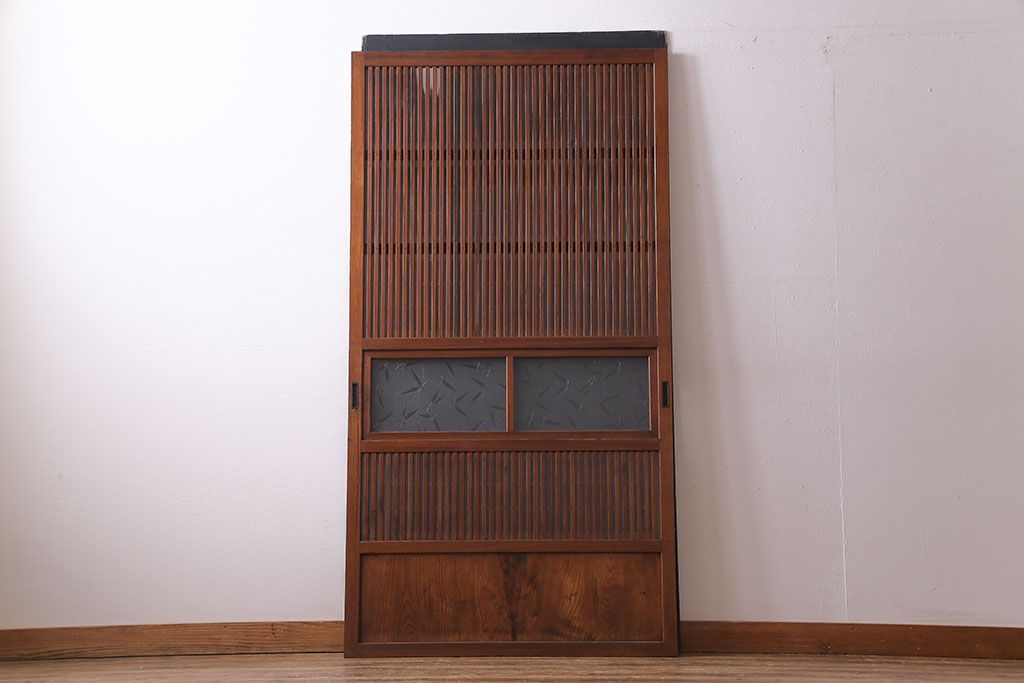 ドア・建具> 板戸・帯戸 > 昭和初期 板ガラス裏障子留め 細身の桟と裏ガラスが美しい格子戸(ガラス帯戸、ガラス戸、引き戸、建具)(R-030392)