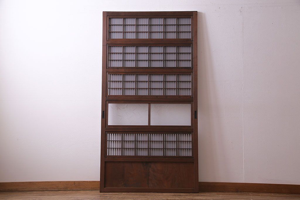 ドア・建具 > 昭和初期 板ガラス裏障子留め 細身の桟と裏ガラスが美しい格子戸(ガラス帯戸、ガラス戸、引き戸、建具)(R-030392)