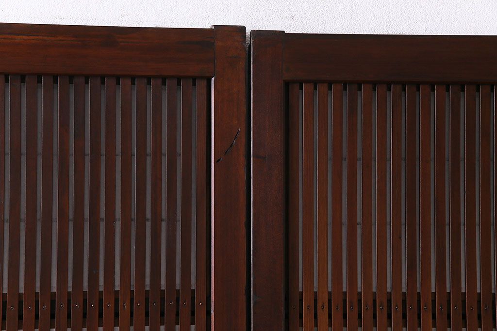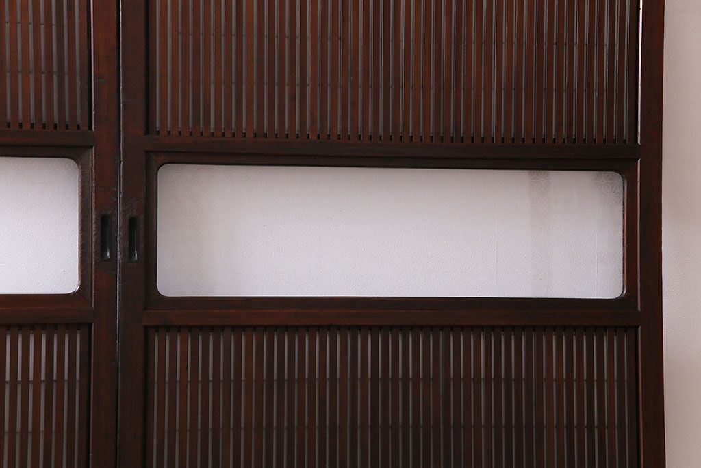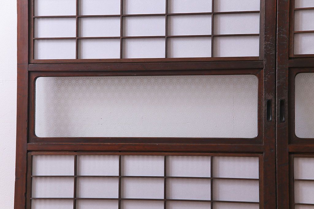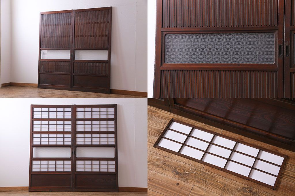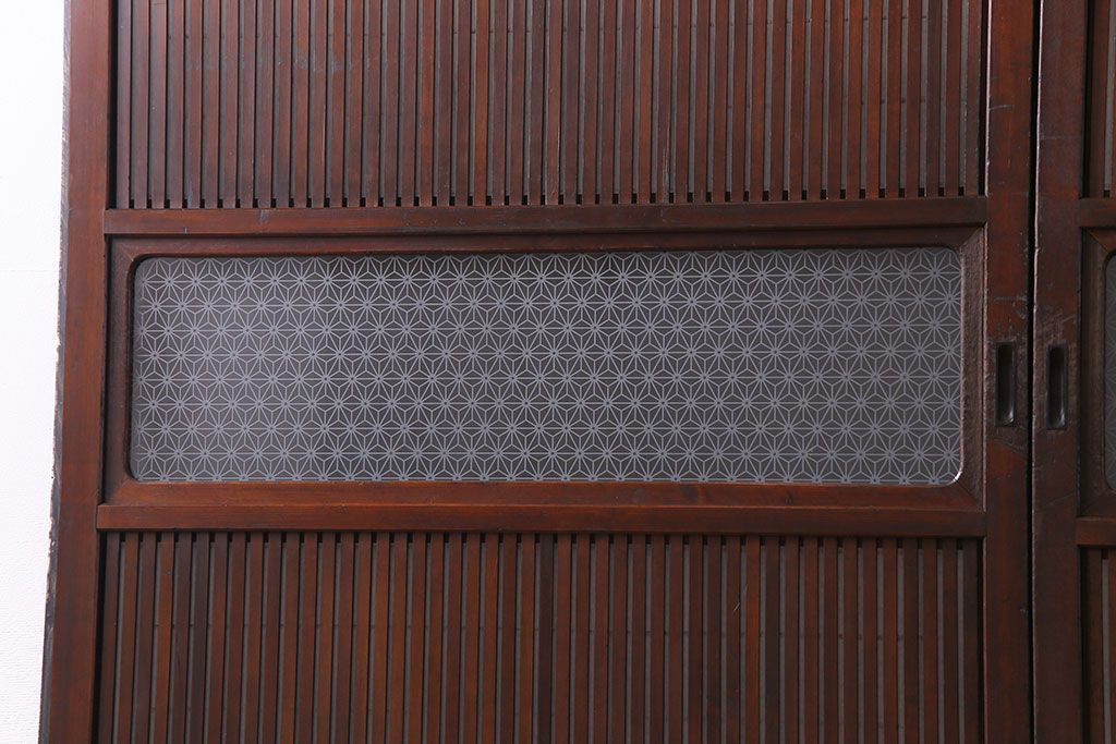 ドア・建具> 格子戸 > 昭和期 裏障子付き 組子モチーフのガラスがお洒落な格子戸2枚セット(ガラス帯戸、ガラス戸、引き戸、帯戸)(R-030430)