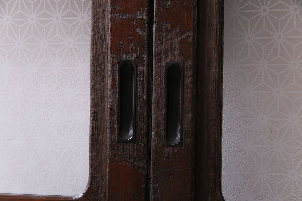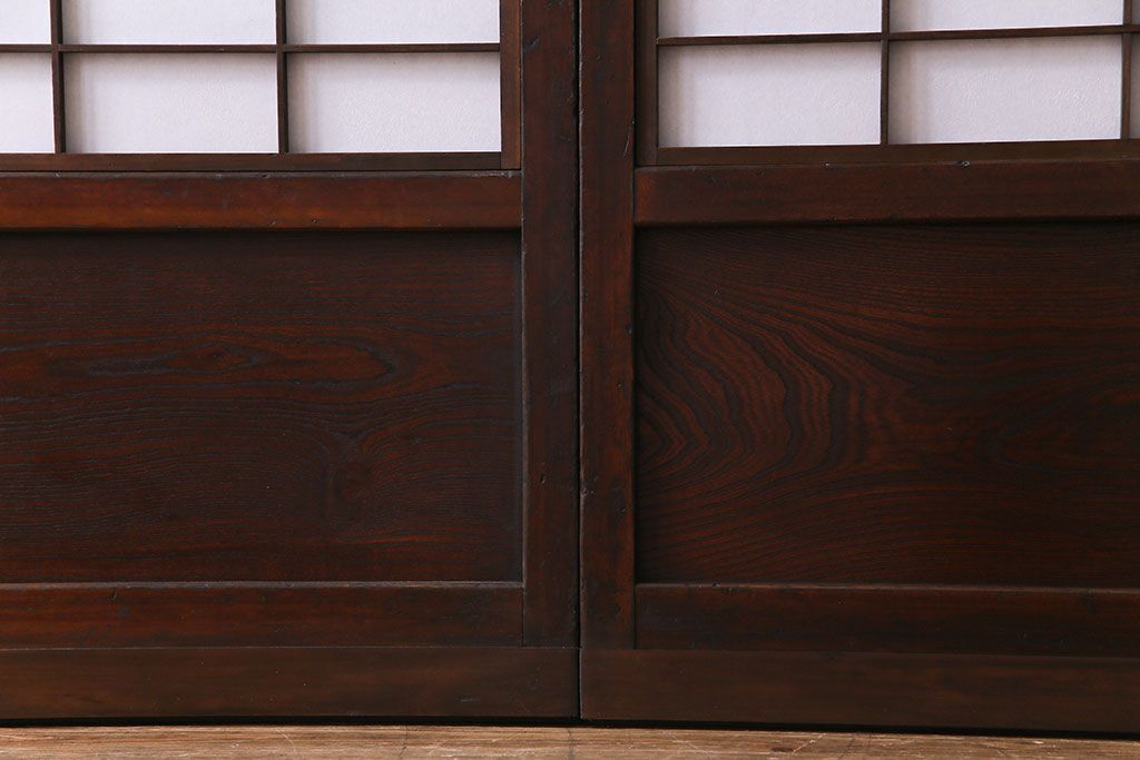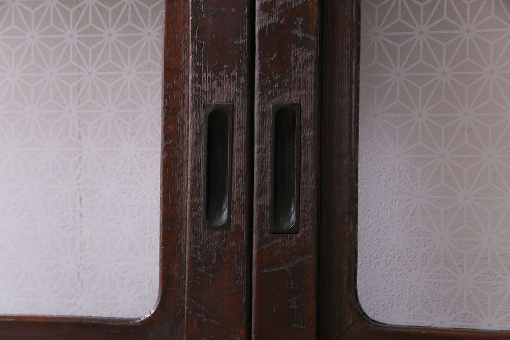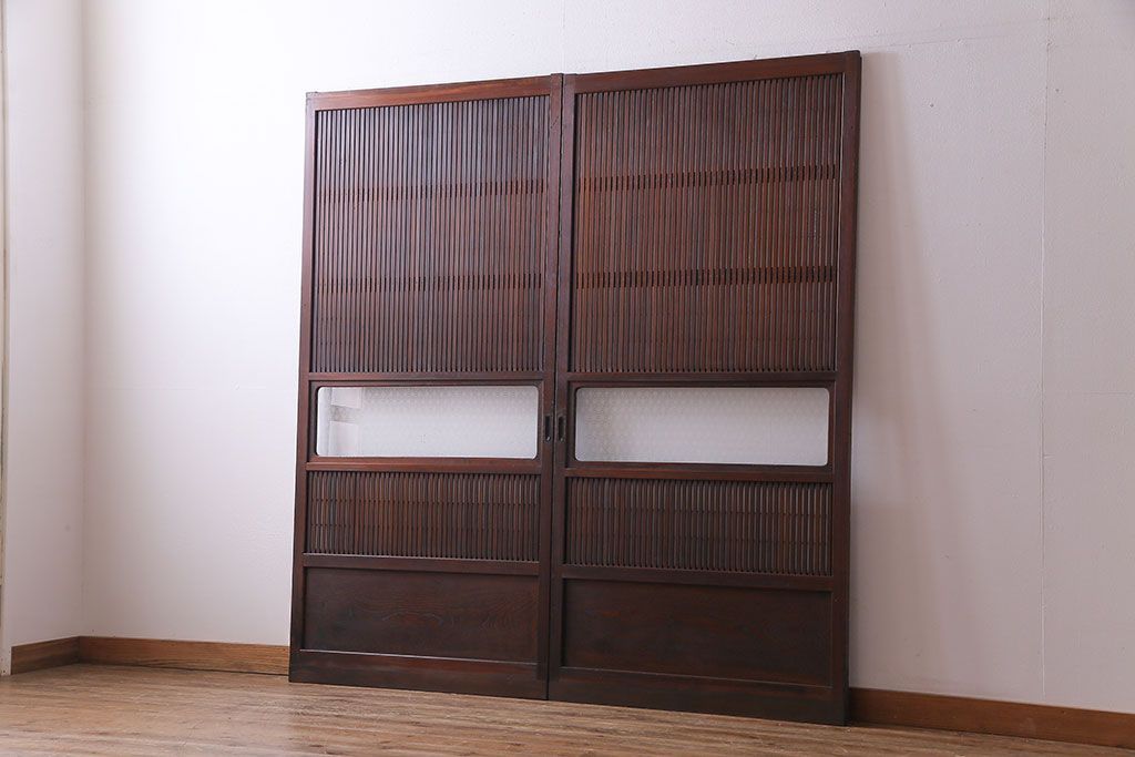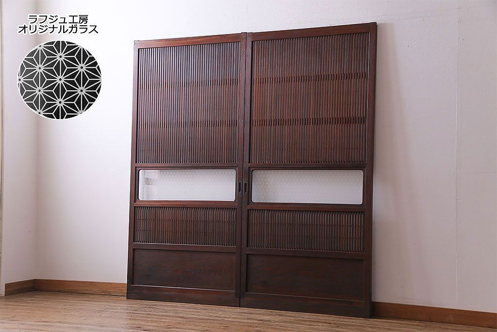 ドア・建具 > 昭和期 裏障子付き 組子モチーフのガラスがお洒落な格子戸2枚セット(ガラス帯戸、ガラス戸、引き戸、帯戸)(R-030430)