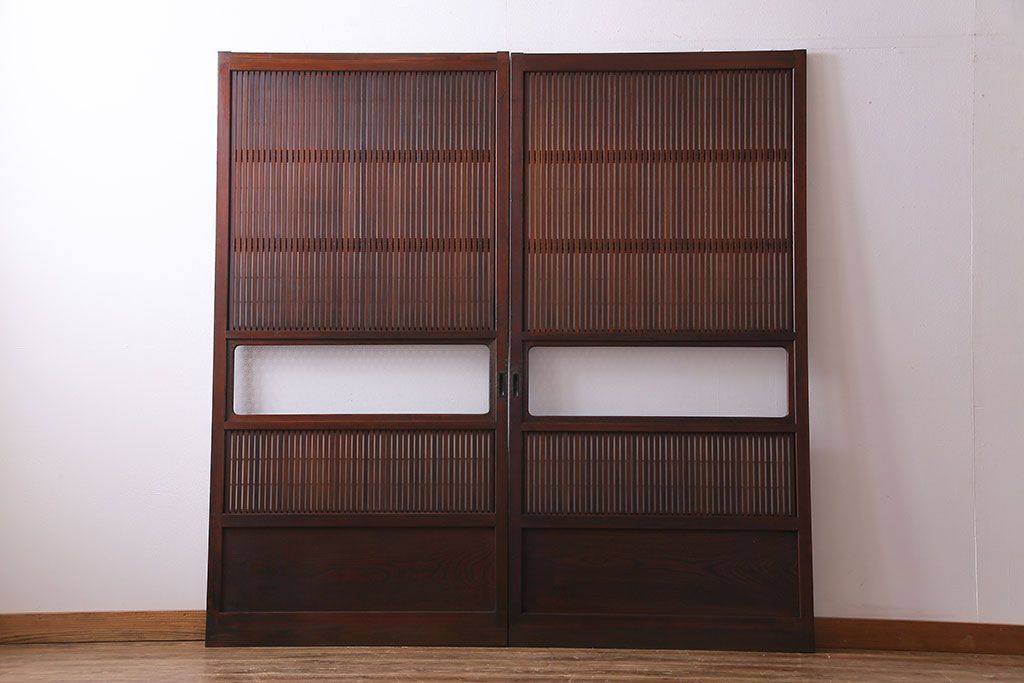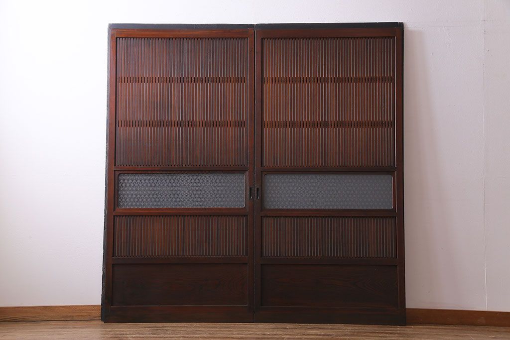 昭和期 裏障子付き 組子モチーフのガラスがお洒落な格子戸2枚セット(ガラス帯戸、ガラス戸、引き戸、帯戸)です。