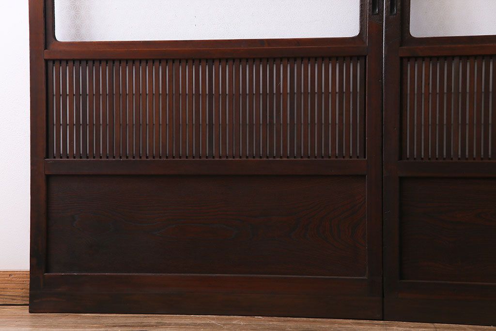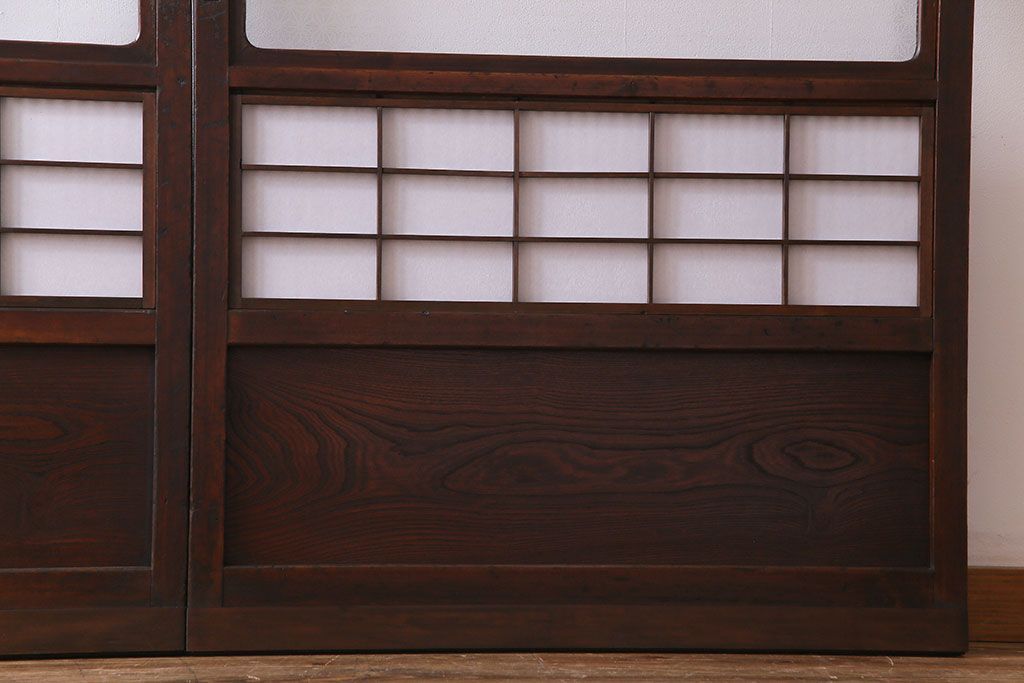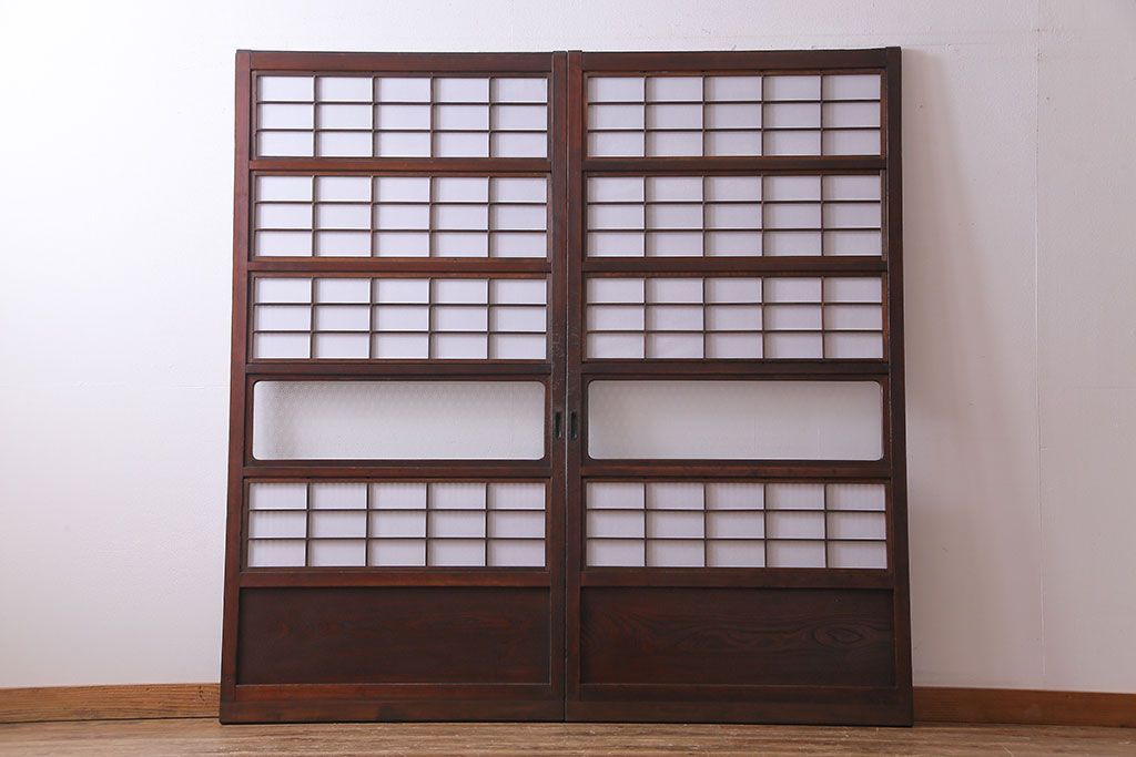 昭和期 裏障子付き 組子モチーフのガラスがお洒落な格子戸2枚セット(ガラス帯戸、ガラス戸、引き戸、帯戸)(R-030430)