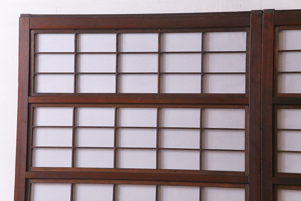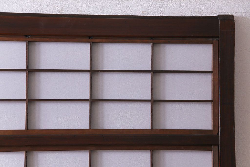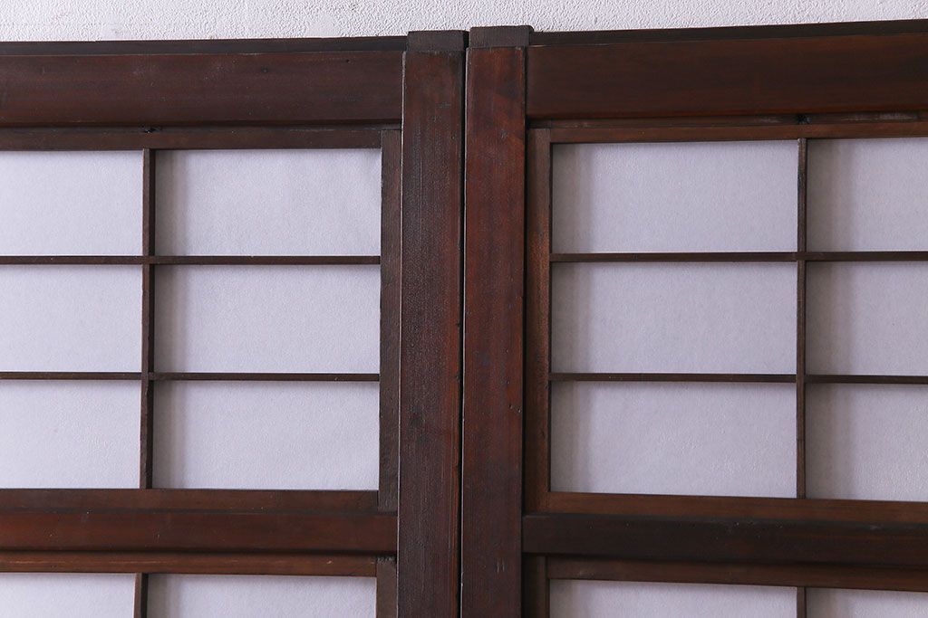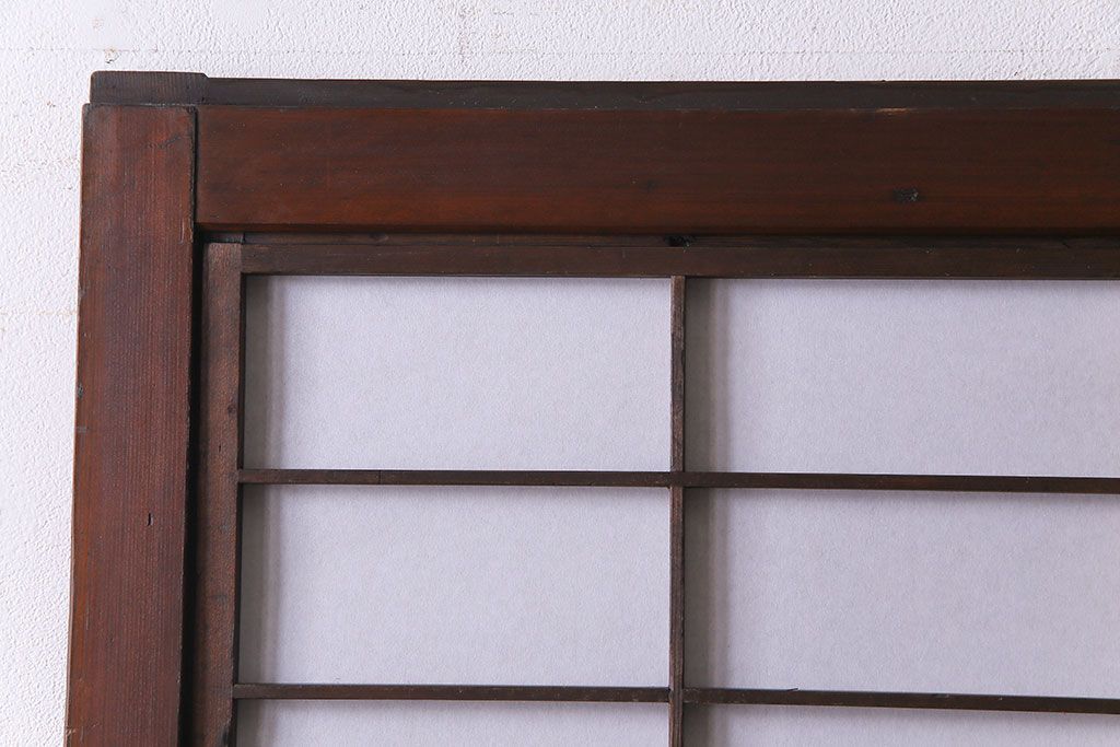 ドア・建具> 障子戸 > 昭和期 裏障子付き 組子モチーフのガラスがお洒落な格子戸2枚セット(ガラス帯戸、ガラス戸、引き戸、帯戸)(R-030430)