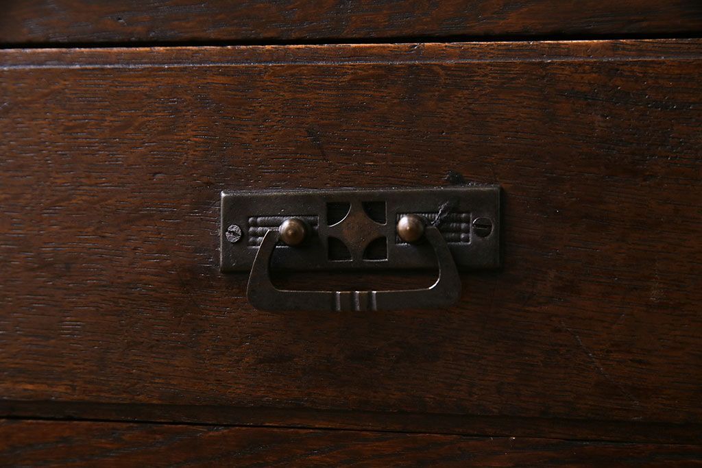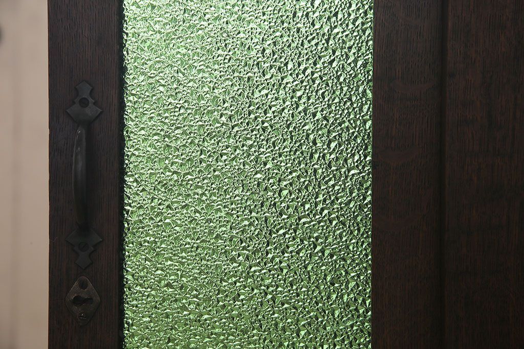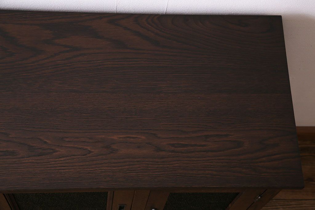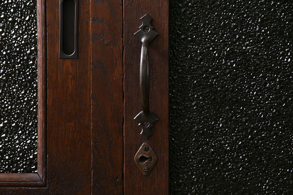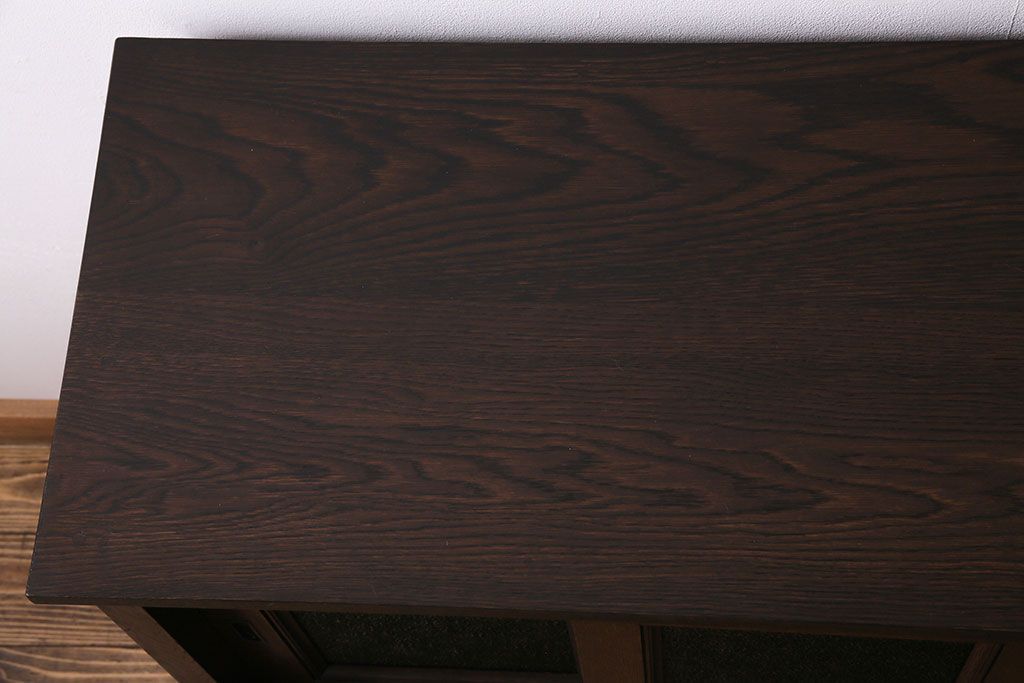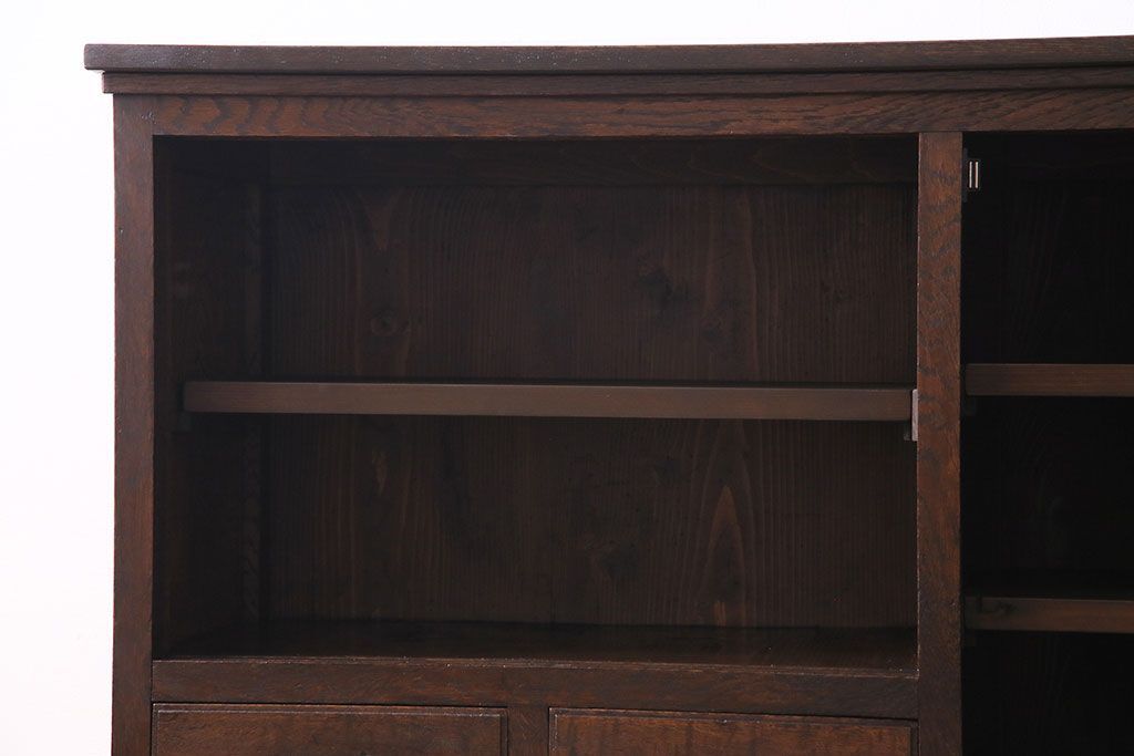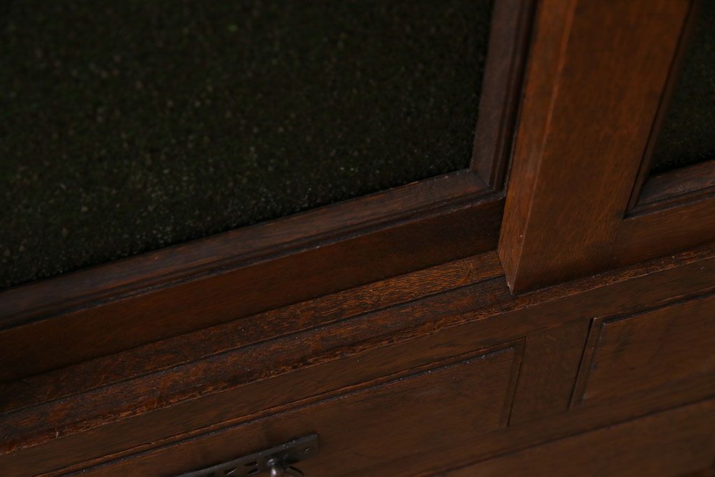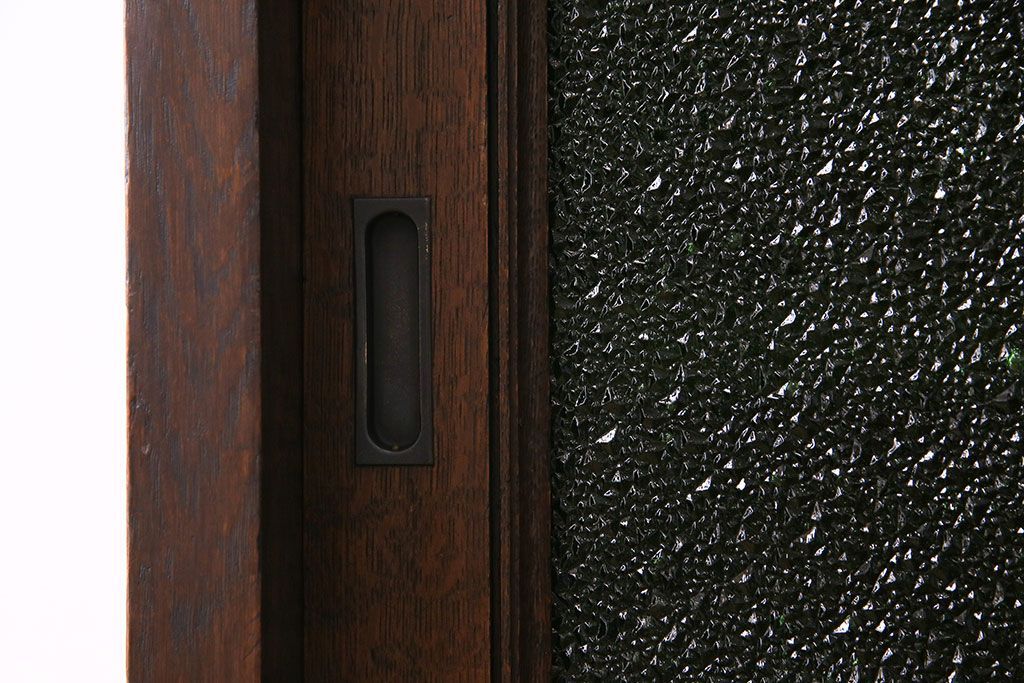 アンティーク家具 大正ロマン 色ガラス 古いナラ材の質感が味わい深い収納棚(ローボード、食器棚、ブックケース)(R-030412)