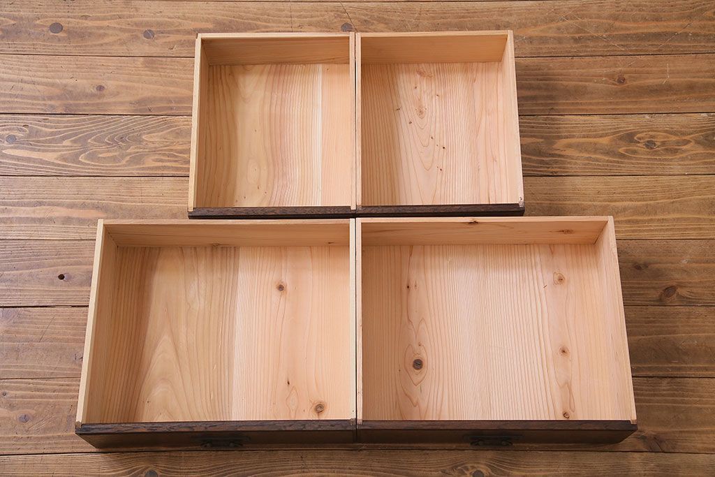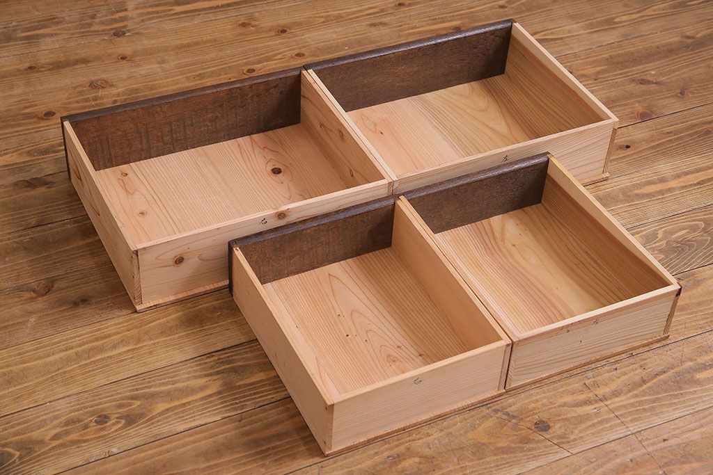 ラフジュ工房> キャビネット・戸棚> 食器棚・カップボード > アンティーク家具 大正ロマン 色ガラス 古いナラ材の質感が味わい深い収納棚(ローボード、食器棚、ブックケース)(R-030412)