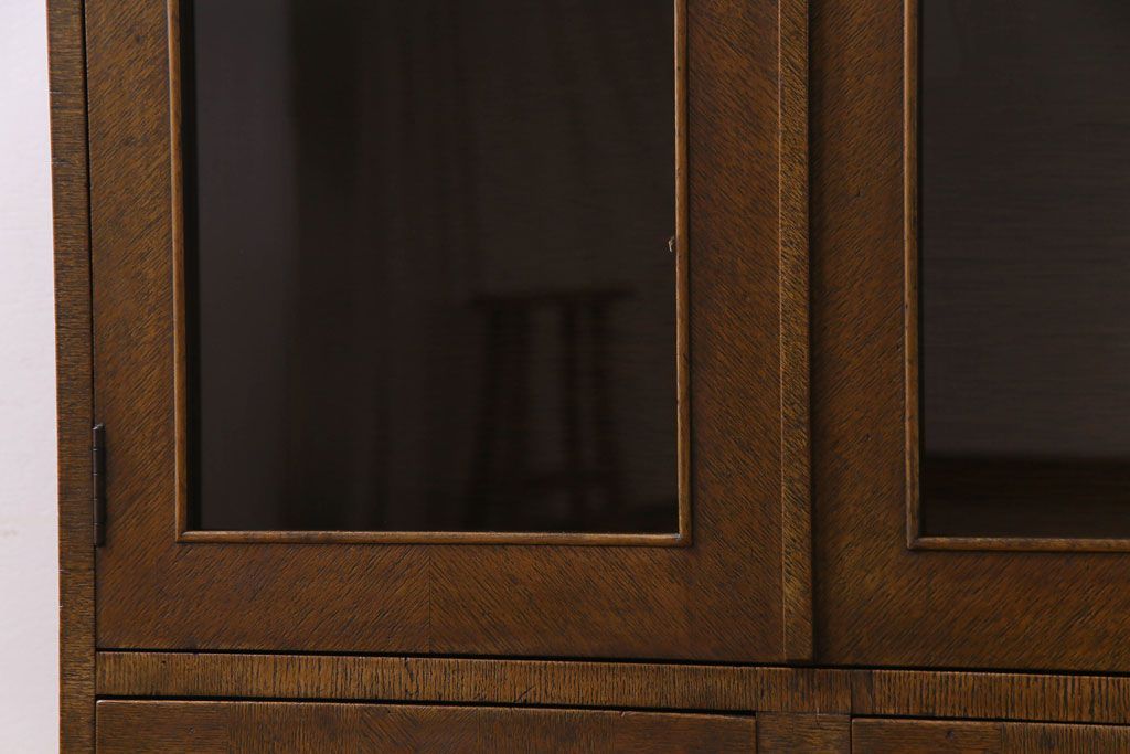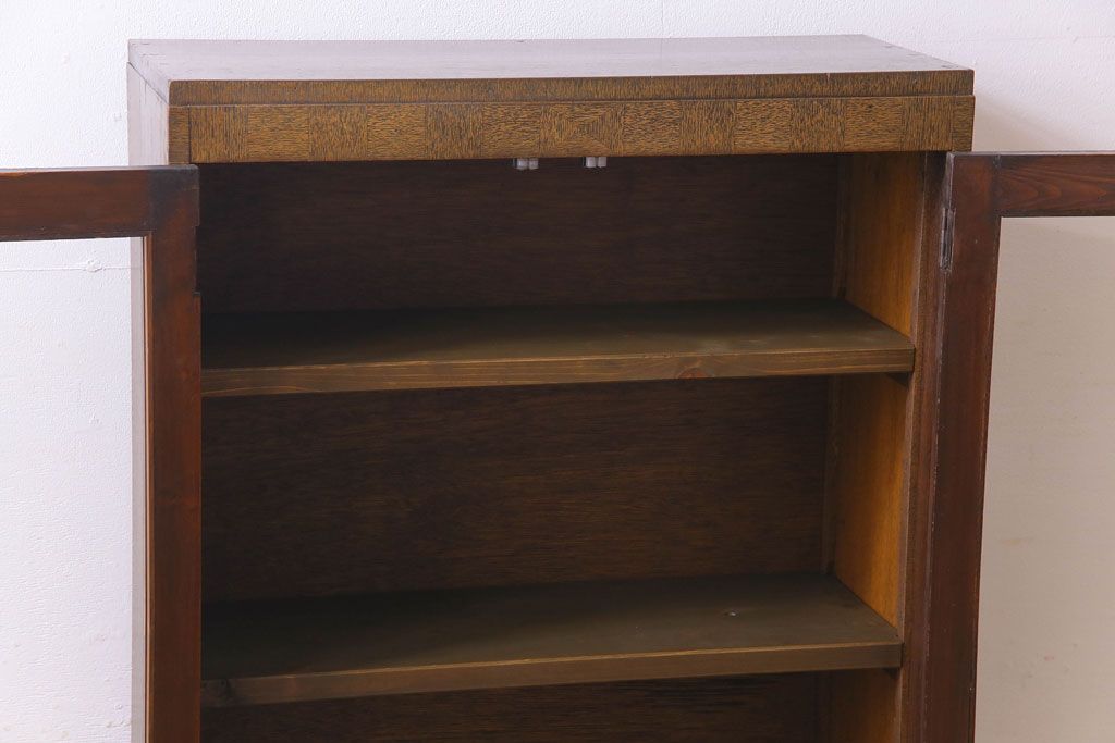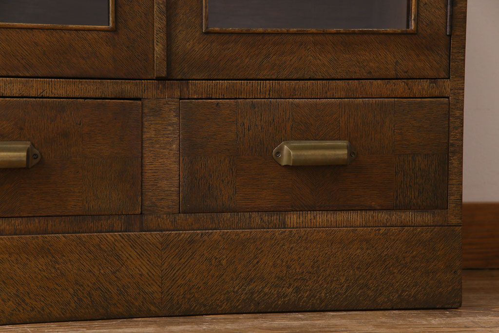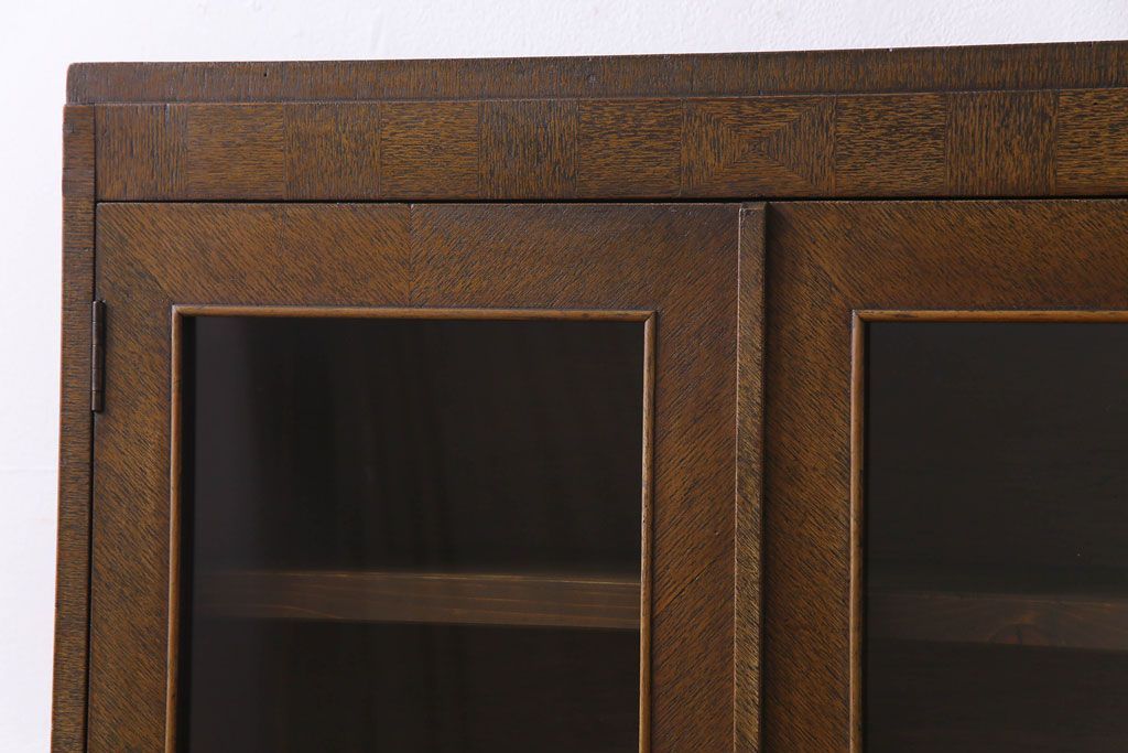 レトロ家具 レトロ 味わいのあるパーケット(寄木)が魅力の本箱(戸棚、収納棚、飾り棚)(R-030445)