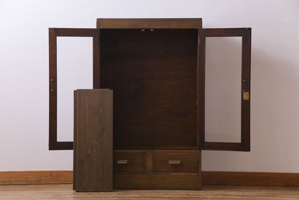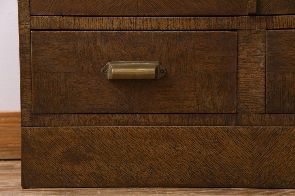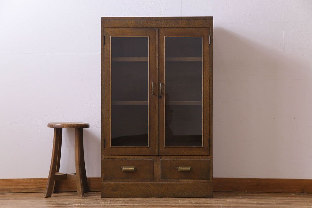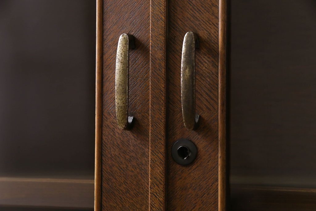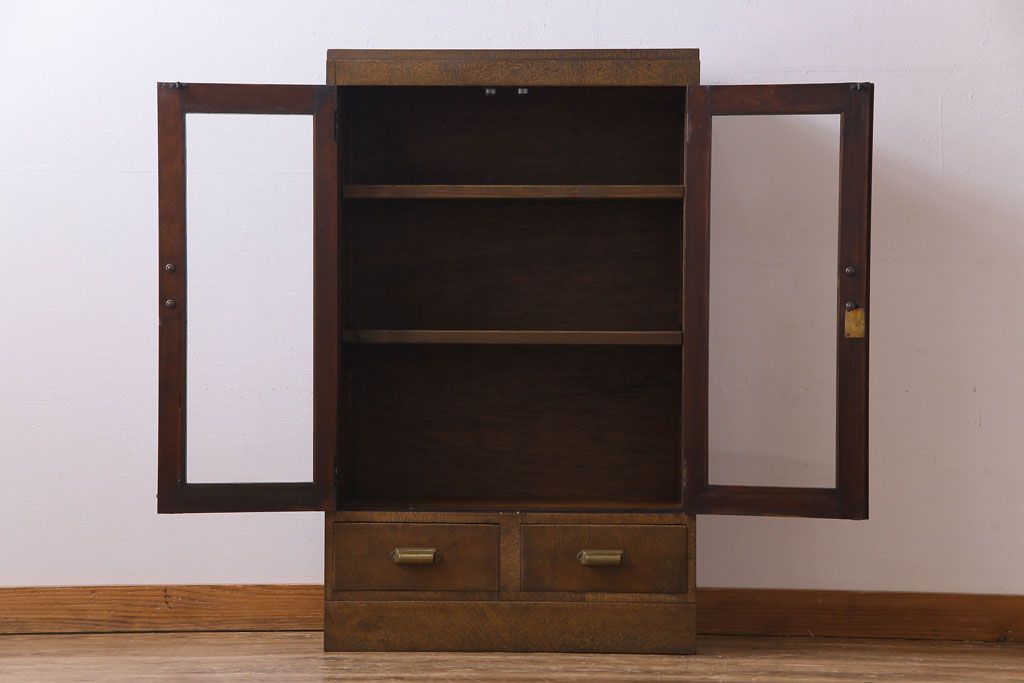 レトロ家具 レトロ 味わいのあるパーケット(寄木)が魅力の本箱(戸棚、収納棚、飾り棚)(R-030445)