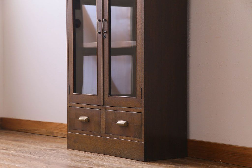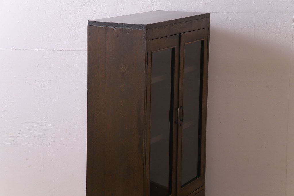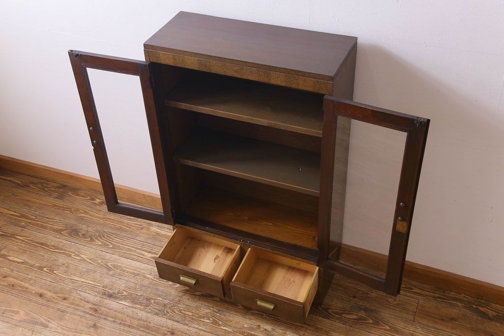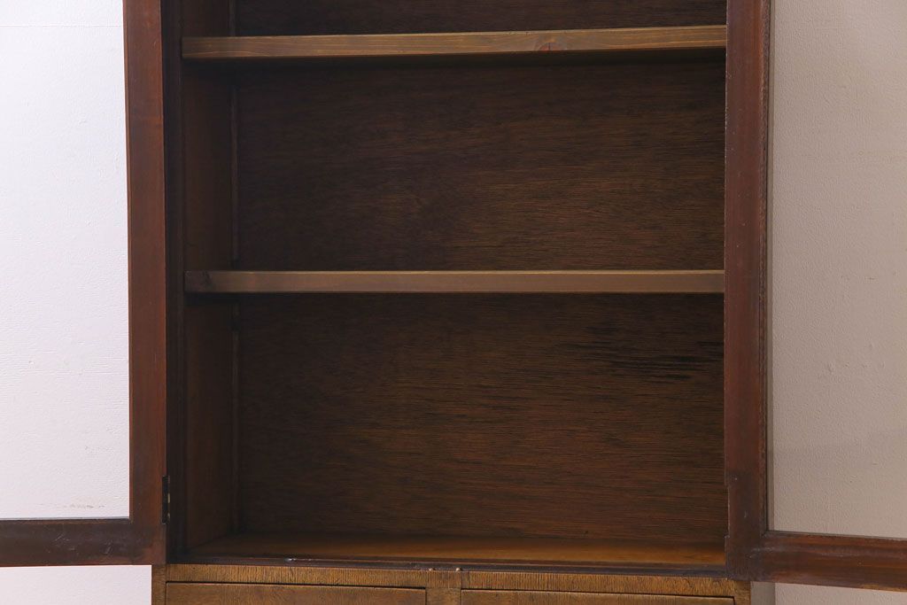 ラフジュ工房> キャビネット・戸棚> 本箱 > レトロ家具 レトロ 味わいのあるパーケット(寄木)が魅力の本箱(戸棚、収納棚、飾り棚)(R-030445)