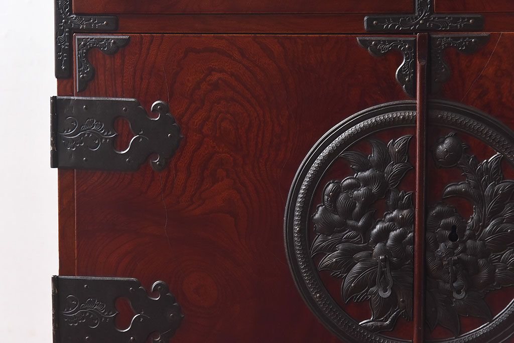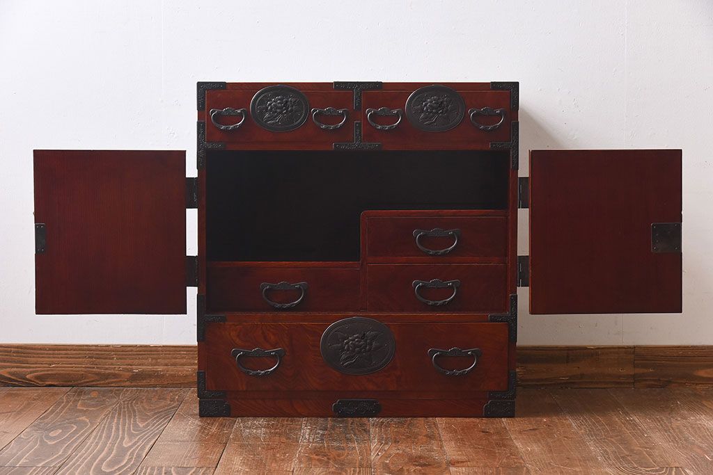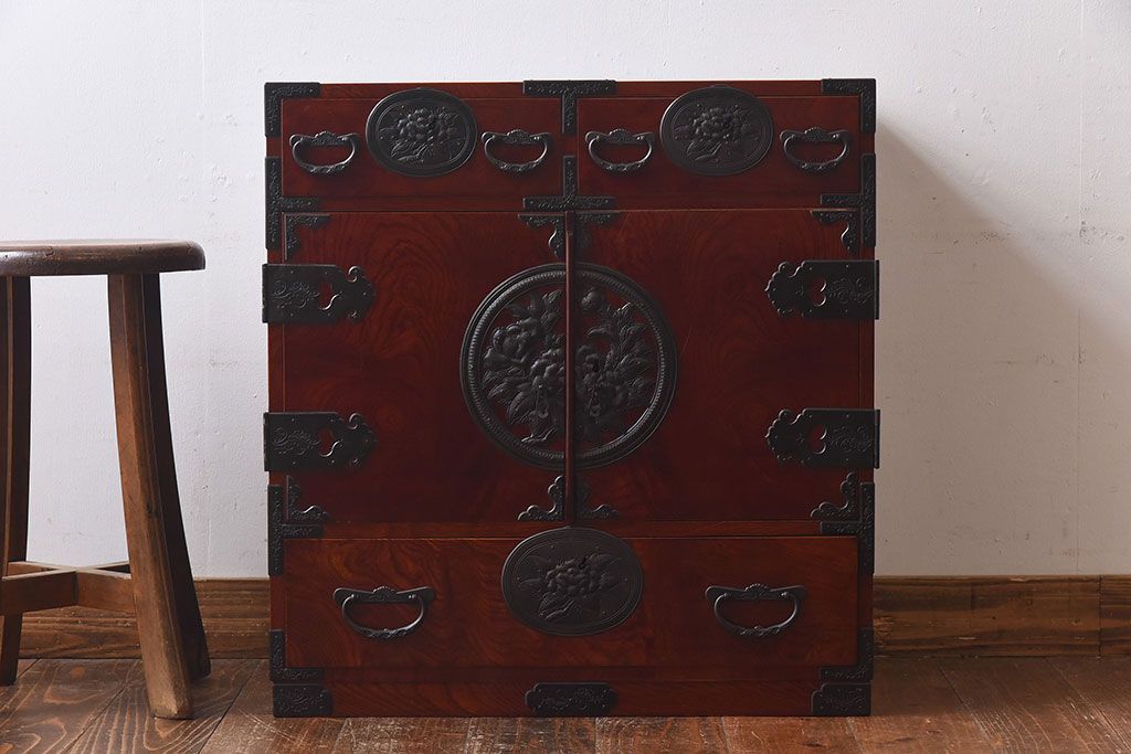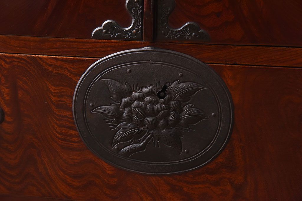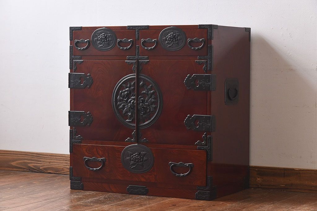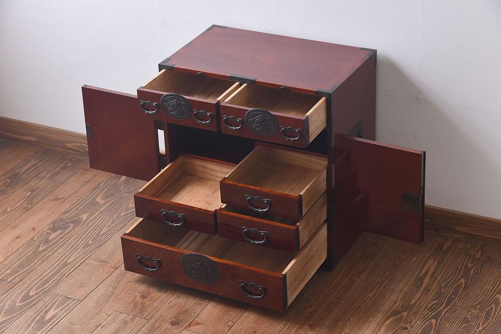 小物収納・トランク> 小引き出し > 中古 門間箪笥店(門間屋) 仙台箪笥 手打ち牡丹金具 観音開き小箪笥(小引き出し)(R-030396)