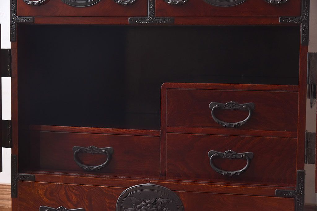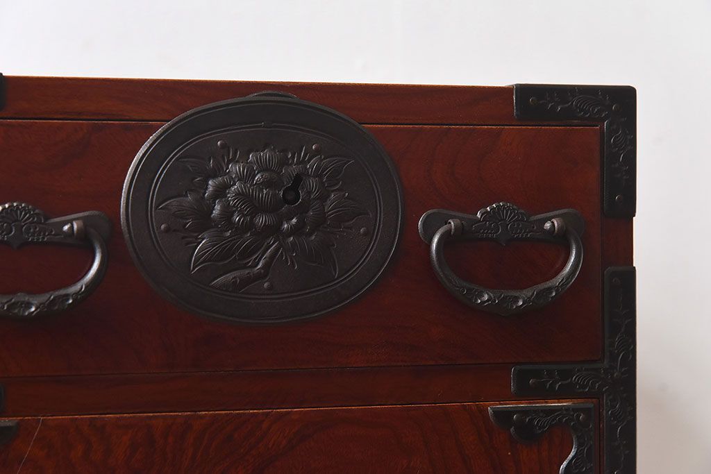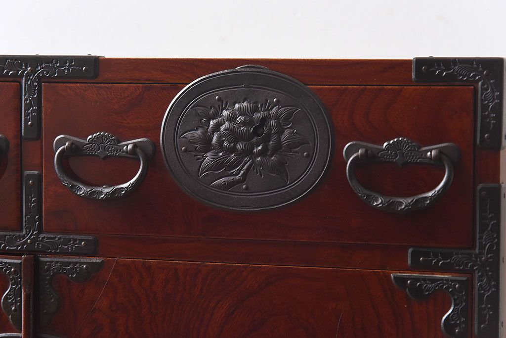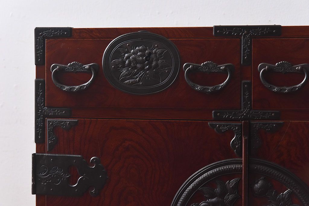 和箪笥 > 中古 門間箪笥店(門間屋) 仙台箪笥 手打ち牡丹金具 観音開き小箪笥(小引き出し)(R-030396)