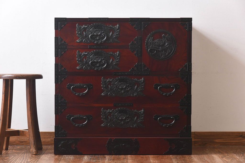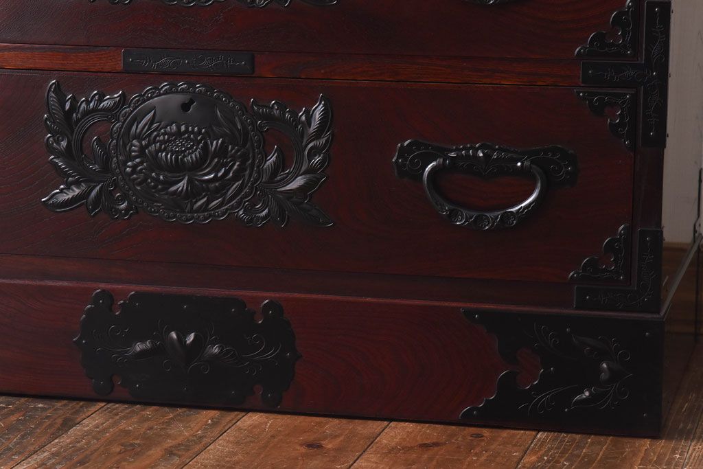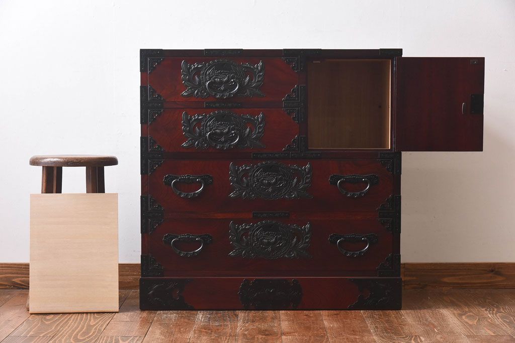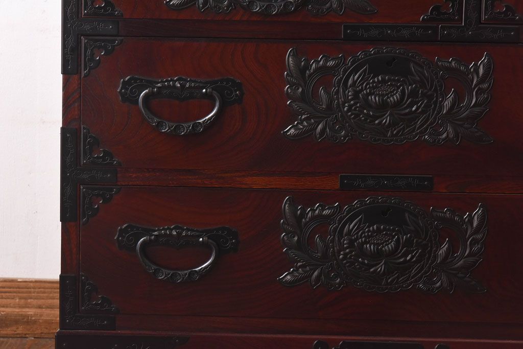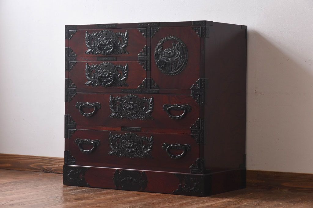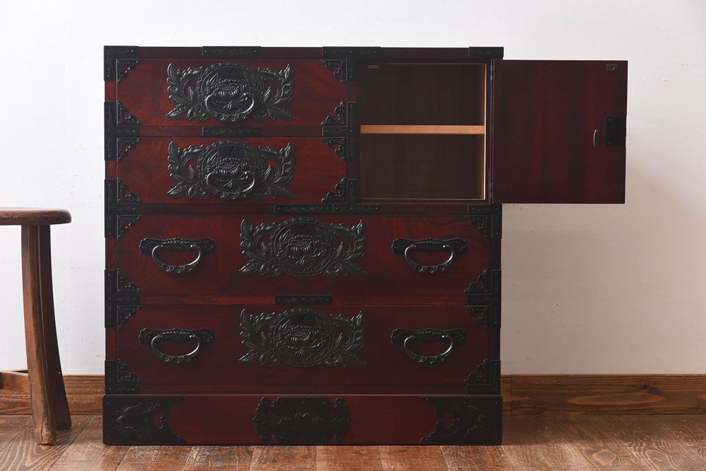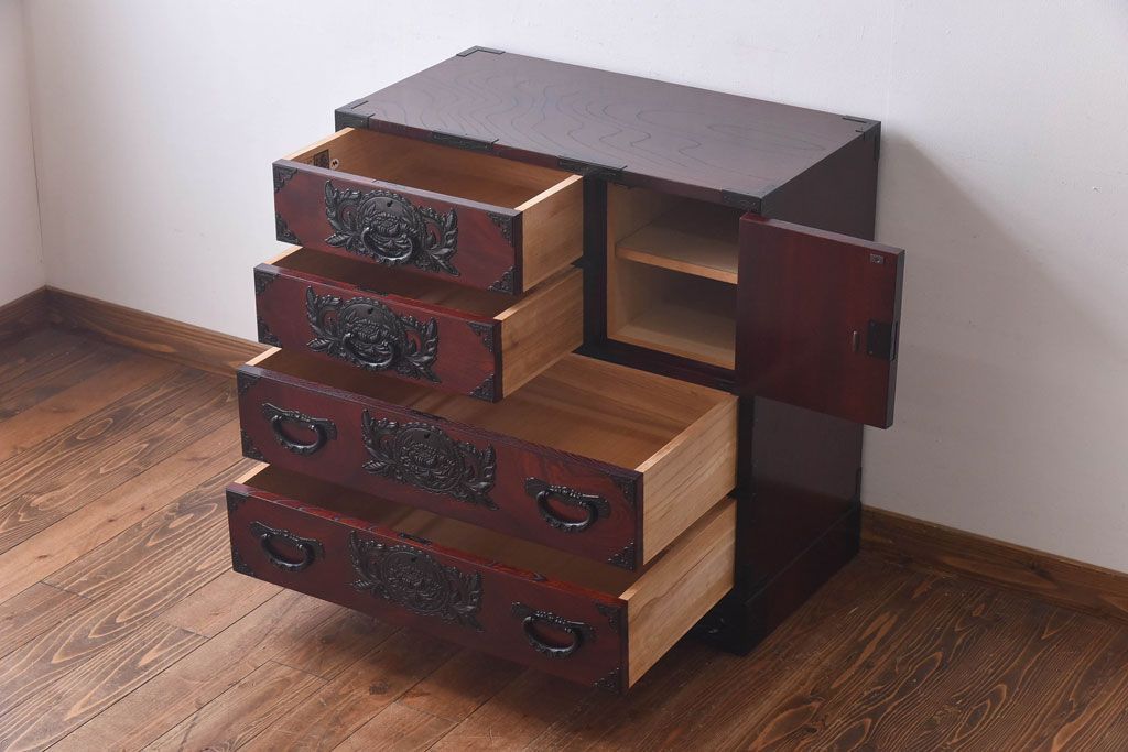 ラフジュ工房> 和箪笥 > 中古 仙台民芸箪笥(仙台箪笥) 欅産業 KC-27 拭き漆塗り 片開帳箪笥(小引き出し)(定価約32万円)(R-030443)