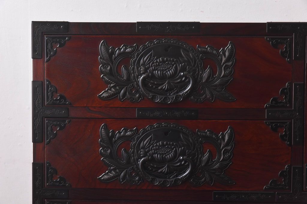 ラフジュ工房> 民芸家具 > 中古 仙台民芸箪笥(仙台箪笥) 欅産業 KC-27 拭き漆塗り 片開帳箪笥(小引き出し)(定価約32万円)(R-030443)