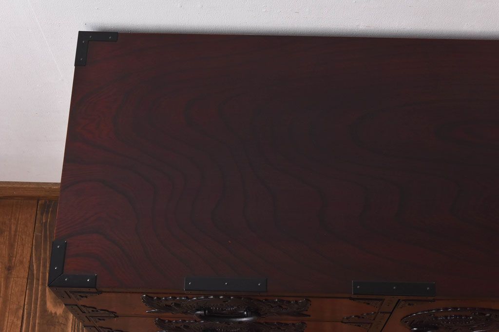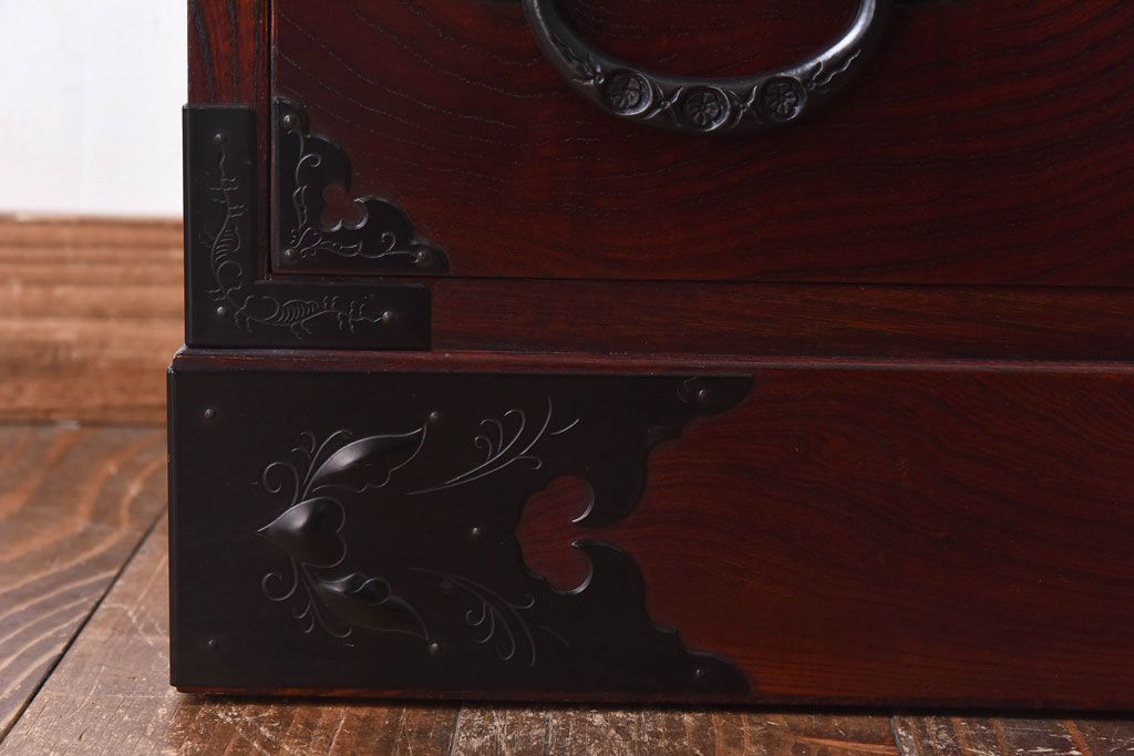 ラフジュ工房> 小物収納・トランク> 小引き出し > 中古 仙台民芸箪笥(仙台箪笥) 欅産業 KC-27 拭き漆塗り 片開帳箪笥(小引き出し)(定価約32万円)(R-030443)