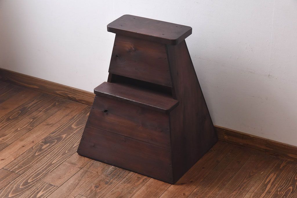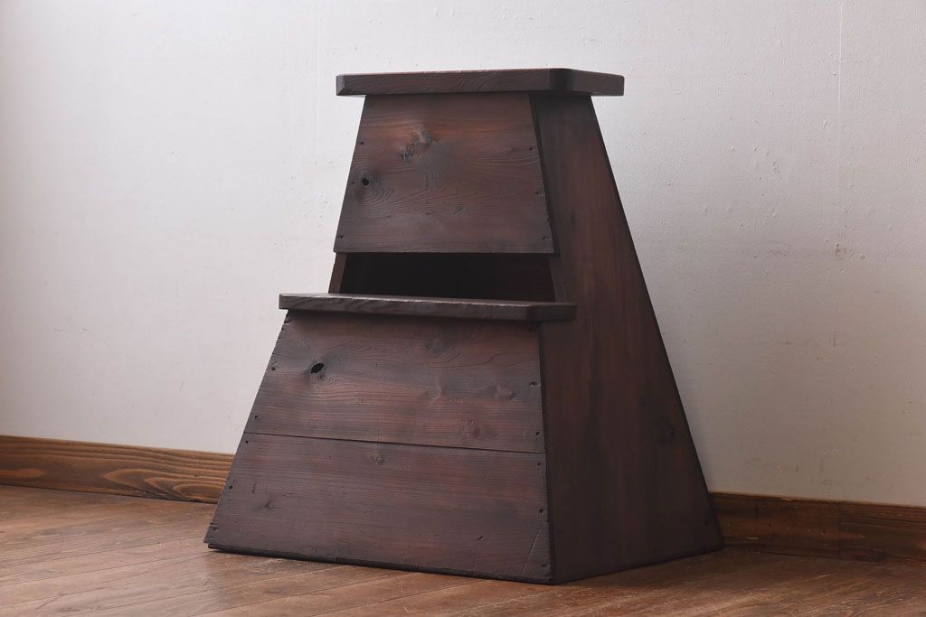 アンティーク雑貨 古民具 大型 古い木が味わい深い踏み台(花台)