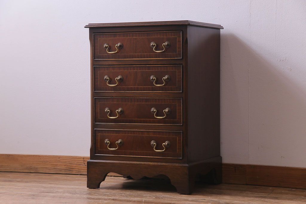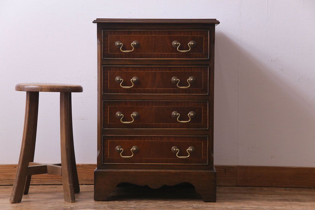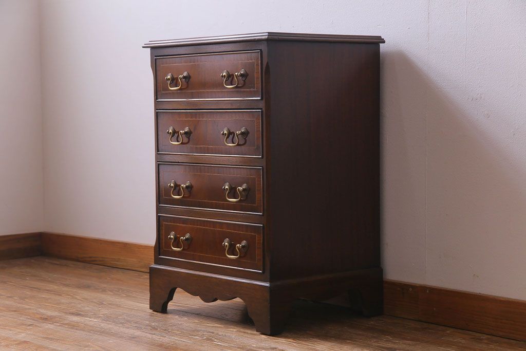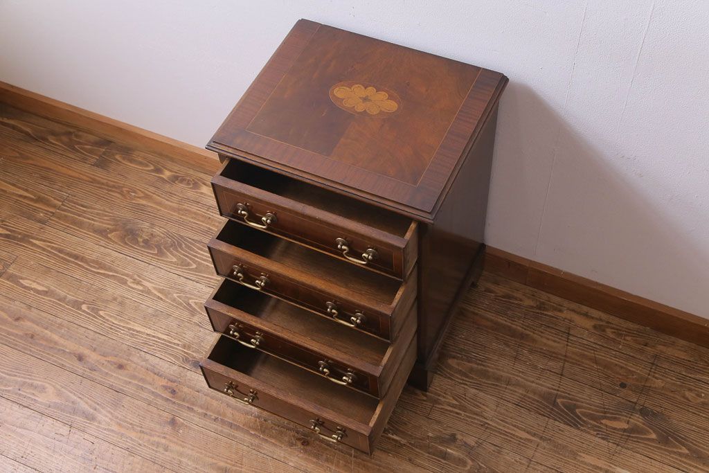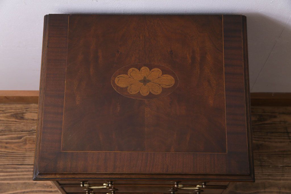 アンティーク家具 イギリスアンティーク ウォールナット 象嵌入りの上品なサイドチェスト(引き出し)(R-030465)