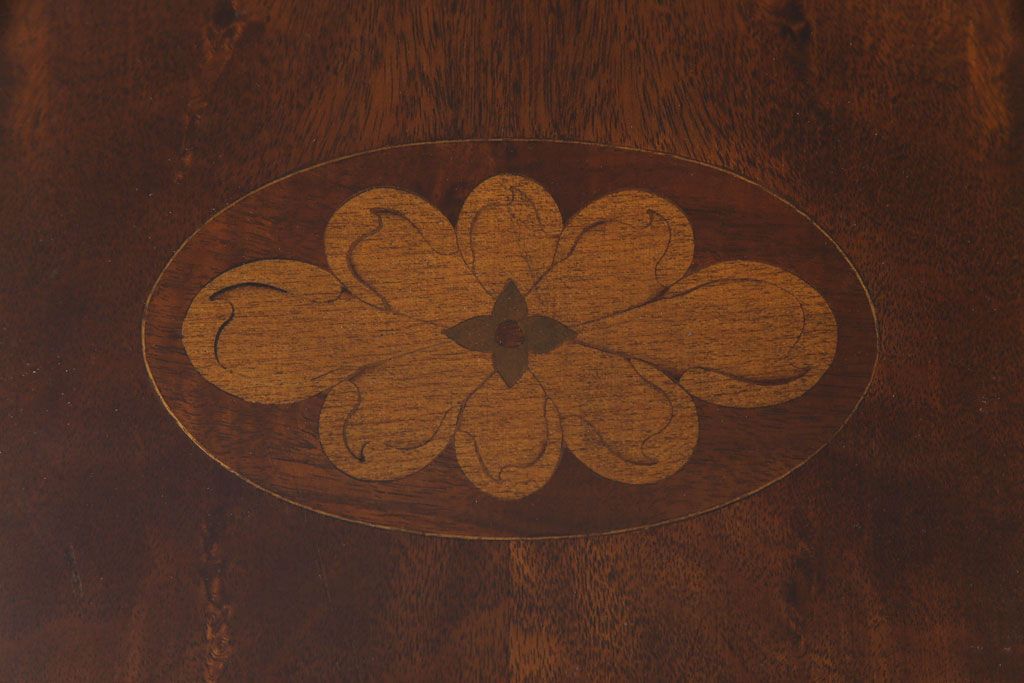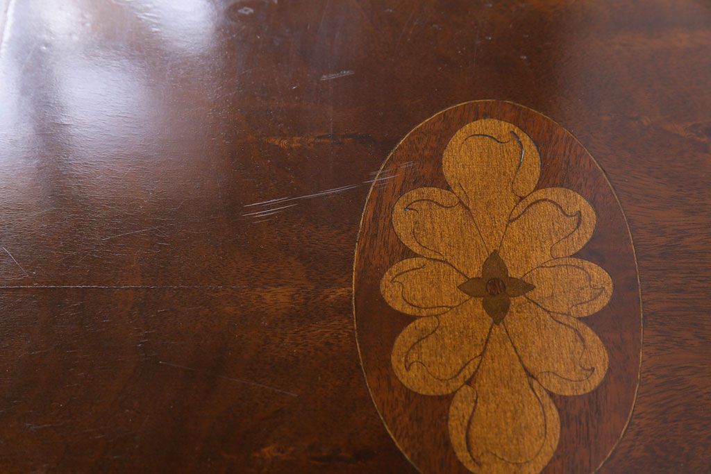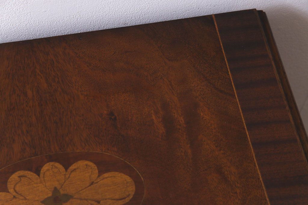 天板に施された花モチーフの象嵌や