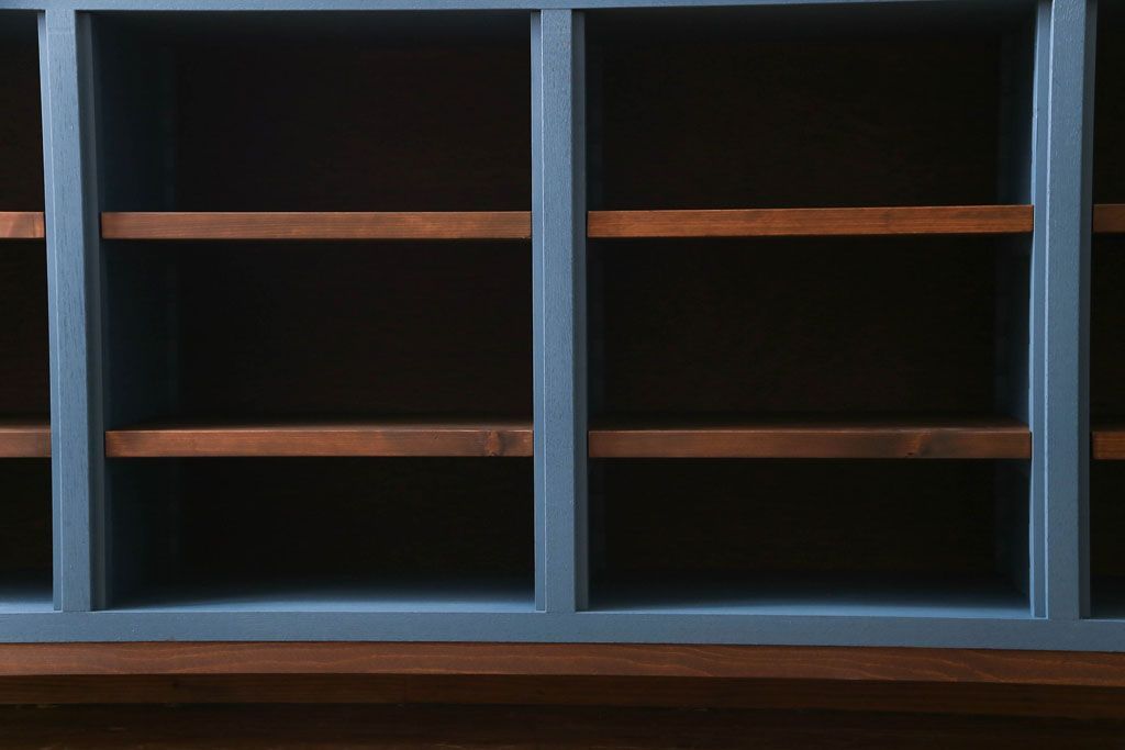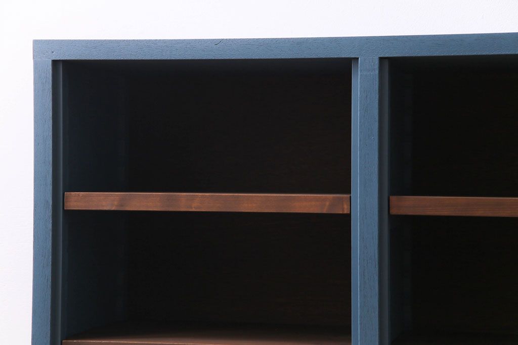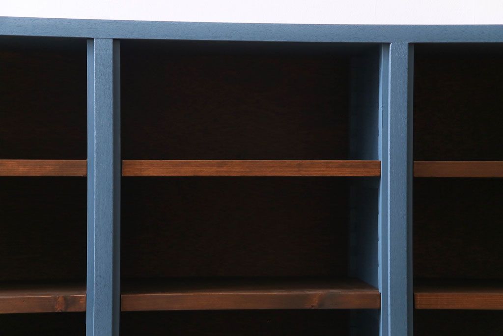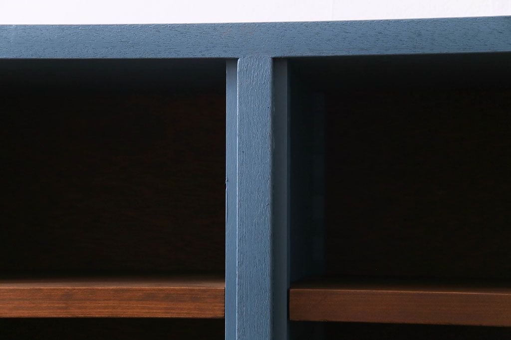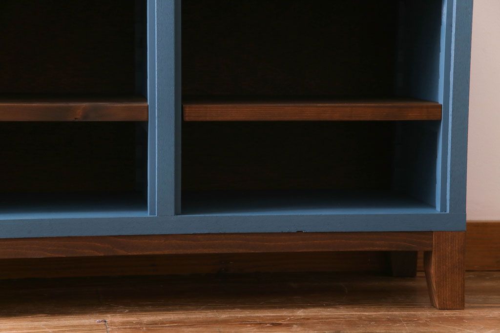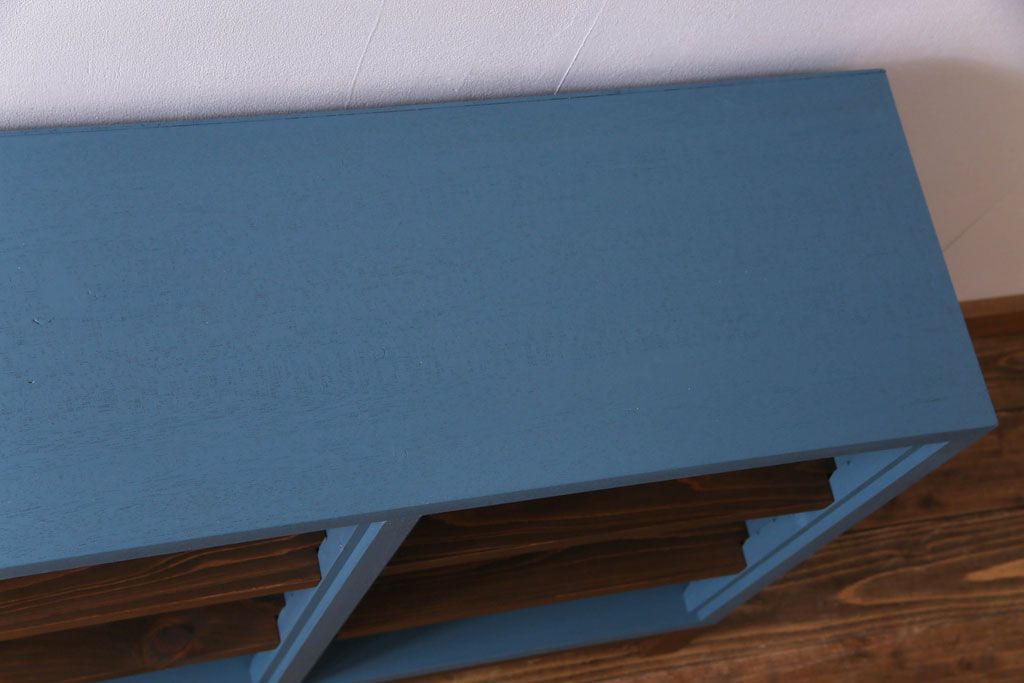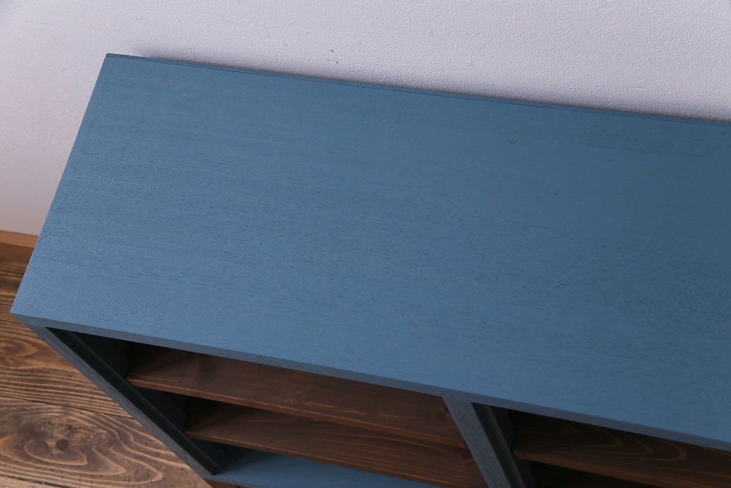 ペイント家具 リメイク ブルーカラーと木の色味がマッチしたお洒落なオープンラック(収納棚)(R-30480)