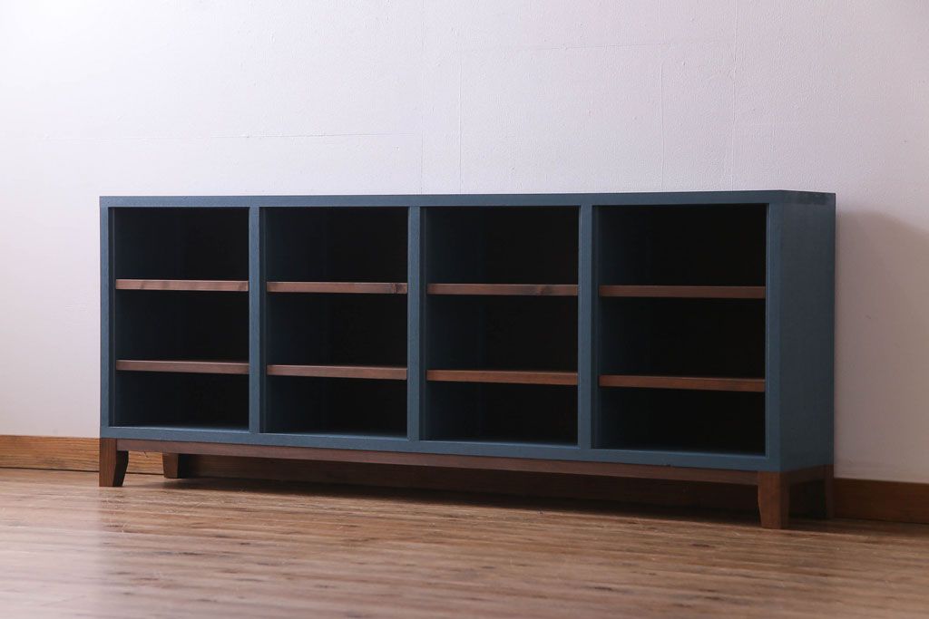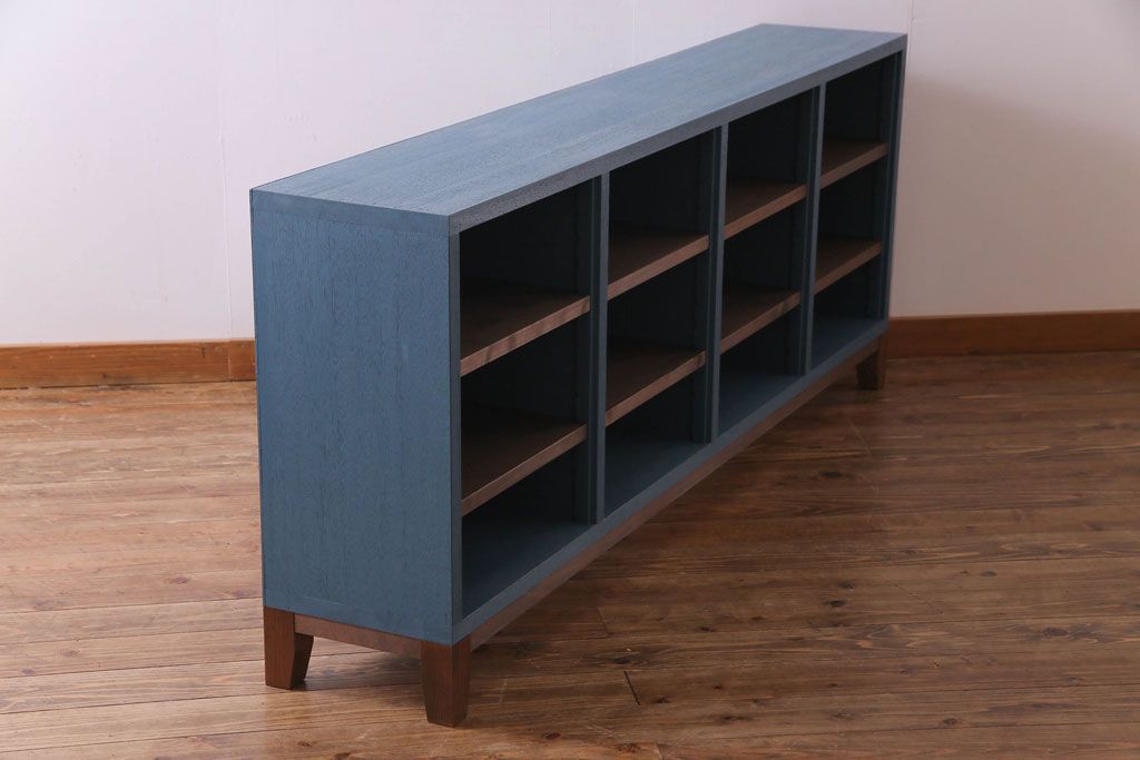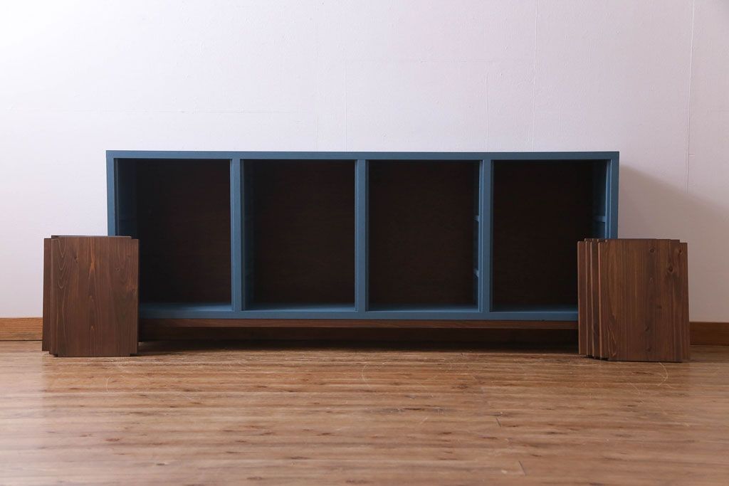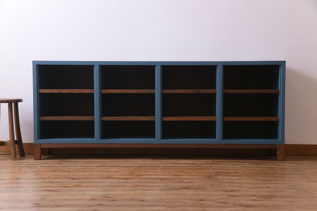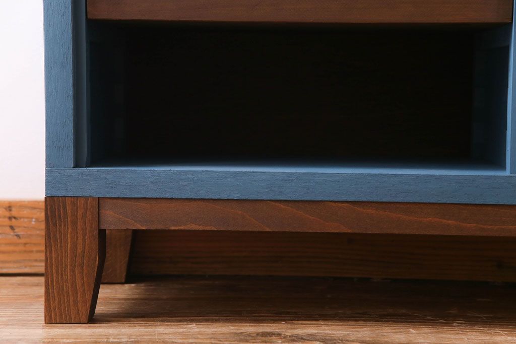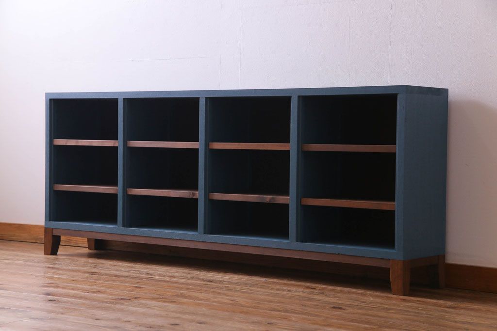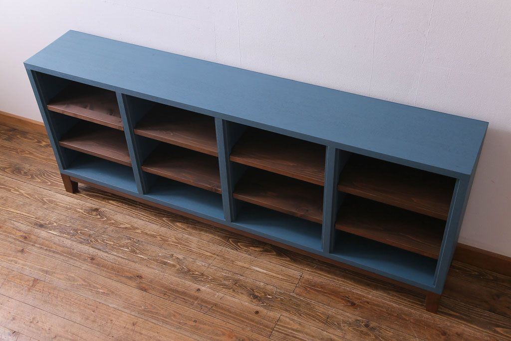 ペイント家具 リメイク ブルーカラーと木の色味がマッチしたお洒落なオープンラック(収納棚)(R-30480)