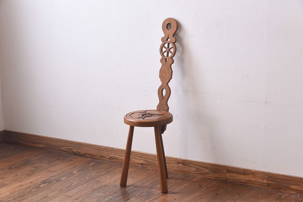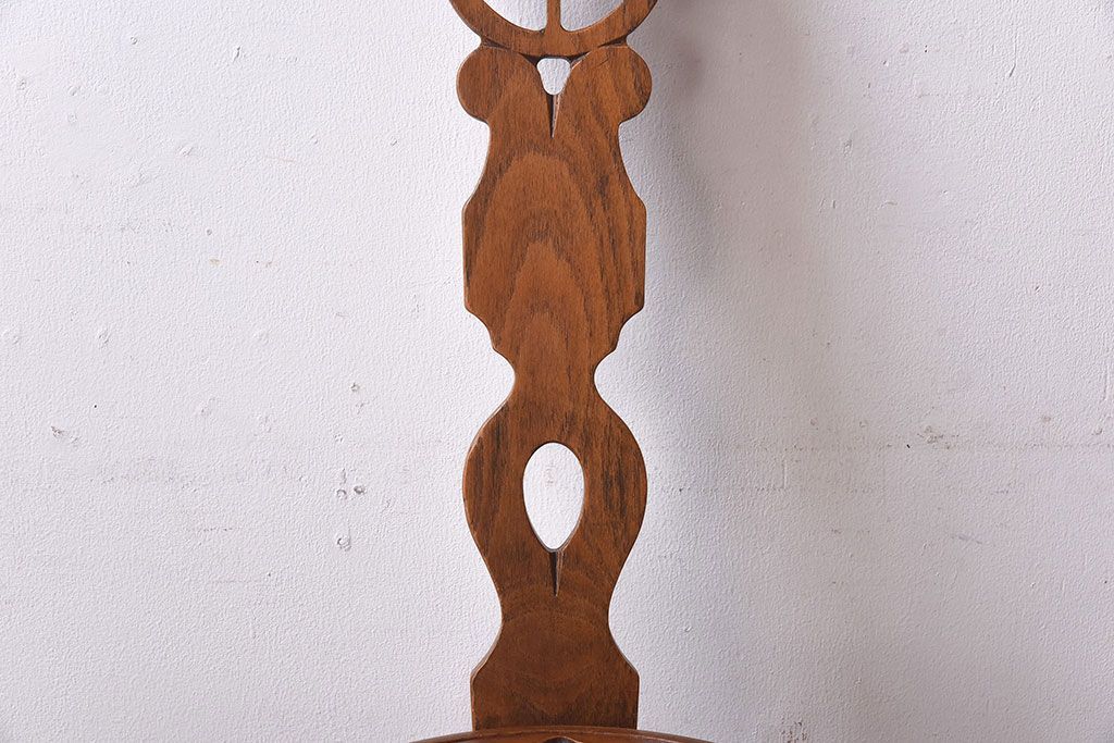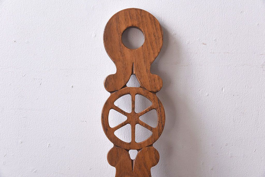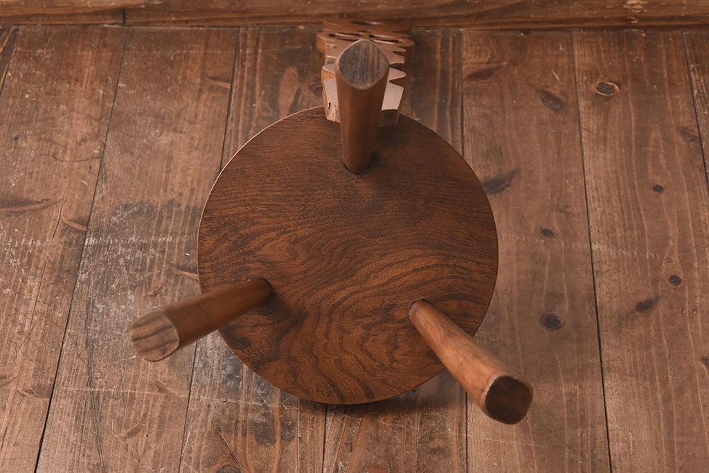 雑貨 > アンティーク雑貨 イギリスヴィンテージ 彫刻とホイールバックが目を引く飾り台(花台、ビンテージ)