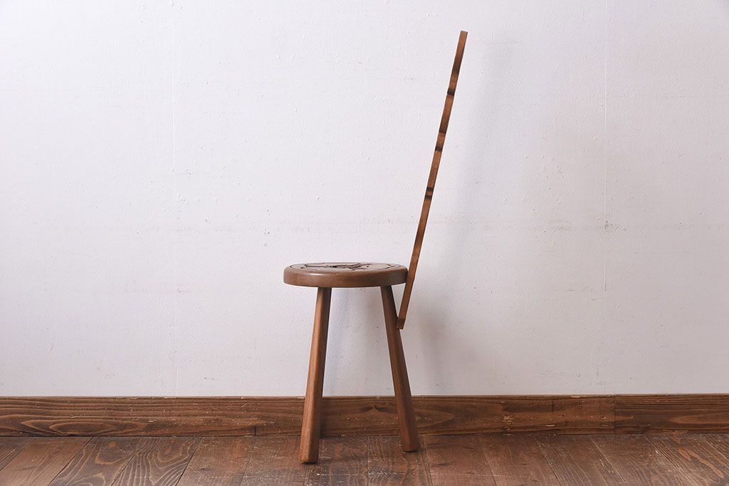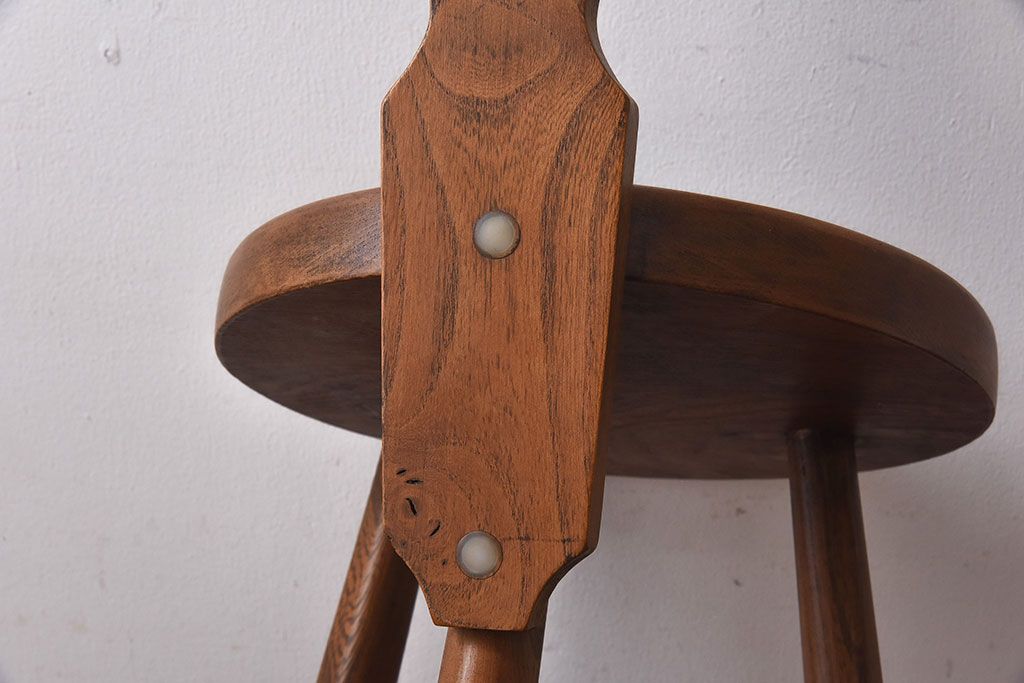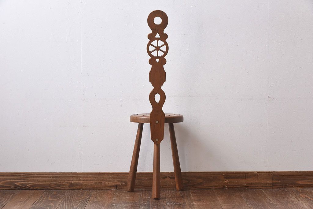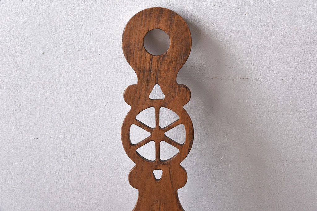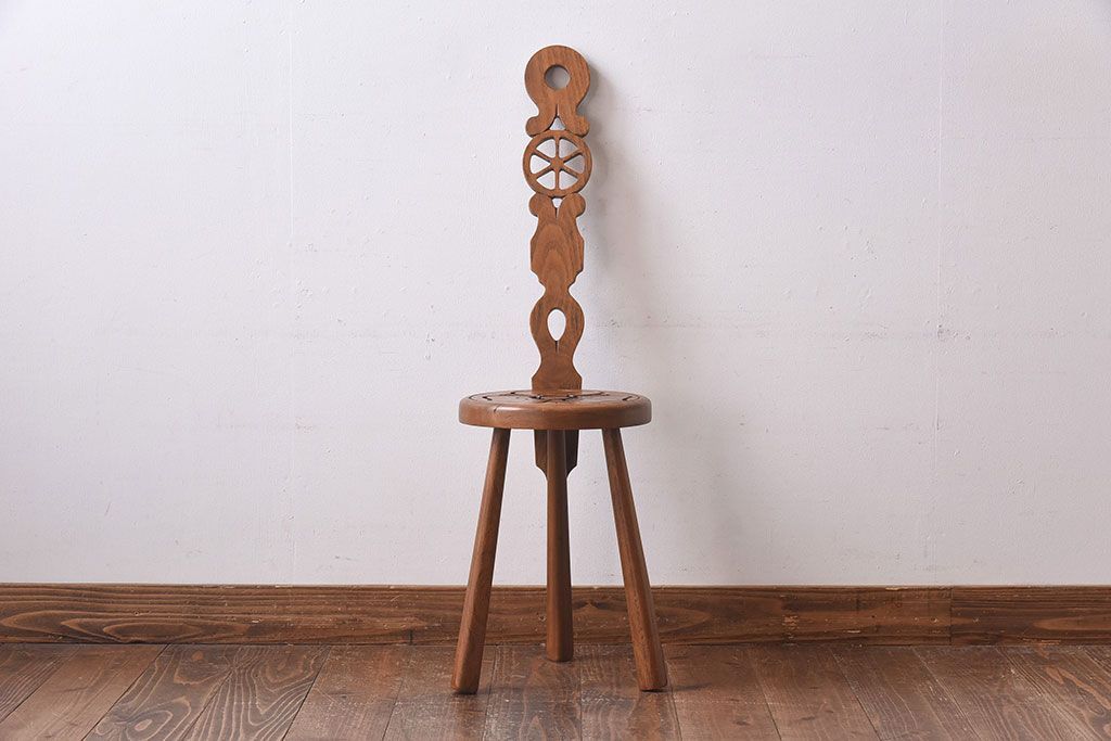 雑貨 > アンティーク雑貨 イギリスヴィンテージ 彫刻とホイールバックが目を引く飾り台(花台、ビンテージ)