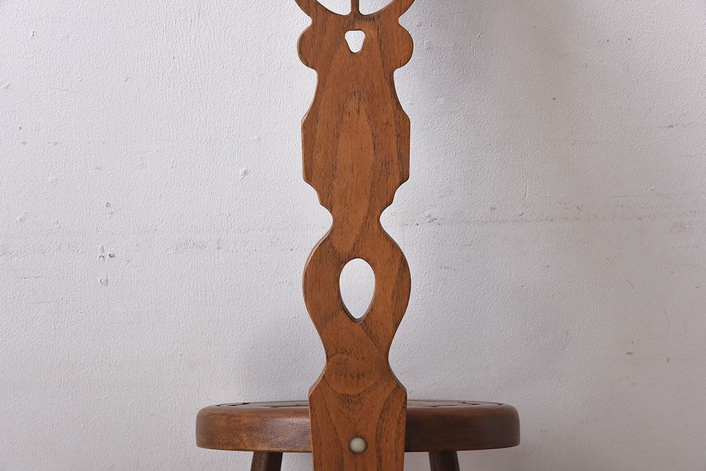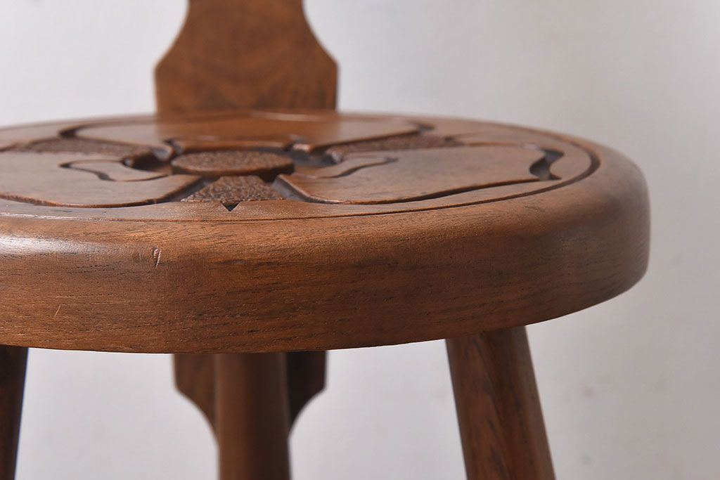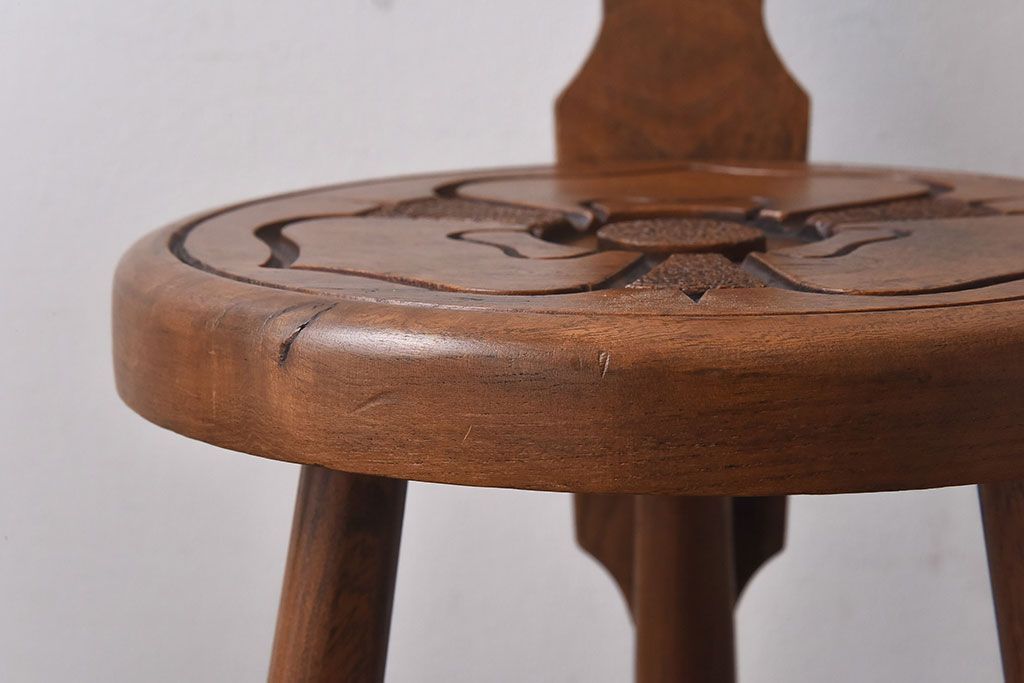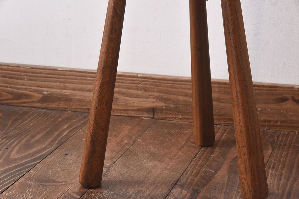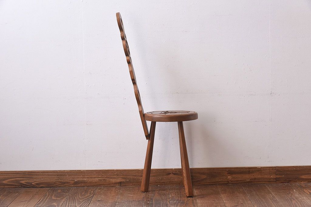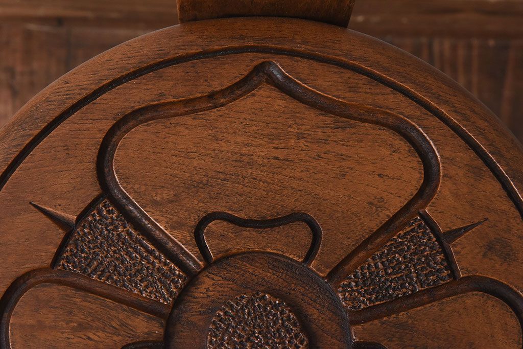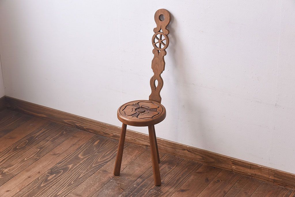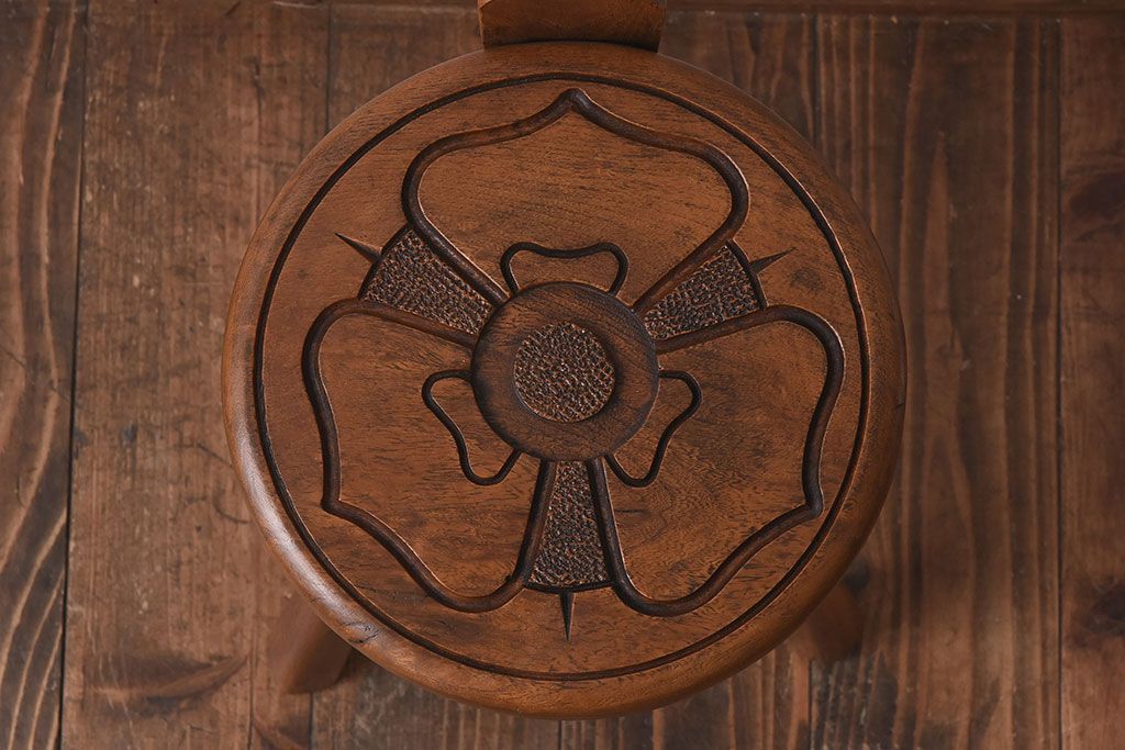 アンティーク雑貨 イギリスヴィンテージ 彫刻とホイールバックが目を引く飾り台(花台、ビンテージ)