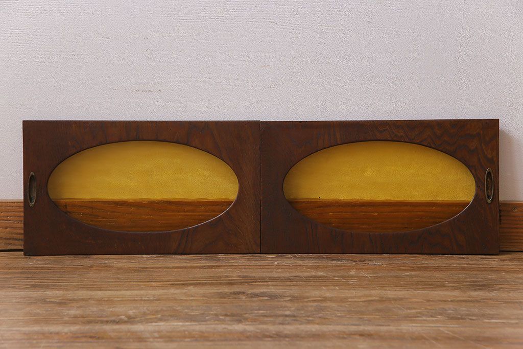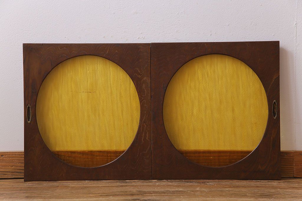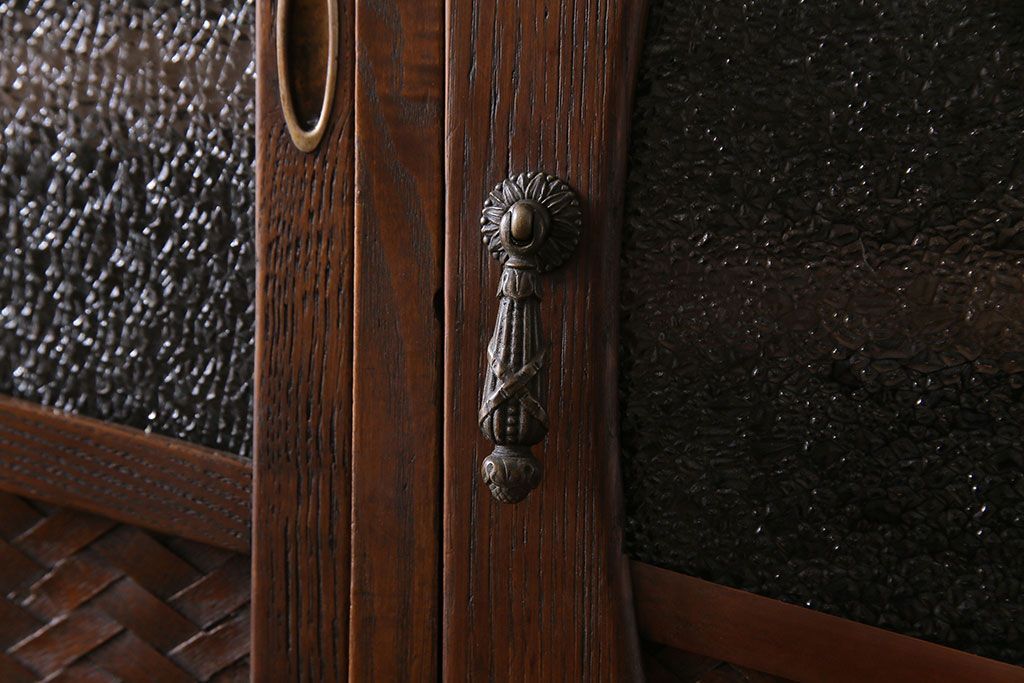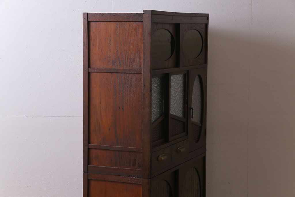 大正ロマン 網代(あじろ)編みと丸窓の色ガラスがお洒落な戸棚