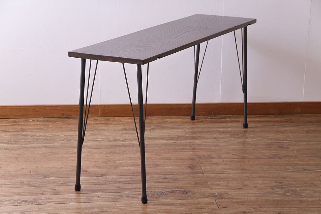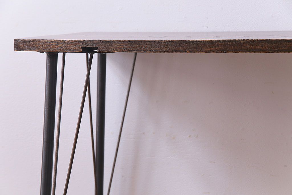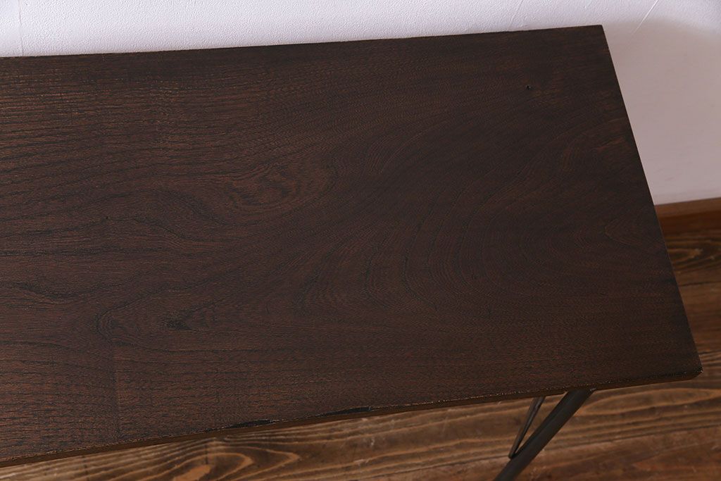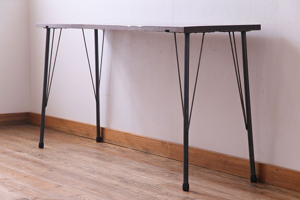 ラフジュ工房> テーブル> カフェテーブル・コーヒーテーブル > 明治大正期 ケヤキ一枚板 古材をリメイクした鉄脚テーブル(コンソールテーブル、作業台)