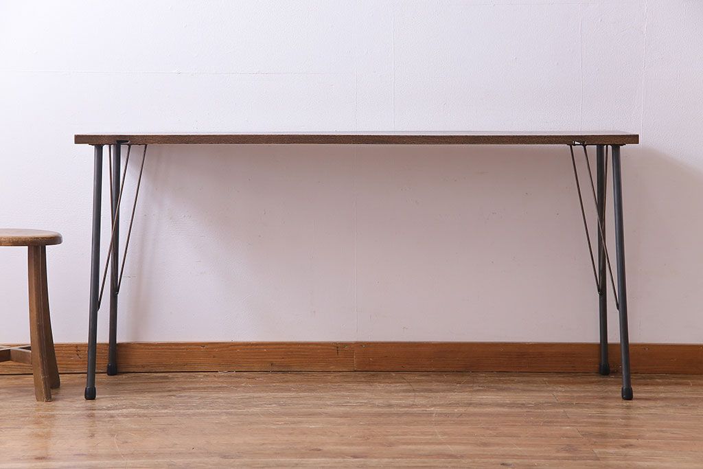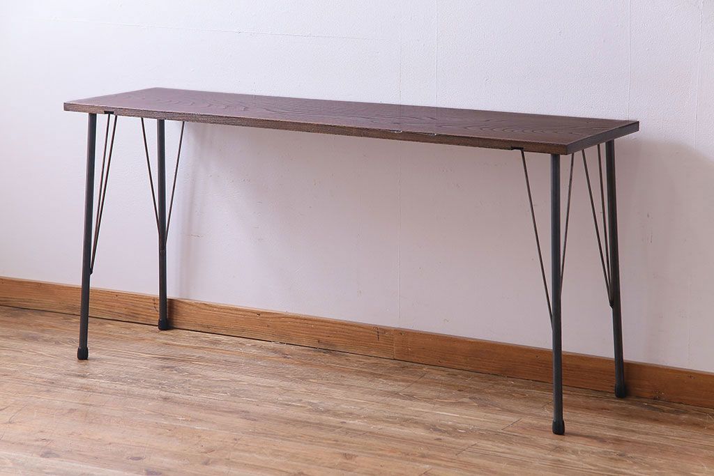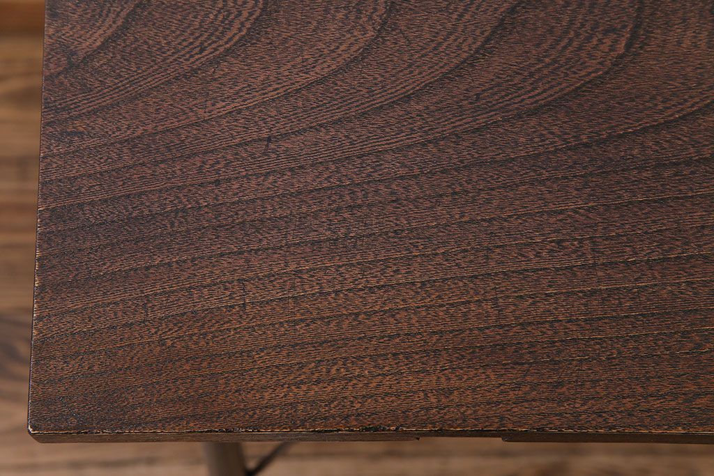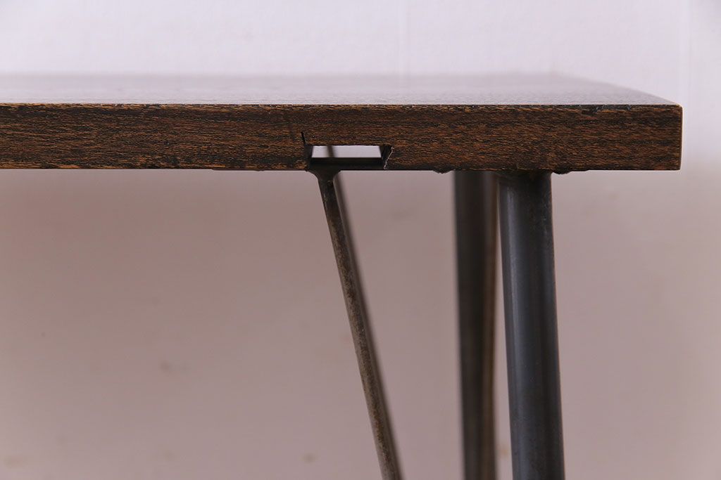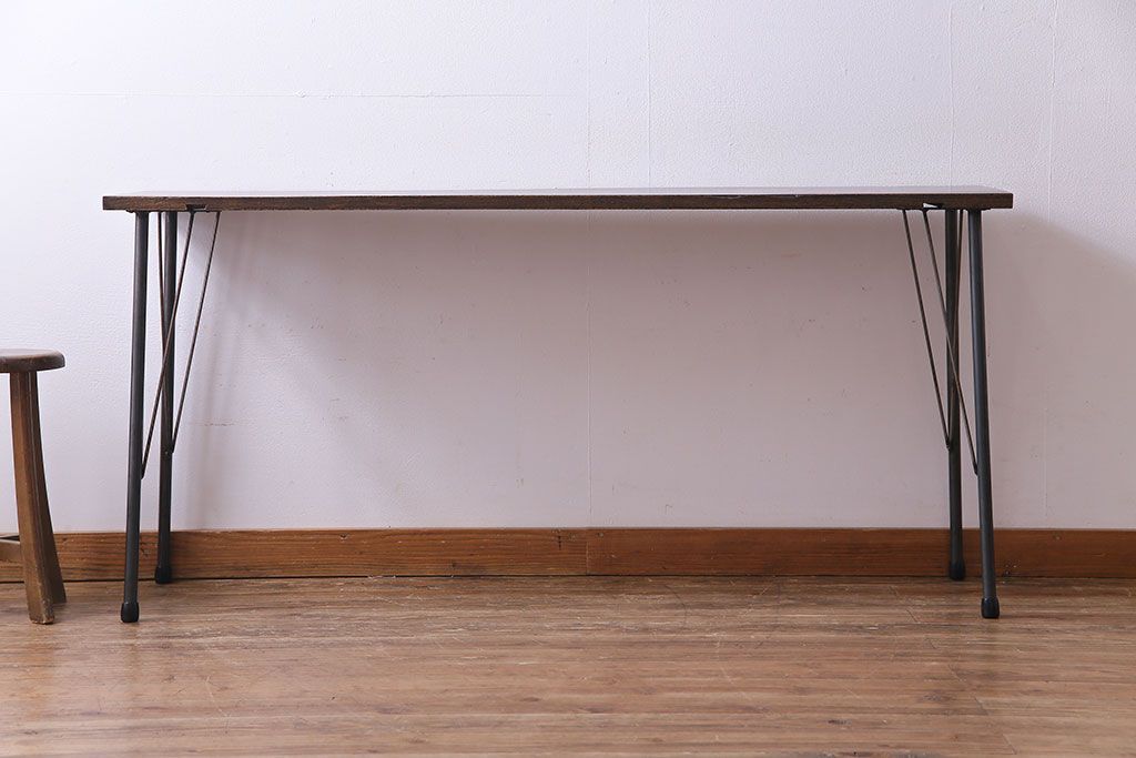 ラフジュ工房> テーブル> カフェテーブル・コーヒーテーブル > 明治大正期 ケヤキ一枚板 古材をリメイクした鉄脚テーブル(コンソールテーブル、作業台)